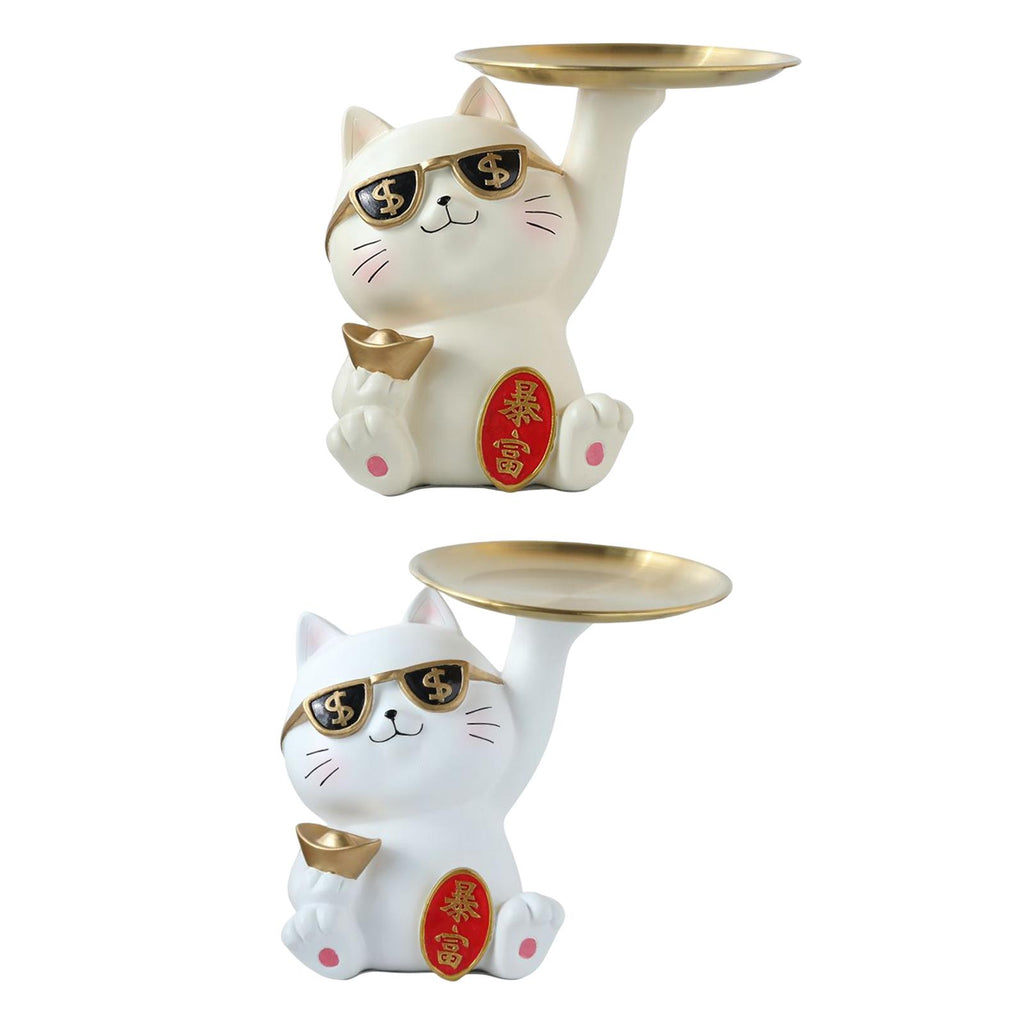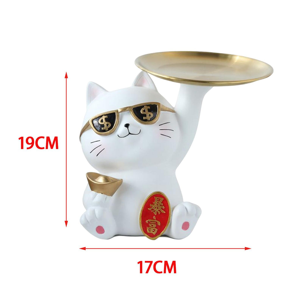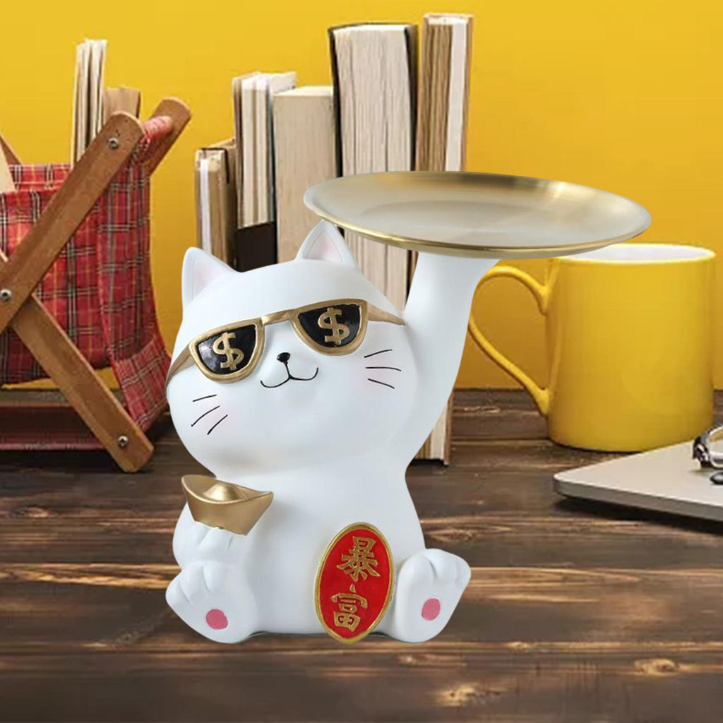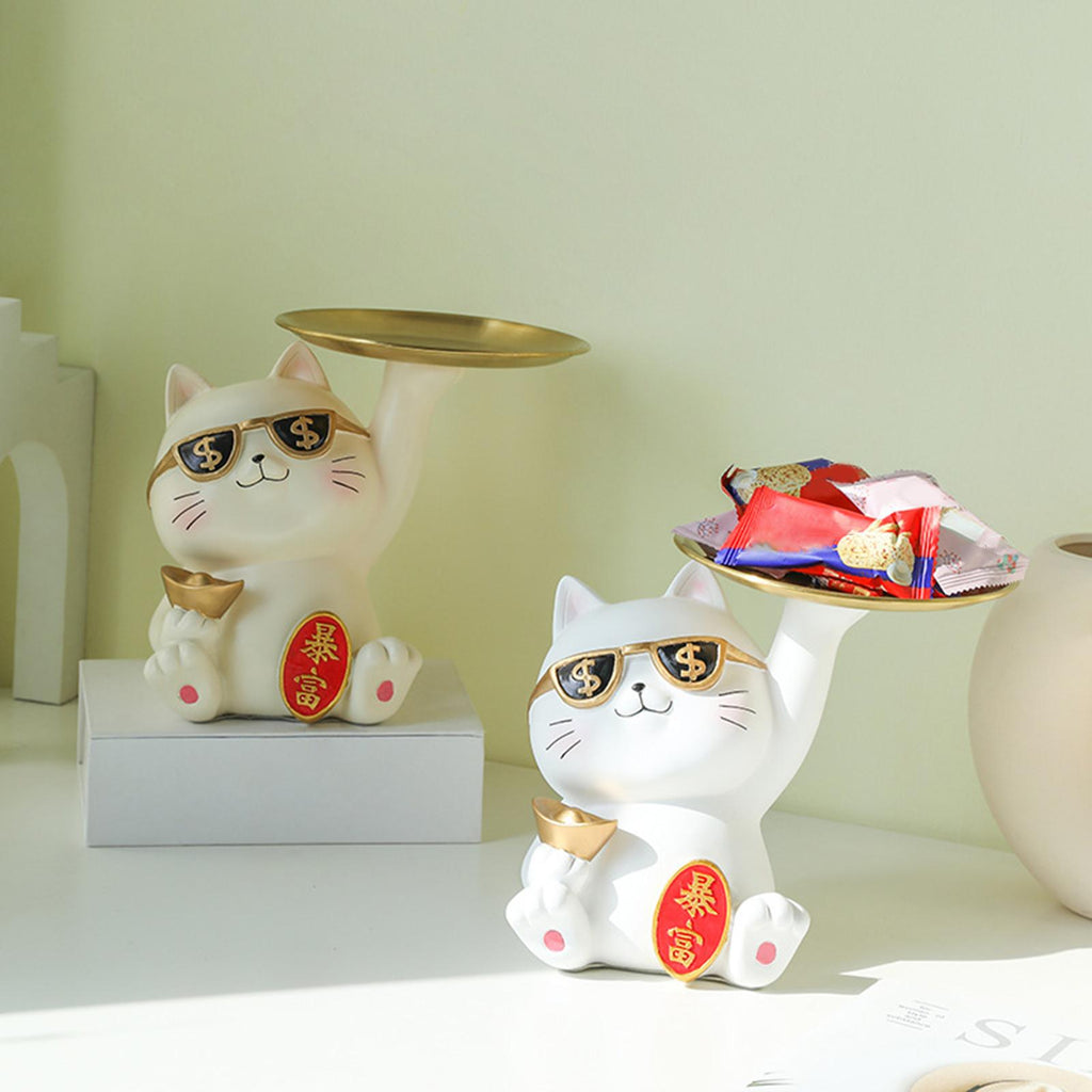Maxbell Maxbell Lucky Cat Statue Storage Tray Candy Dish for Living Room Home Decoration White