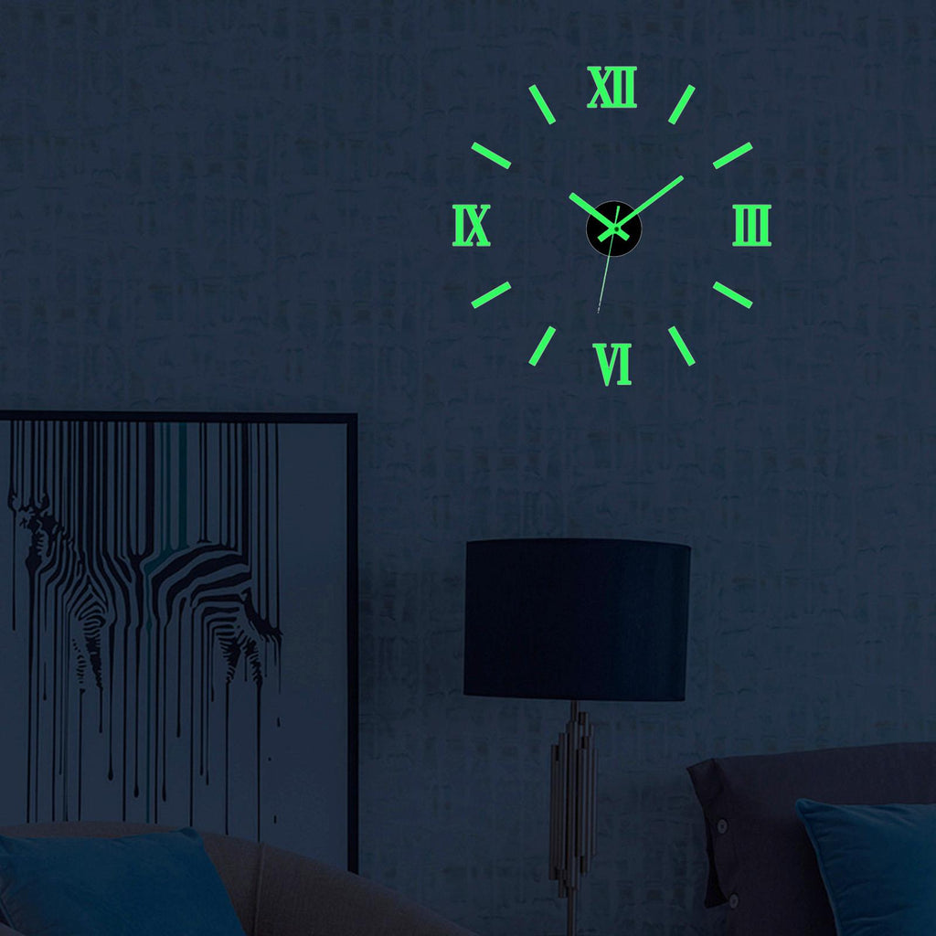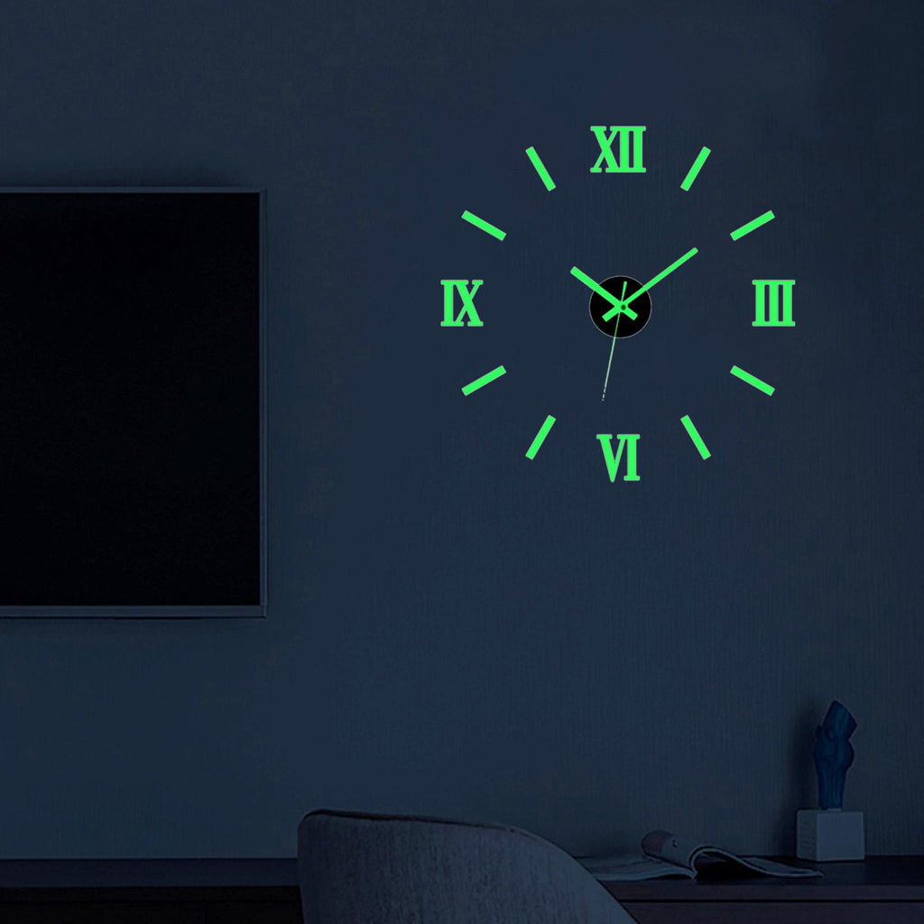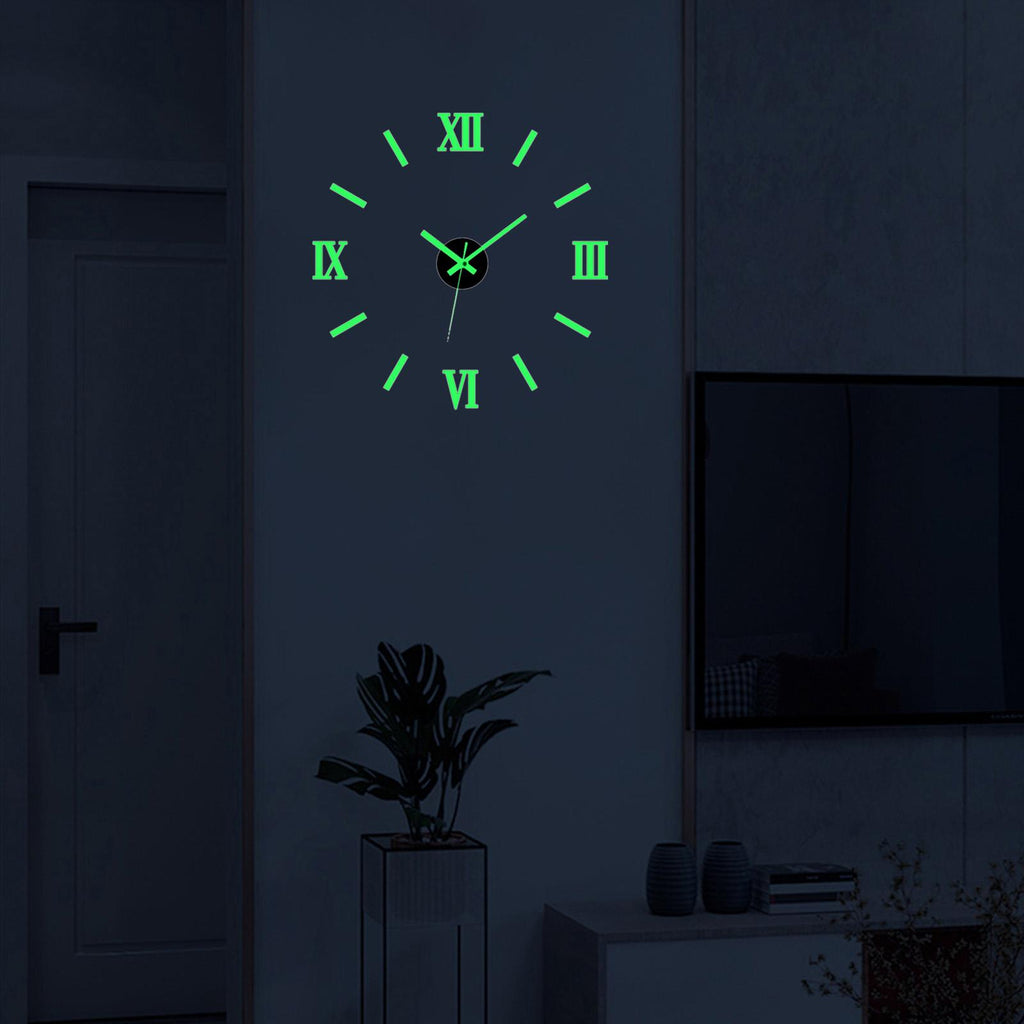 Luminous Wall Clock Stickers DIY Round Frameless for Living Room Wall Decor