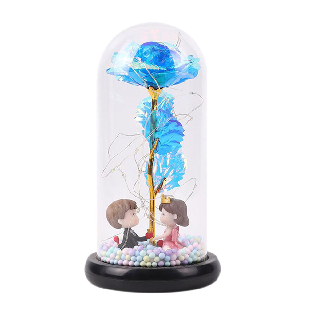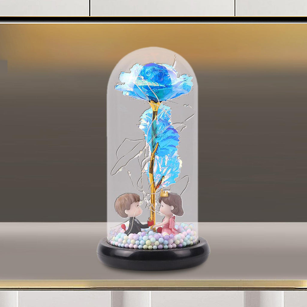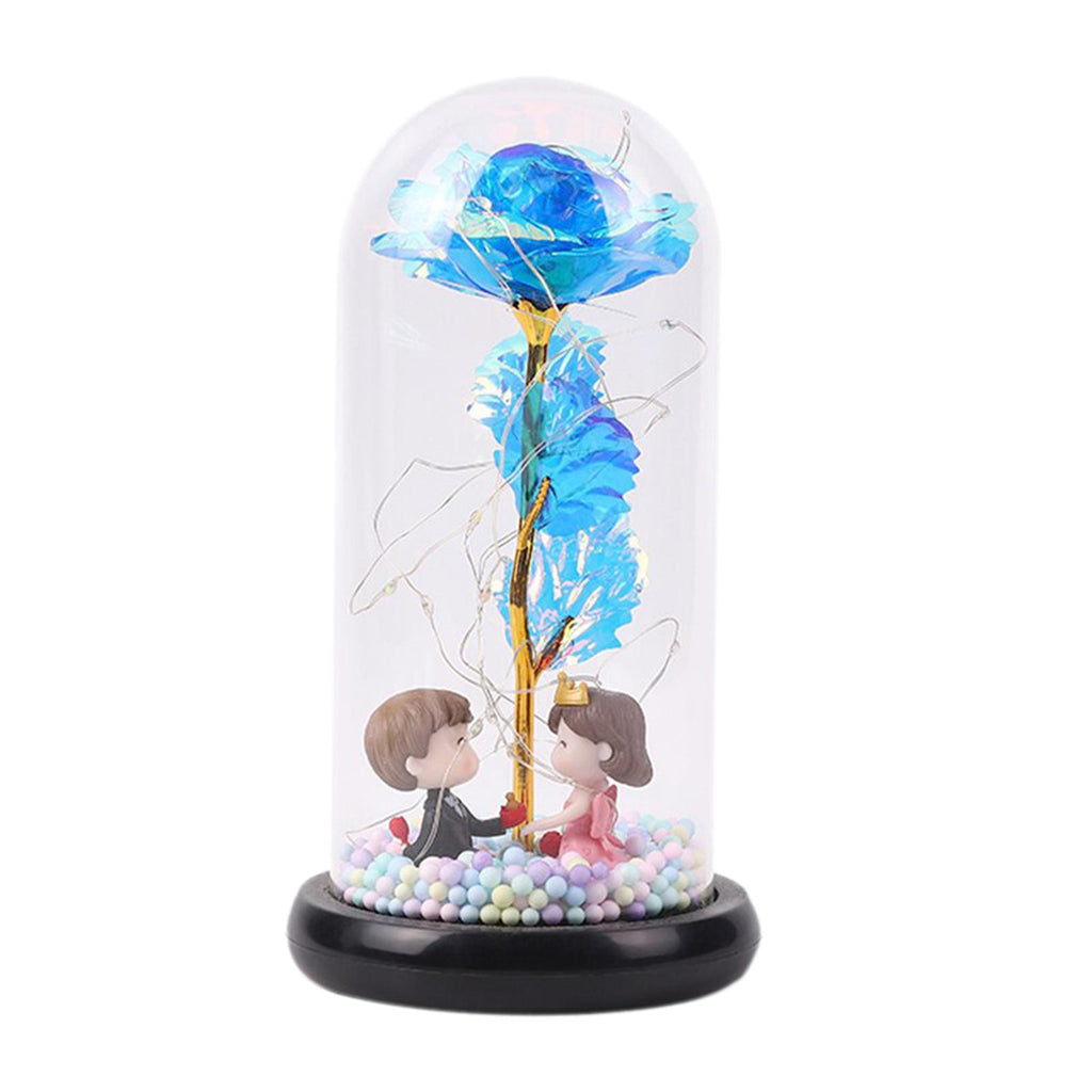 Maxbell Luxury Artificial Flower with Glass Cover Handmade for Mom Women Wife Decor Blue