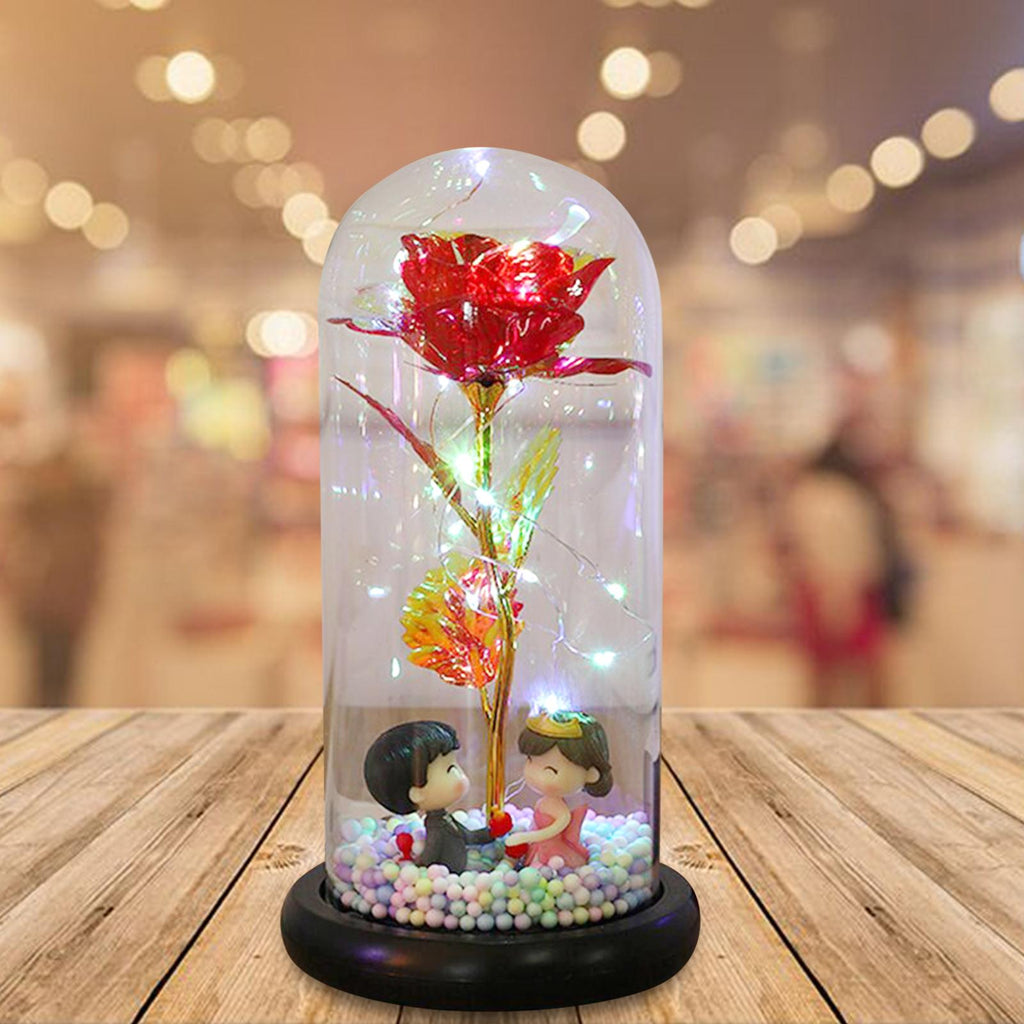 Maxbell Luxury Artificial Flower with Glass Cover Handmade for Mom Women Wife Decor Red