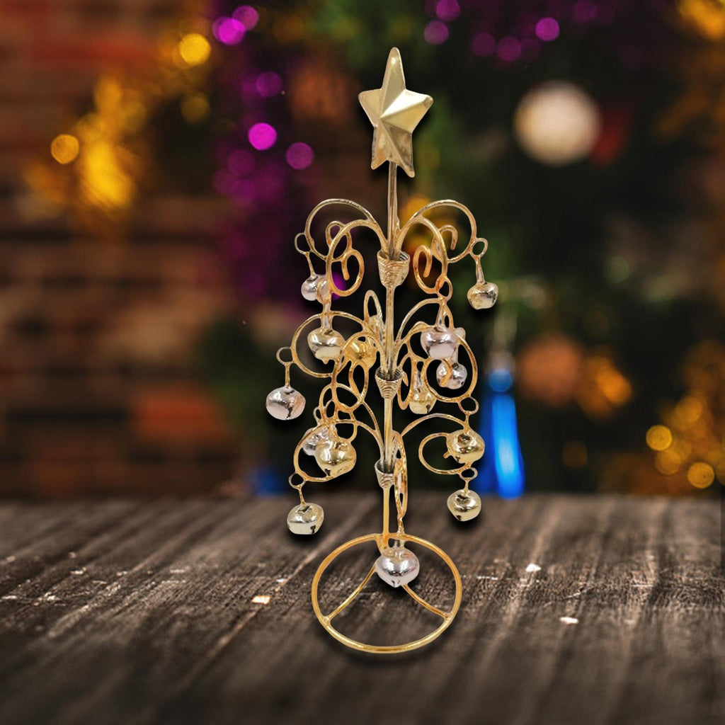 Maxbell Metal Mini Christmas Tree Crafts Decor Artificial Tree for Bedroom Holiday Aureate