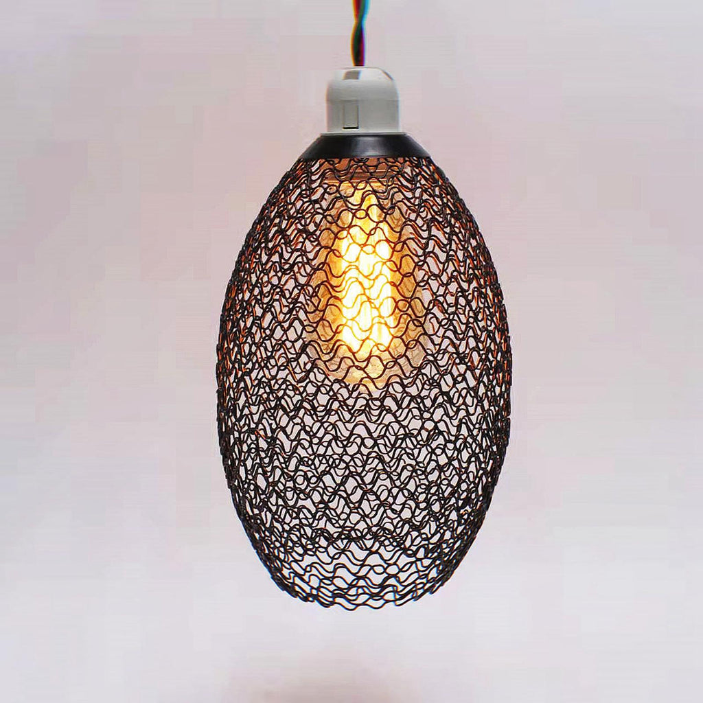 Maxbell Metal Pendant Lamp Shade Wrought Iron Wire Lampshade for Cafe Decoration Oval