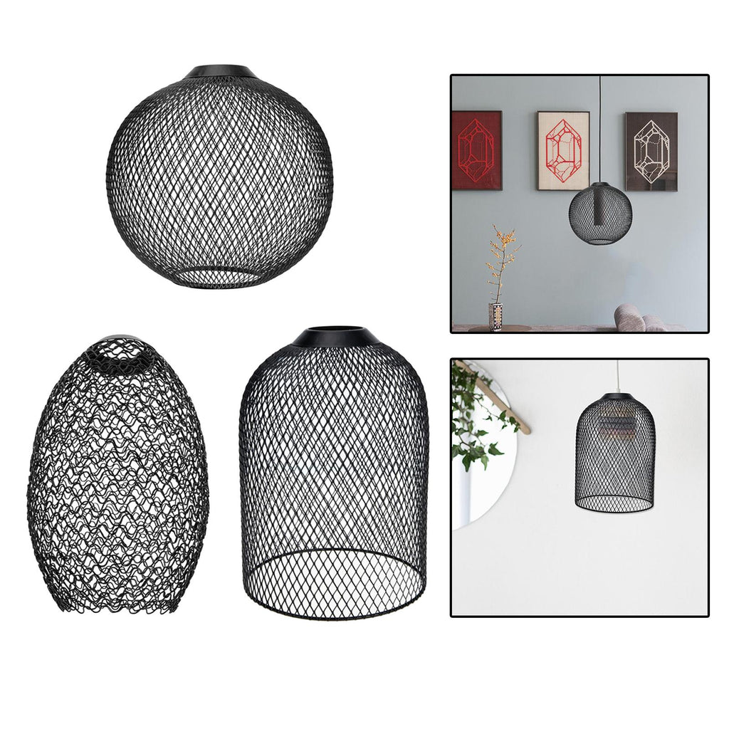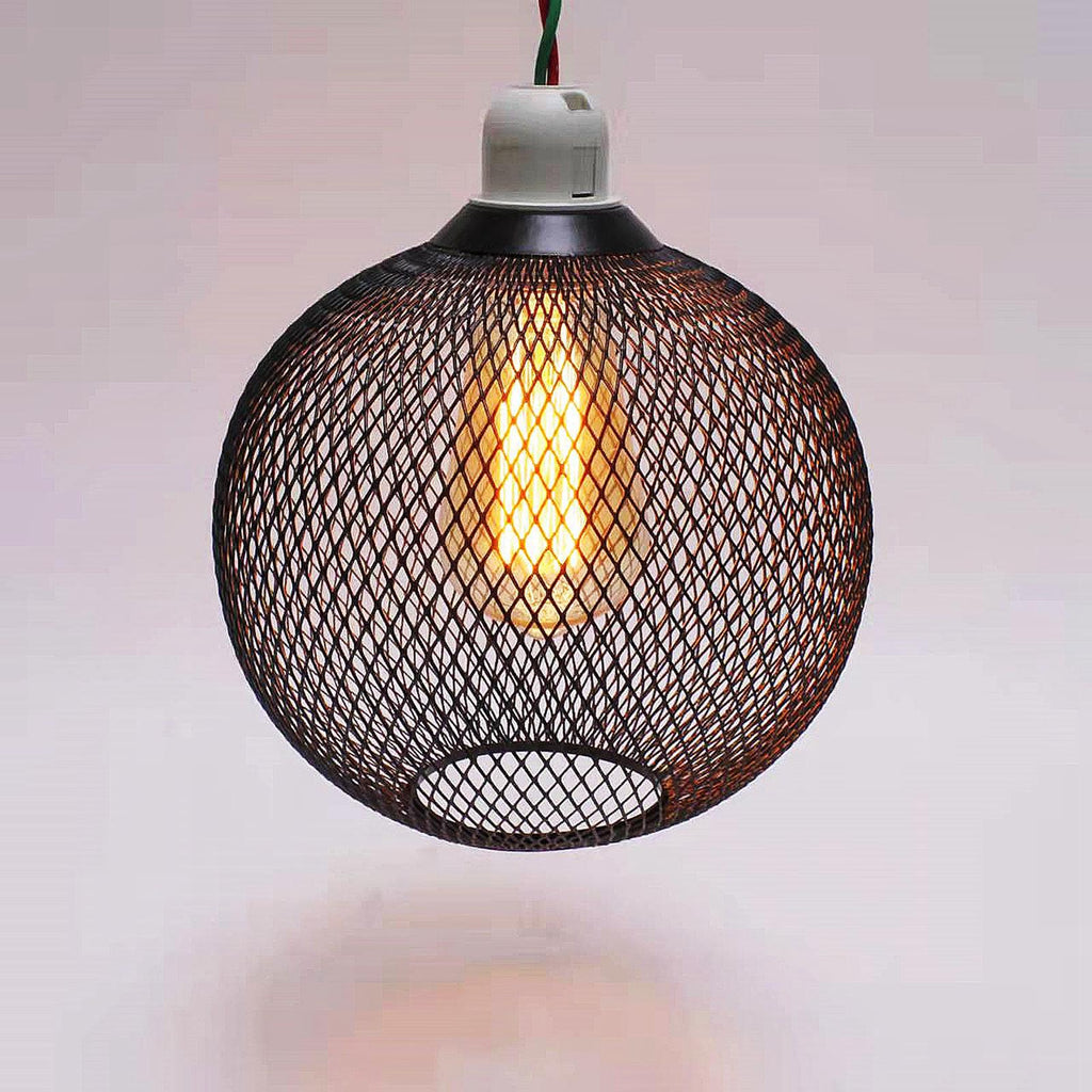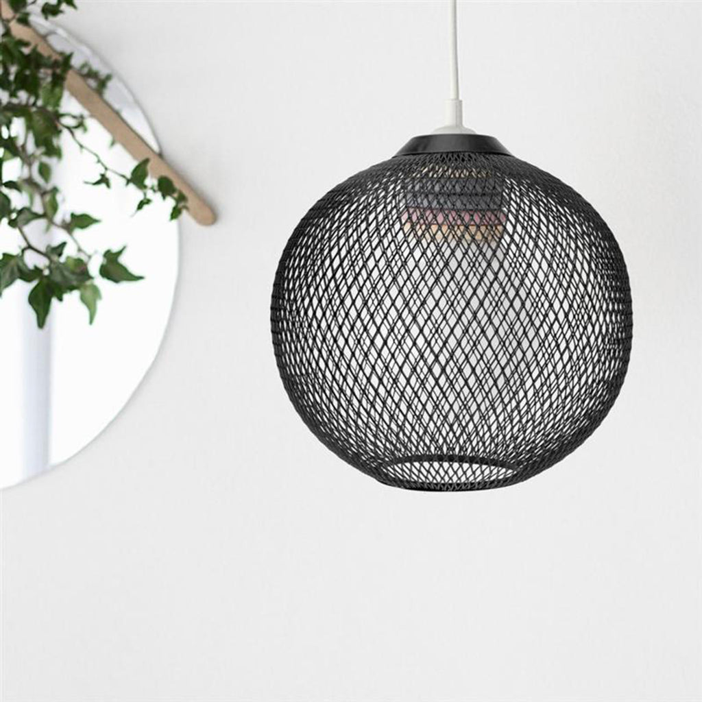 Maxbell Metal Pendant Lamp Shade Wrought Iron Wire Lampshade for Cafe Decoration Round
