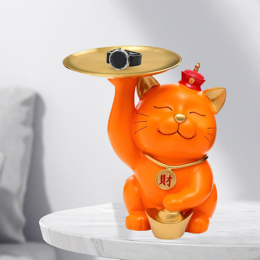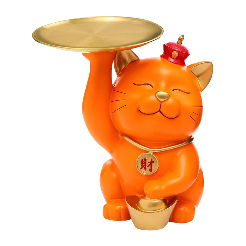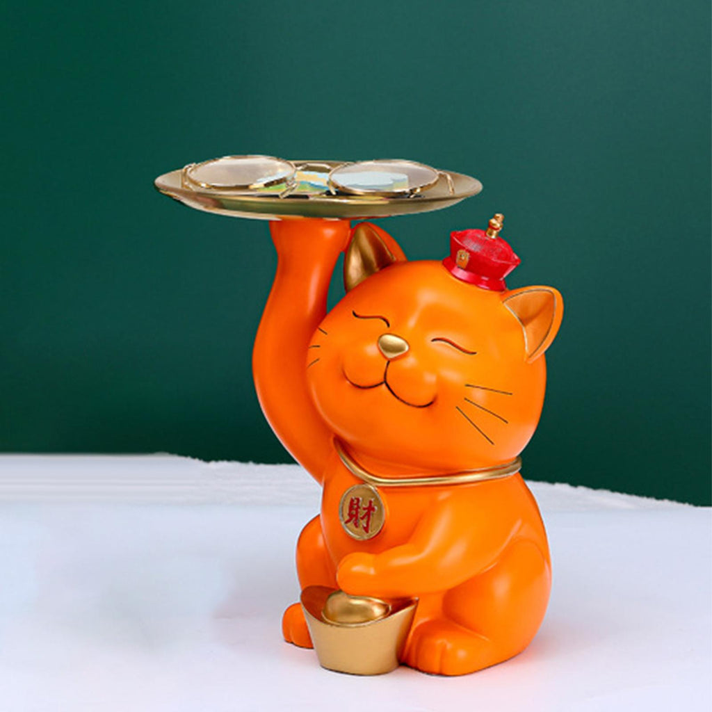 Maxbell Modern Cat Sculpture with Tray Crafts Home Decor Desk Sundries Storage Orange