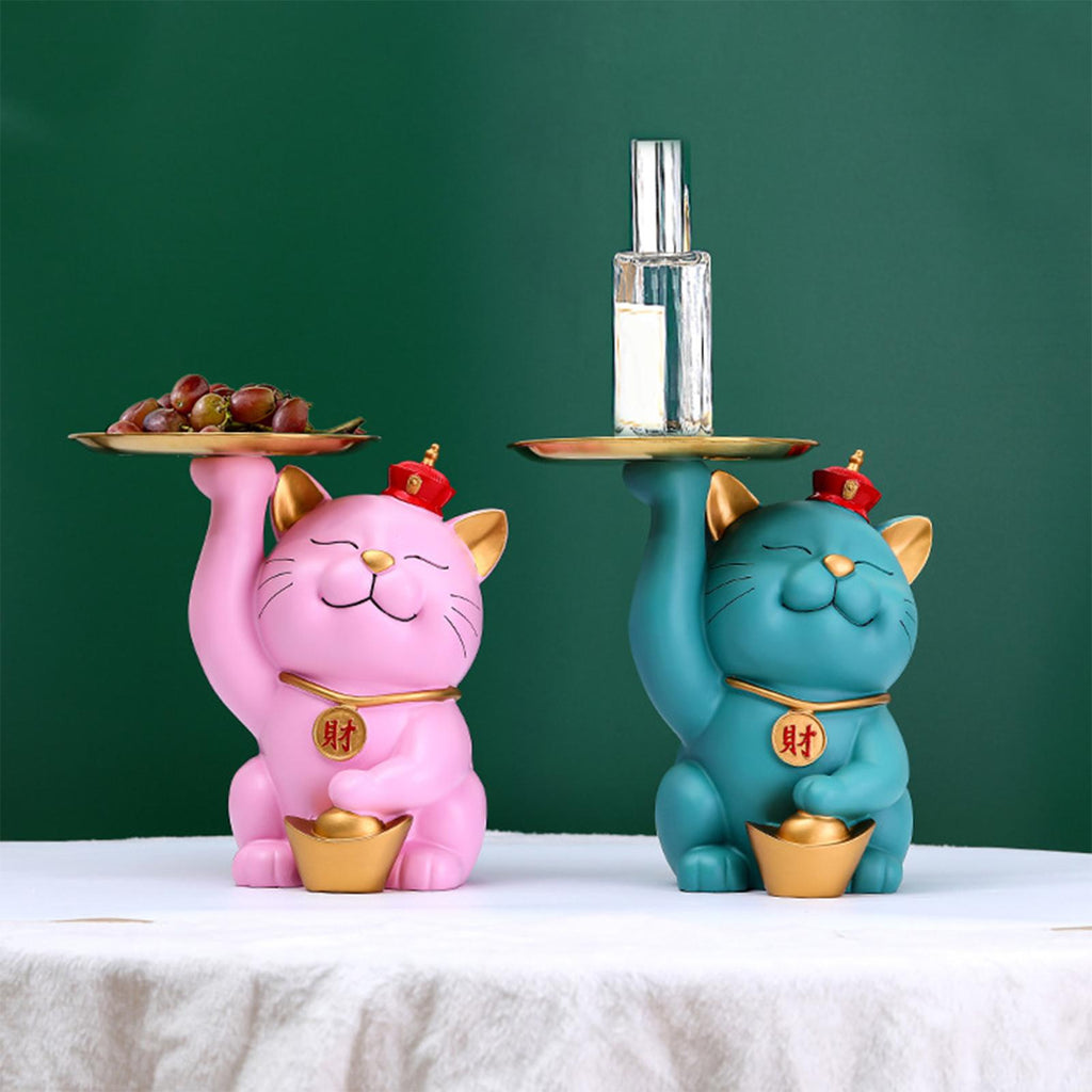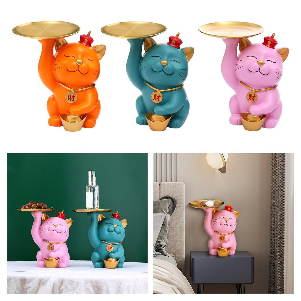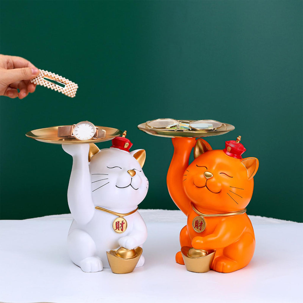 Maxbell Modern Cat Sculpture with Tray Crafts Home Decor Desk Sundries Storage Orange