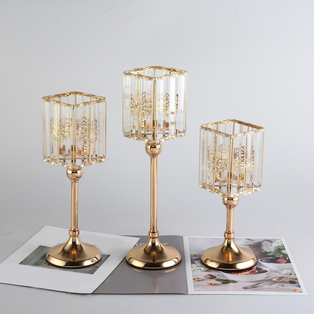 Maxbell Modern Crystal Candle Holder Candlestick Elegant for Tabletop Holiday Decor M 11cmx11cmx31cm