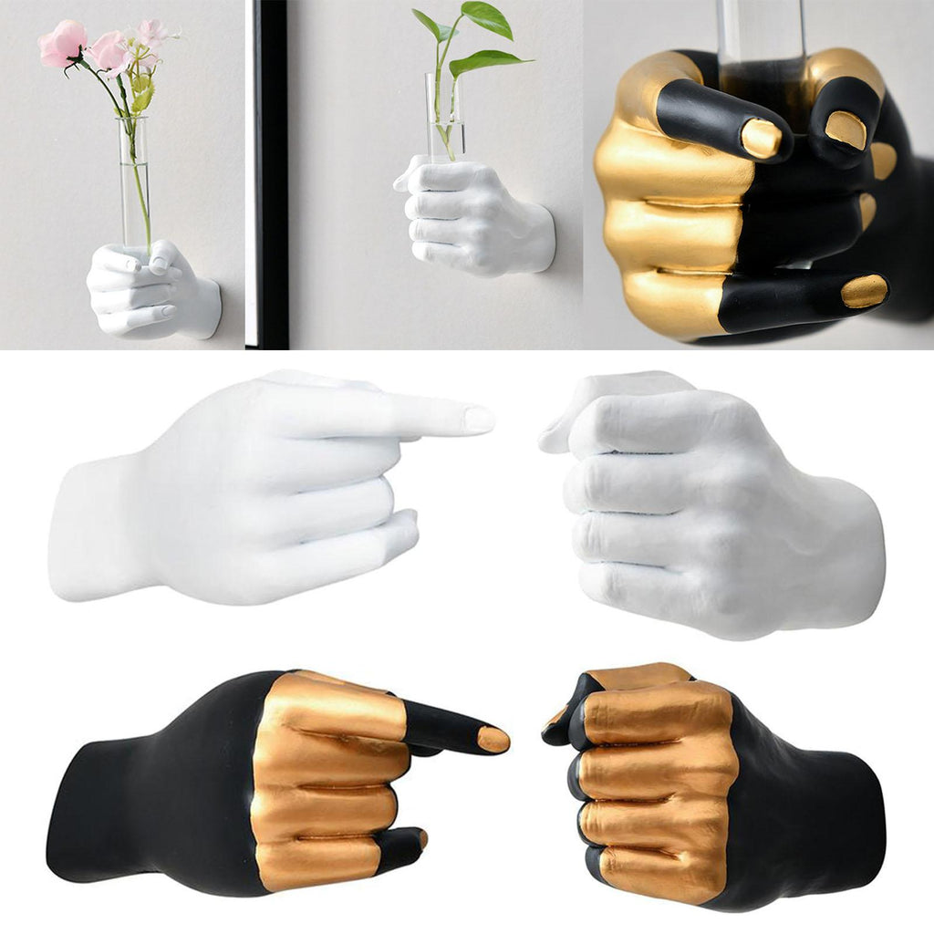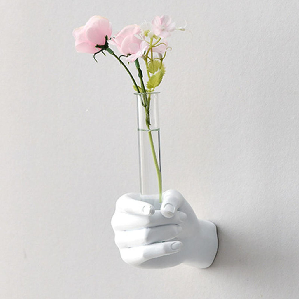 Wall Hanging Flower Vase: Unique design bud vase, delicate hand shaped decorative sculptures with hanging hole for hanging on the wall as a beautiful wall decoration.