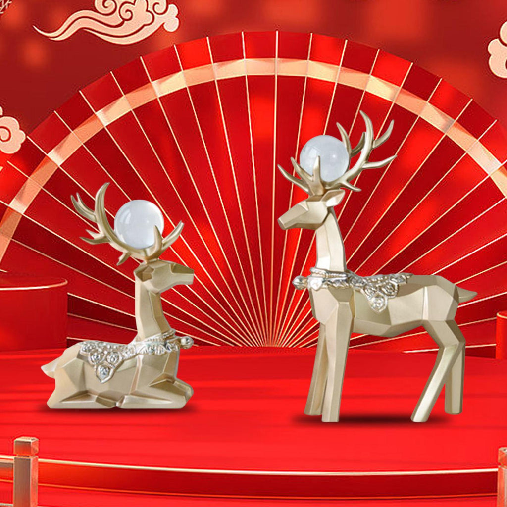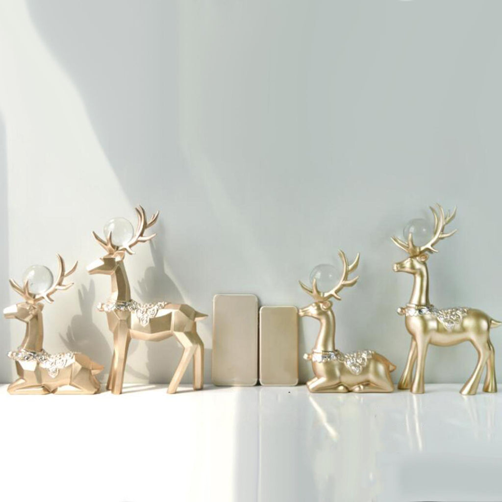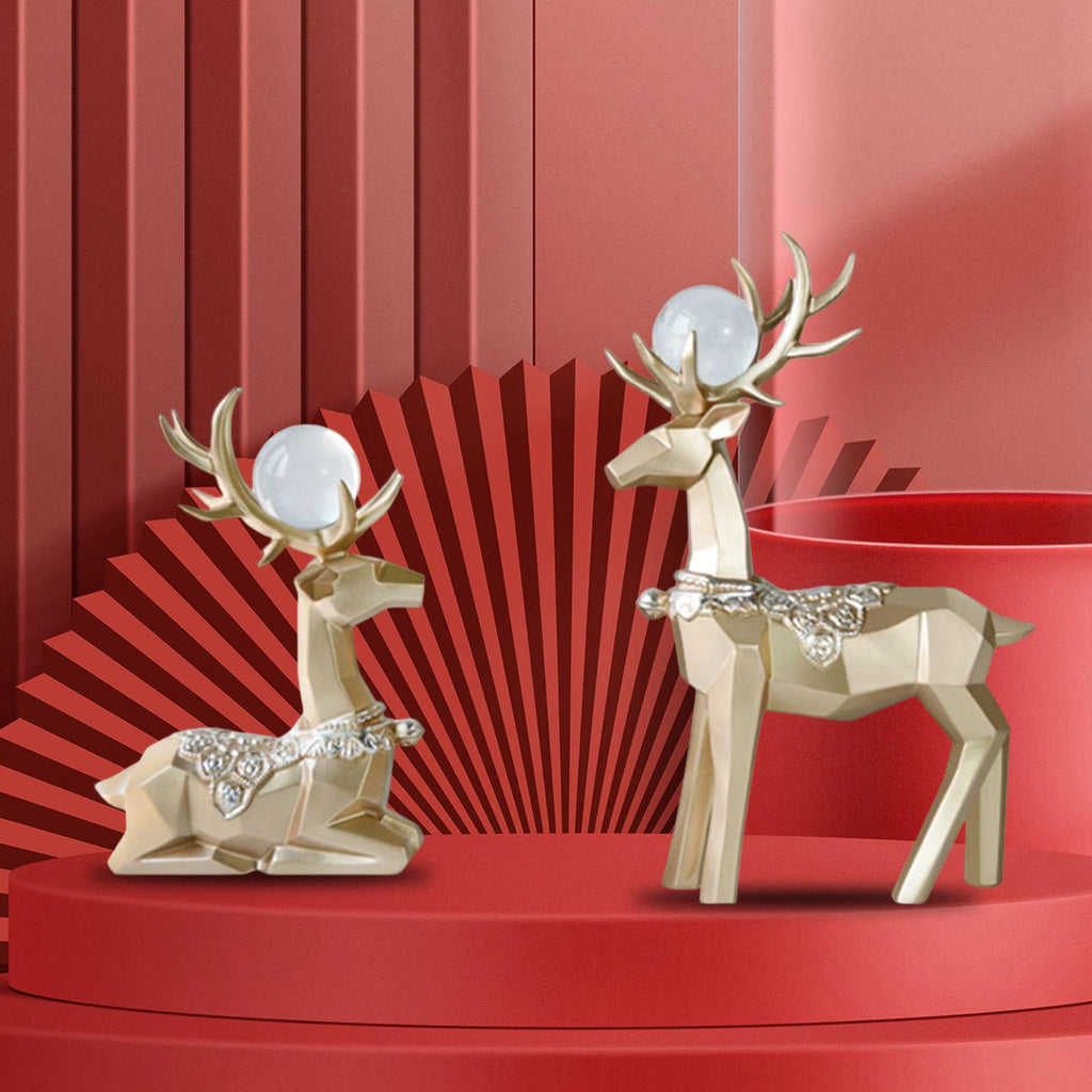 Maxbell Modern Reindeer Figurines Ornaments Deer Statues for Home Table Decor Geometric Aureate