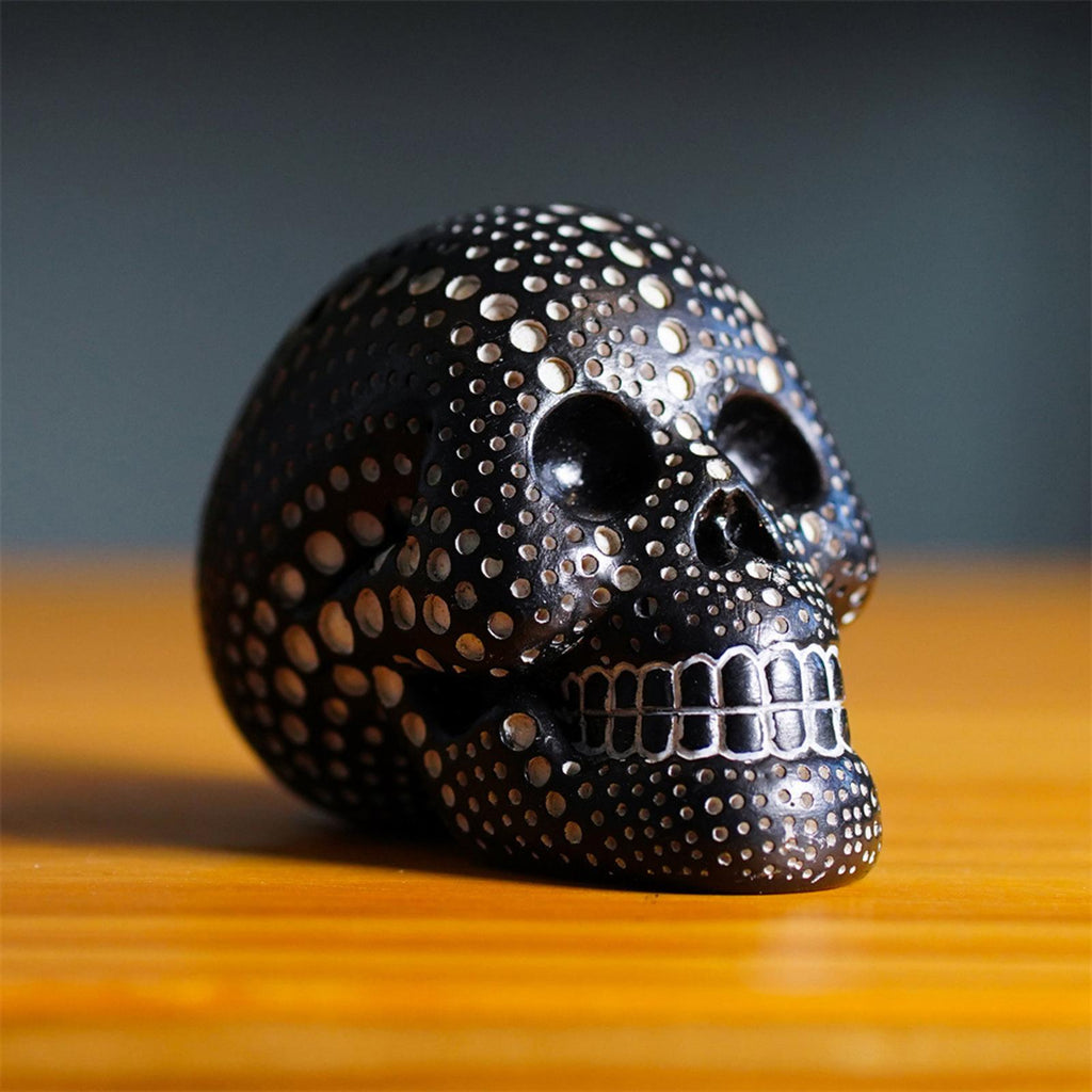 Skull Figurine: The figurine is perfect to display in living room, bedroom, office, shelf, windowsill, desk, TV stand.