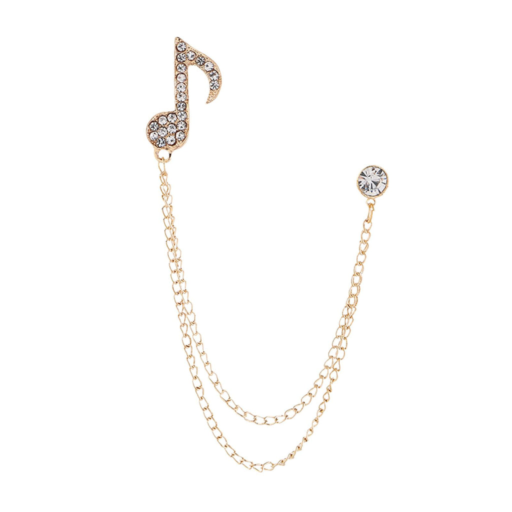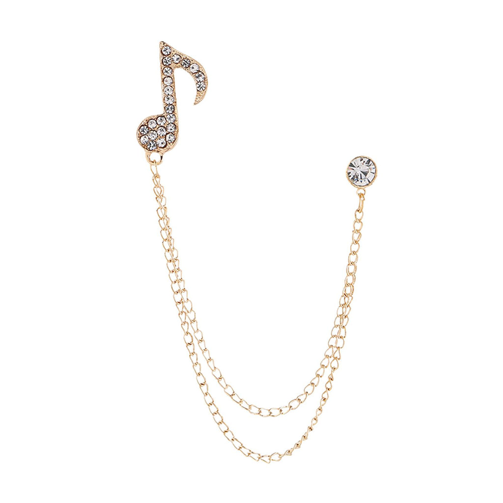 Maxbell Music Note Brooch Badge Decor Rhinestone Brooch for Sweater Shirt Gift Gold