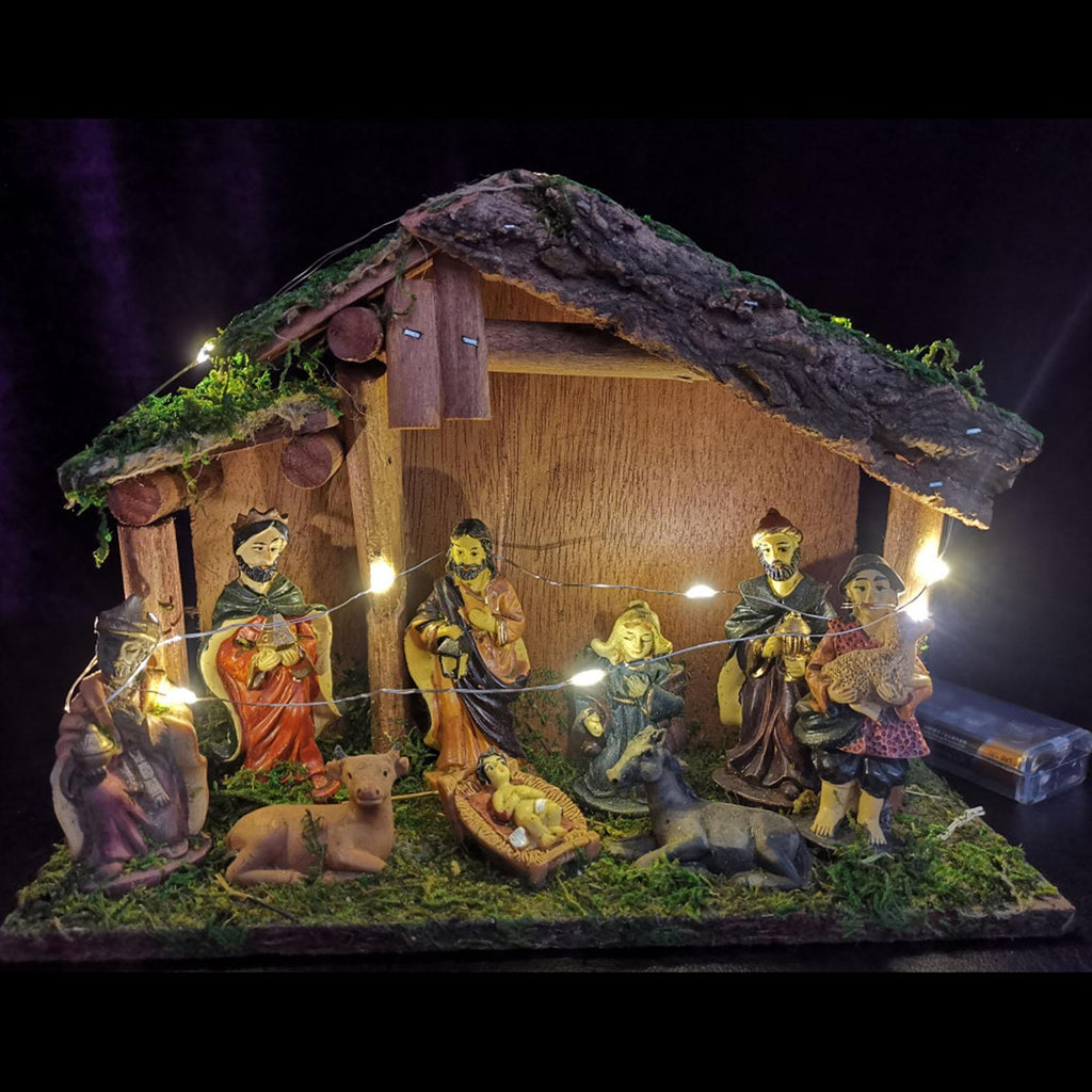 Good Details: Nativity Scene Figurine, manger set statue ornament, with 1m LED string lights, the texture is clear, the expression is vivid and lifelike.