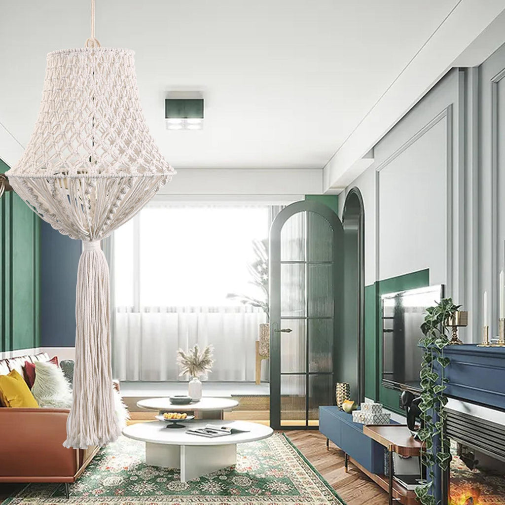 Macrame Rope: Made with cotton rope. The hanging lamp shade is a beautiful way to accent room mystical.