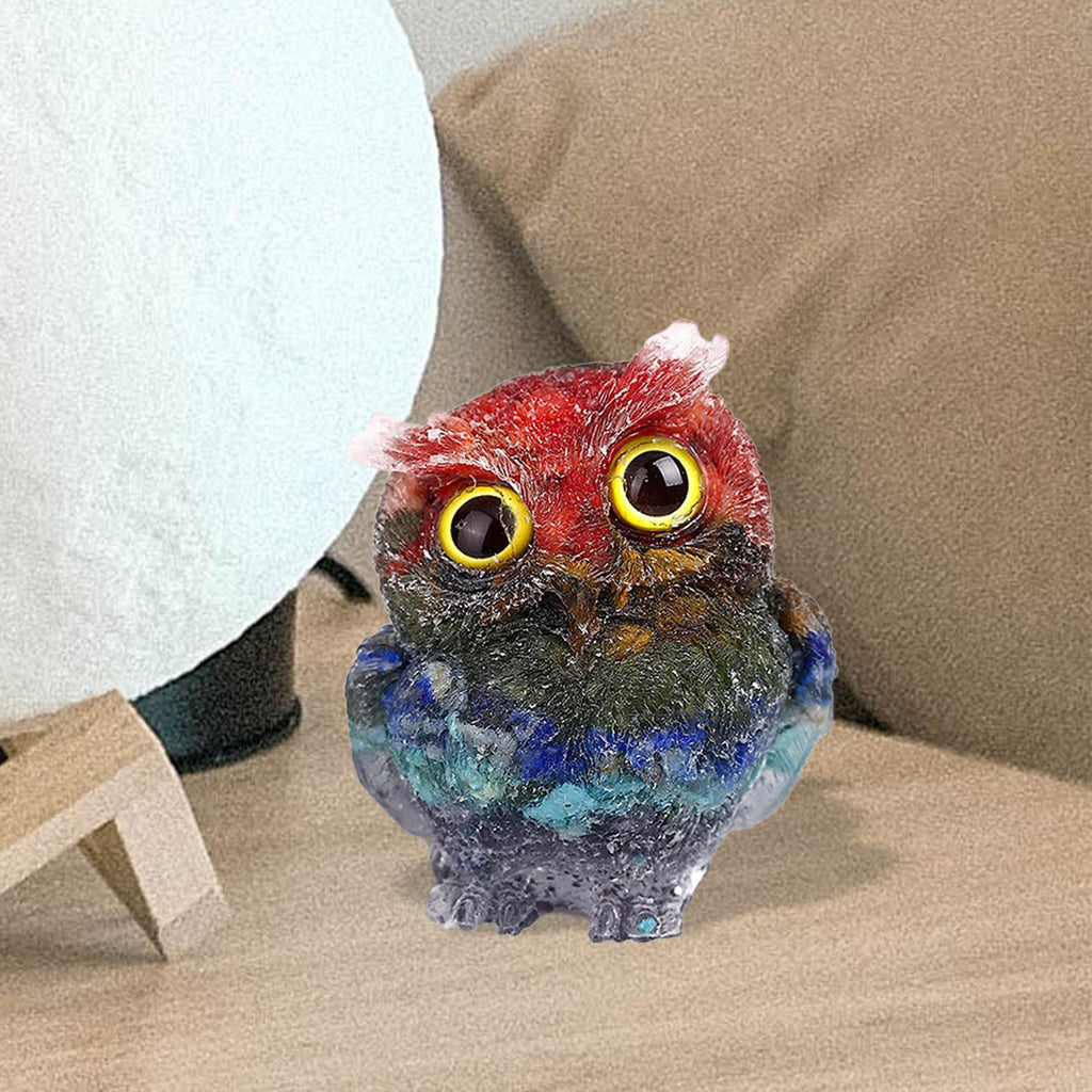 Maxbell Natural Crystal Stone Gravel Owl Figurine Home Decor Collectible Owl Statue StyleA