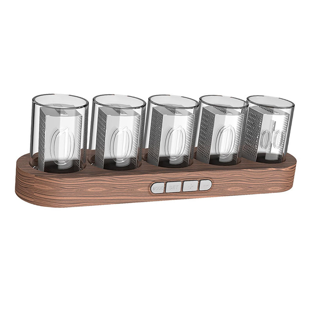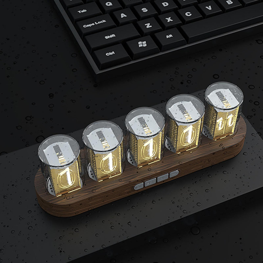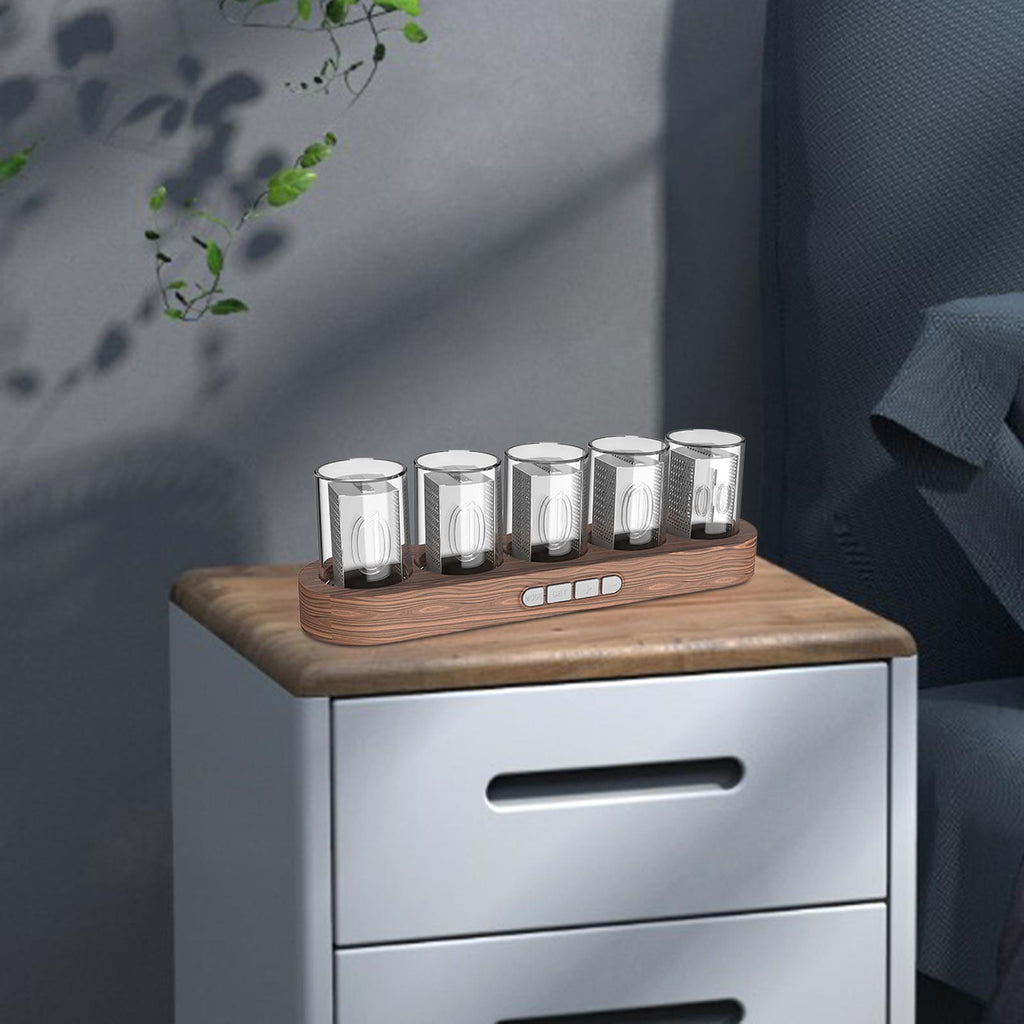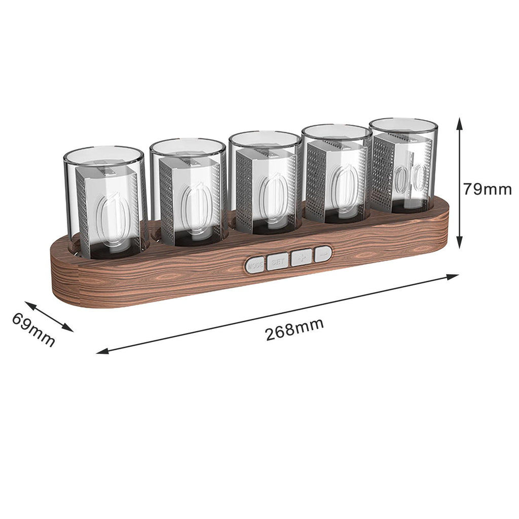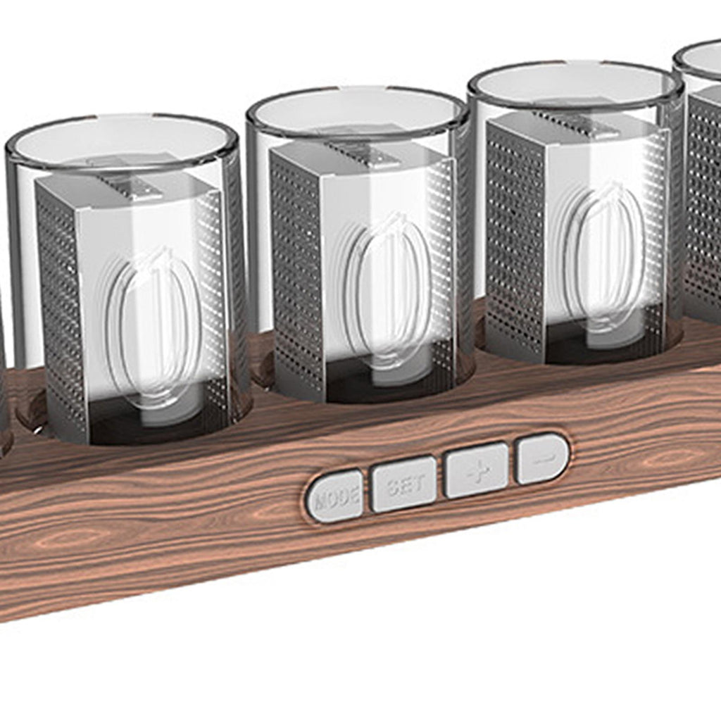 Nixie Tube Clock LED Desktop Clock Alarm Clock Adjustable Bedroom Decor Wood