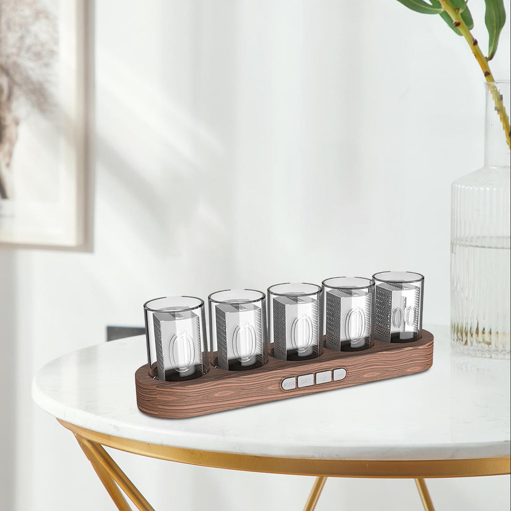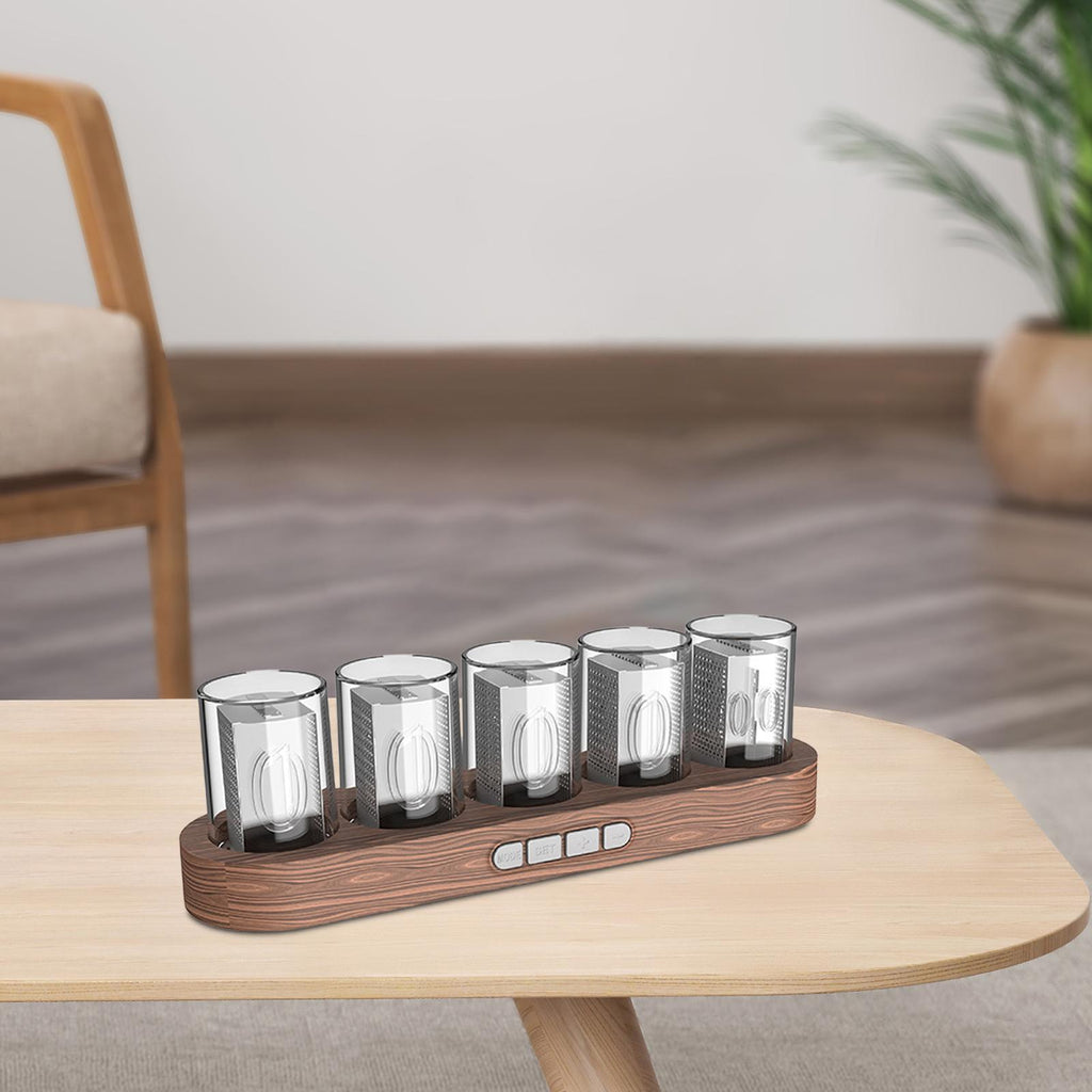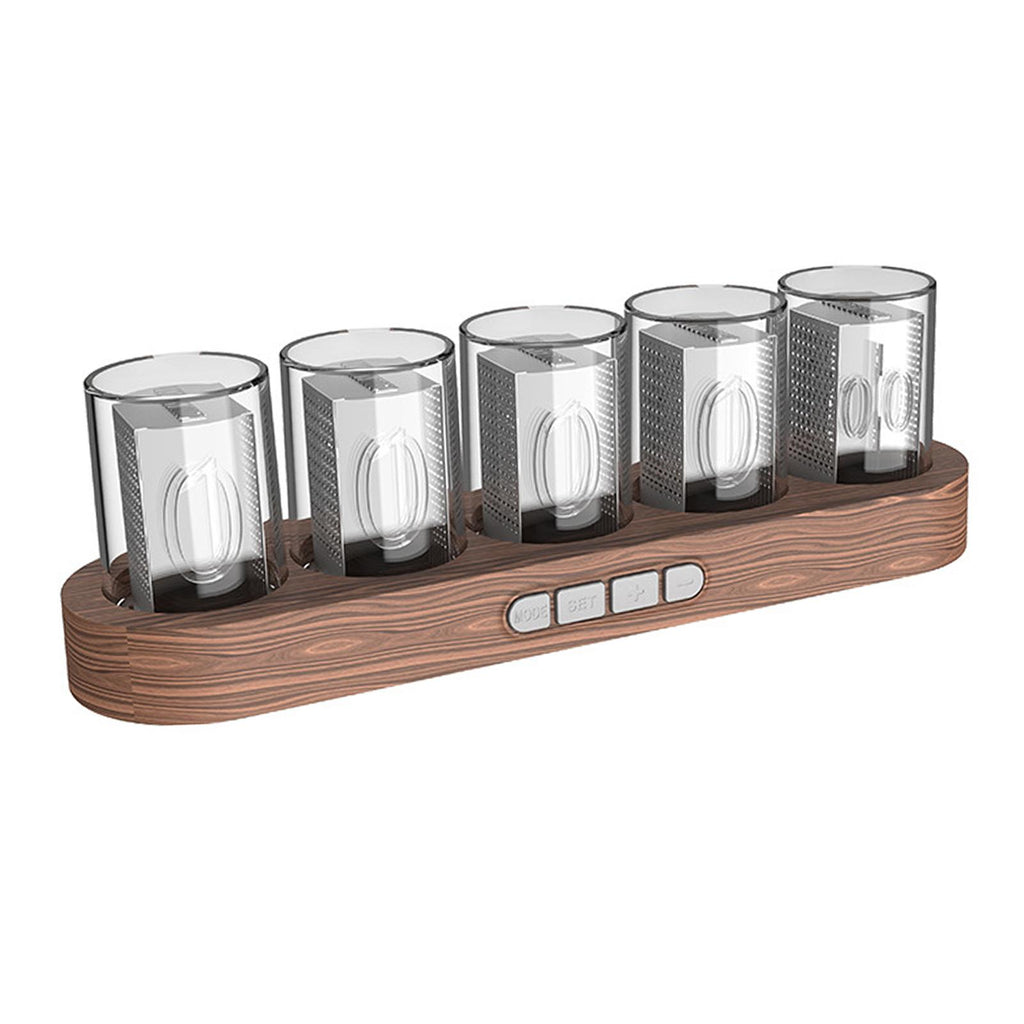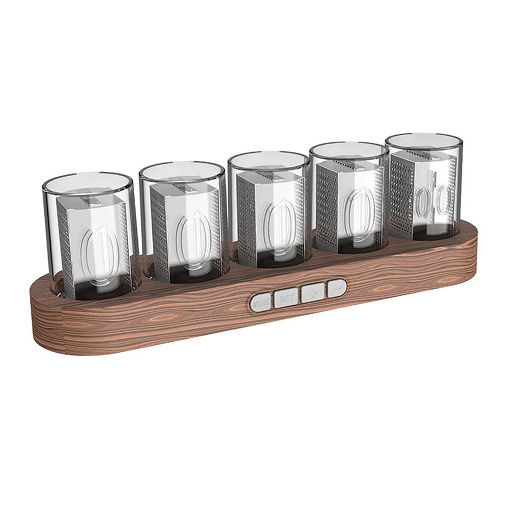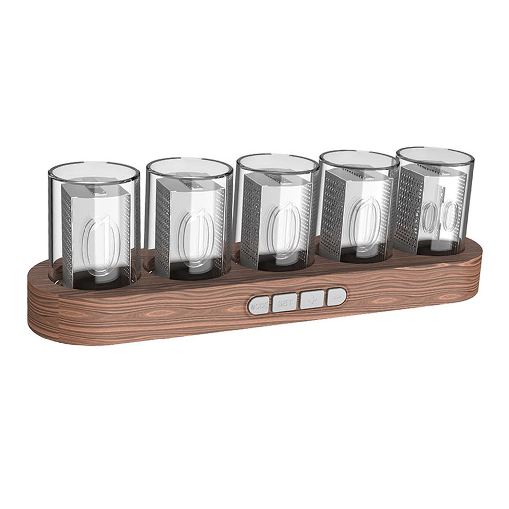 Nixie Tube Clock LED Desktop Clock Alarm Clock Adjustable Bedroom Decor Wood