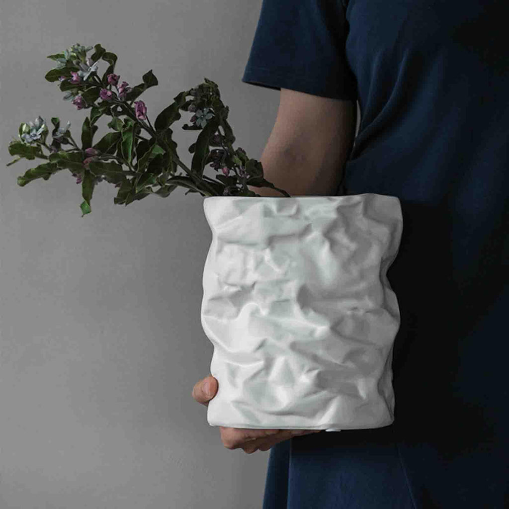 Ceramic Vase: Made with high quality ceramic, crumpled creative design, the vase adds flavor to your interior decoration.