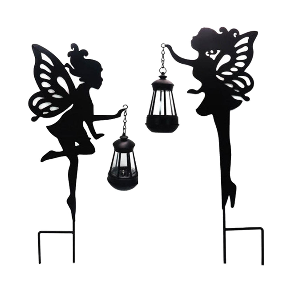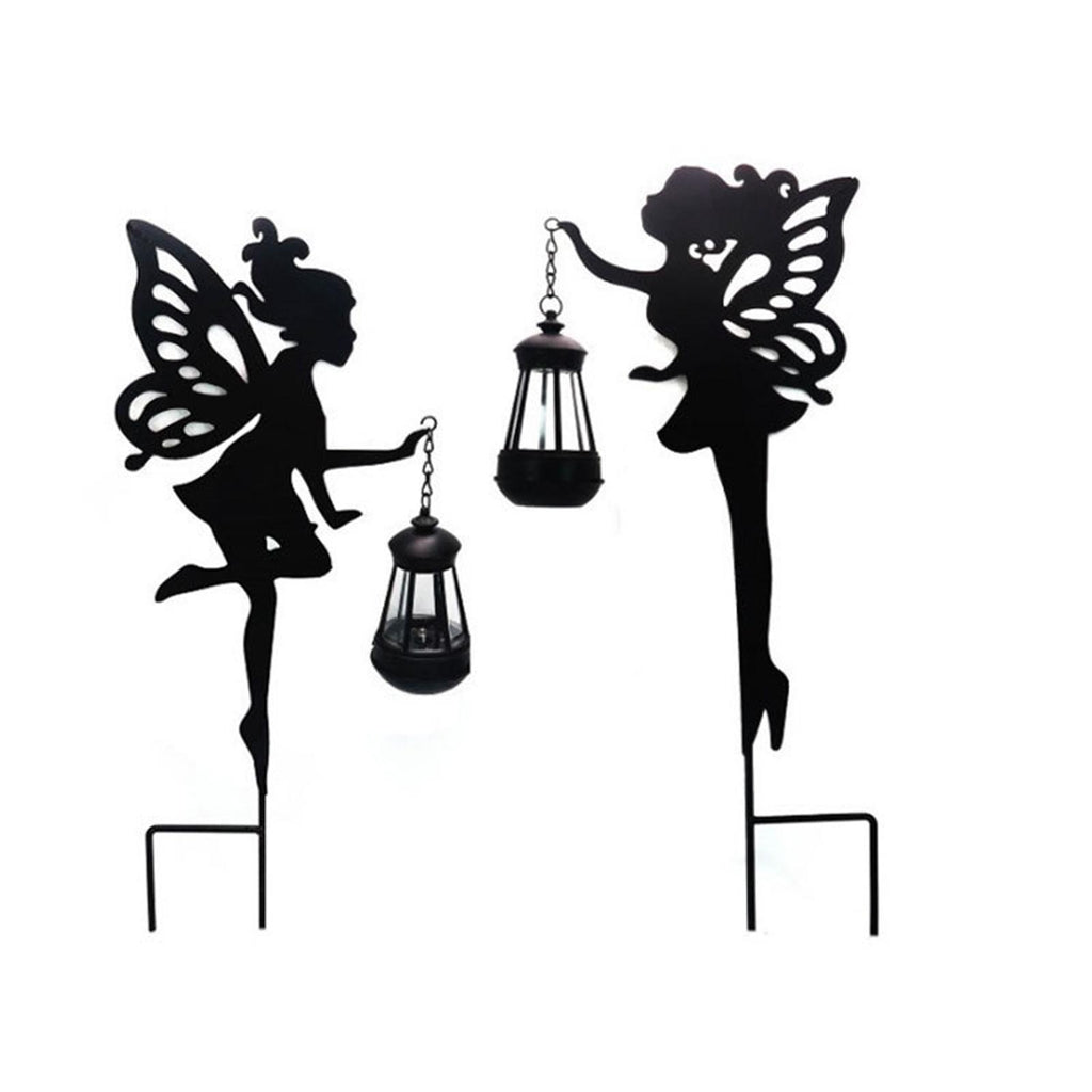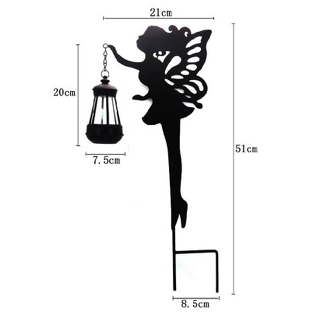 Easy to install: These Metal Fairy solar lamps can be made in minutes.The metal fairies are first placed on wooden posts, then nailed to soft ground under direct sunlight and hung up with solar lamps.There is a label on the lampshade. Please take it off before charging.
