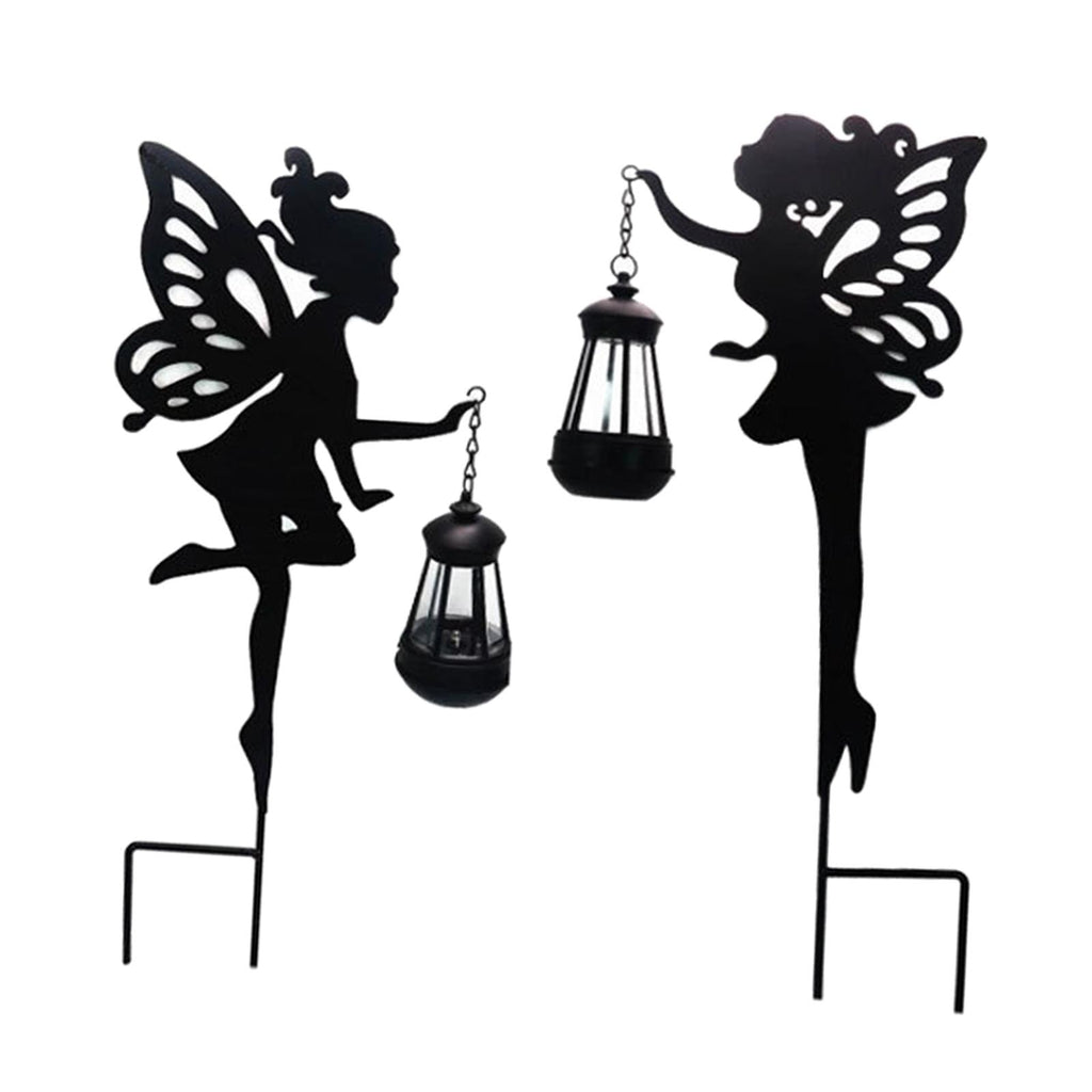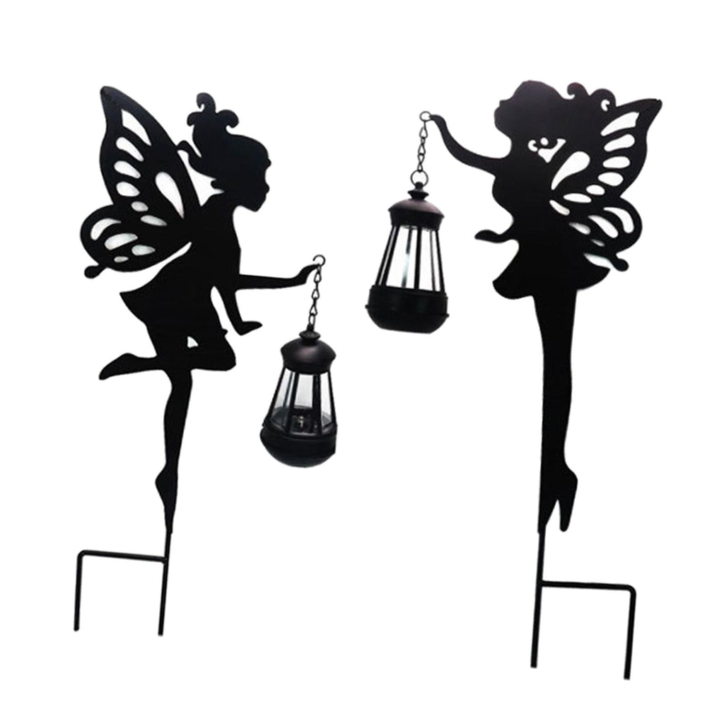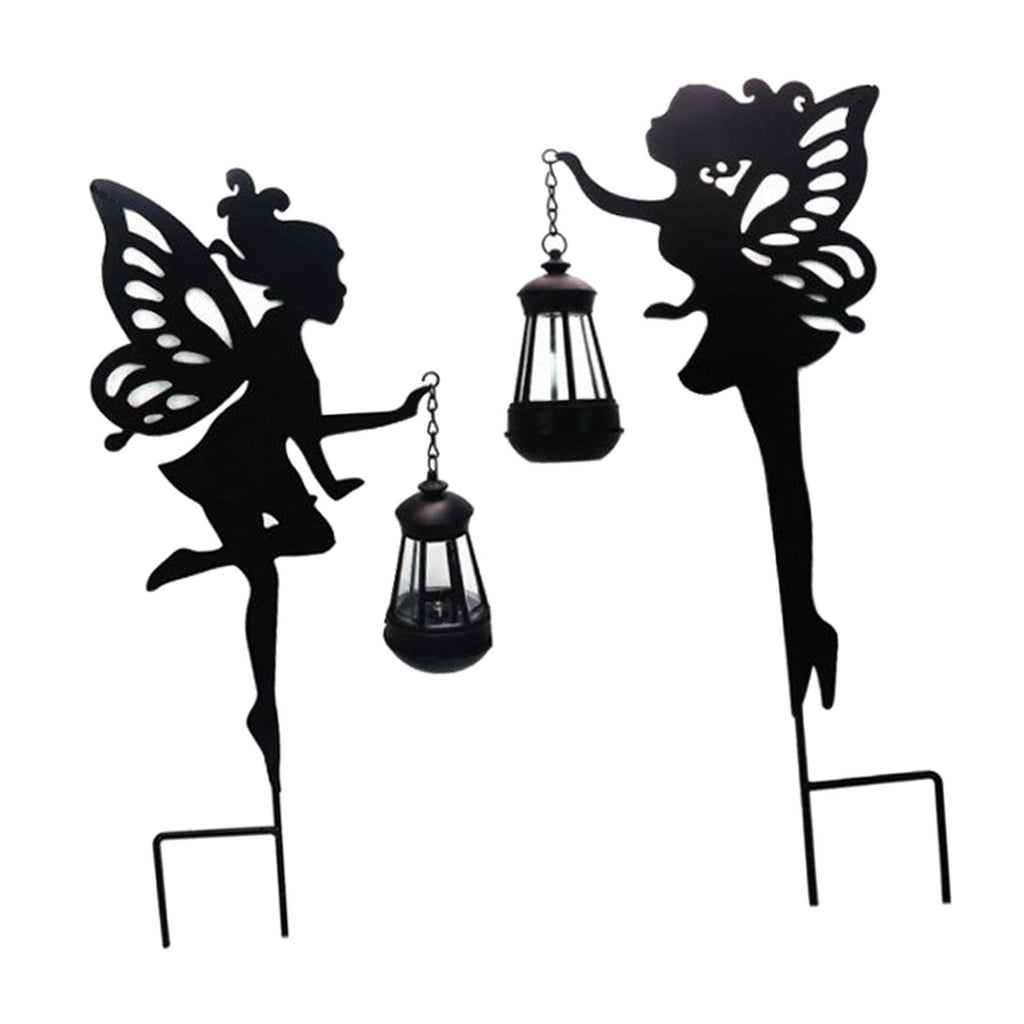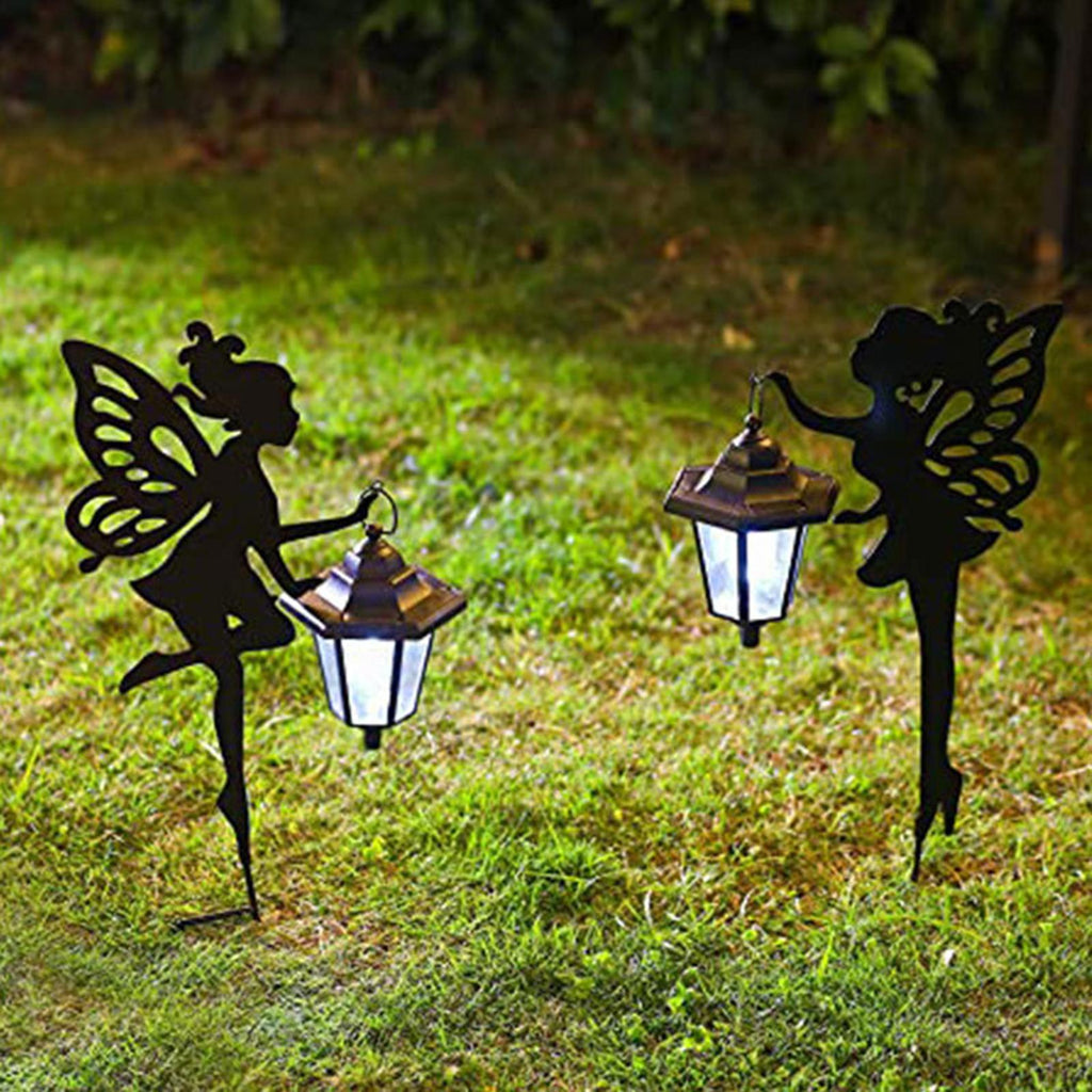 Easy to install: These Metal Fairy solar lamps can be made in minutes.The metal fairies are first placed on wooden posts, then nailed to soft ground under direct sunlight and hung up with solar lamps.There is a label on the lampshade. Please take it off before charging.