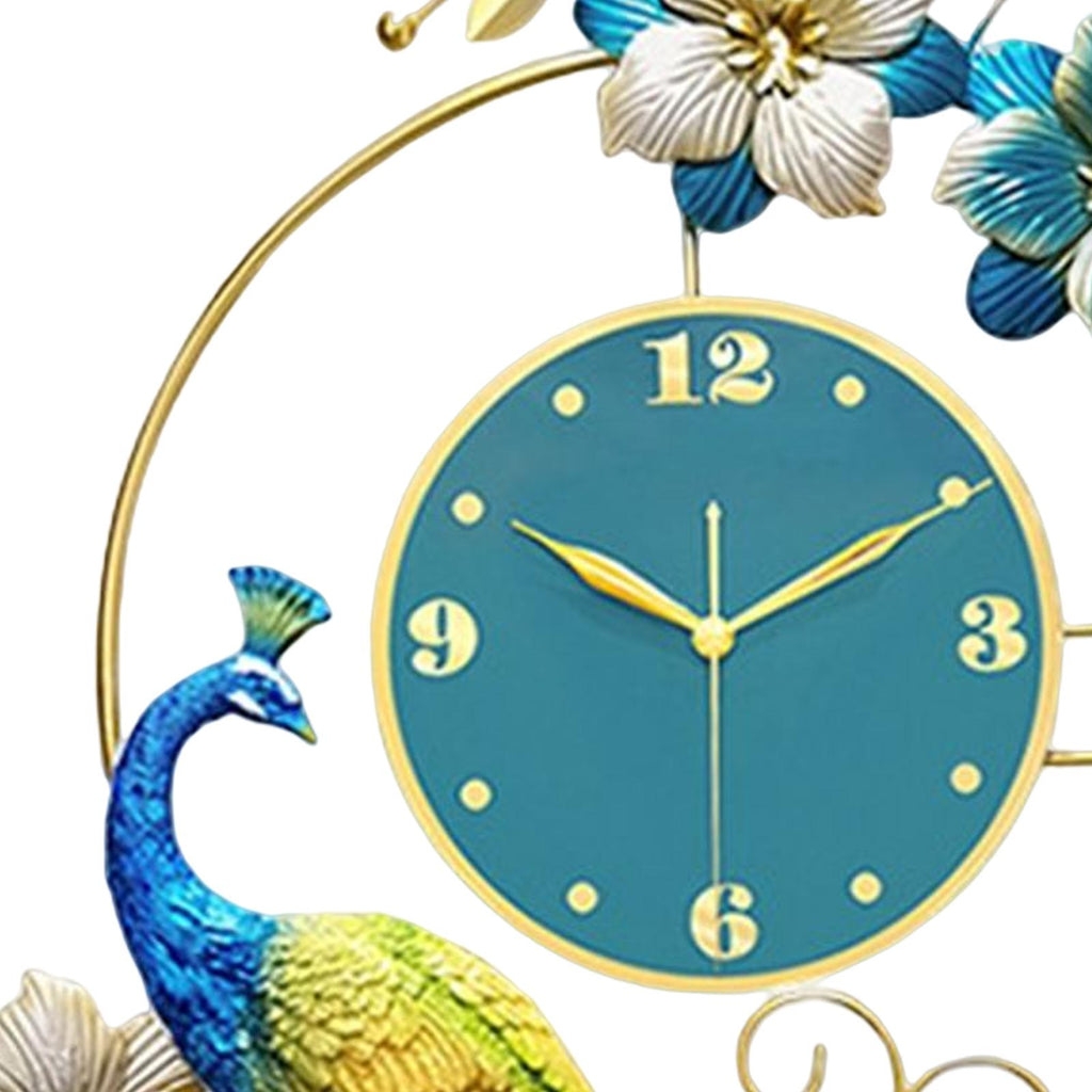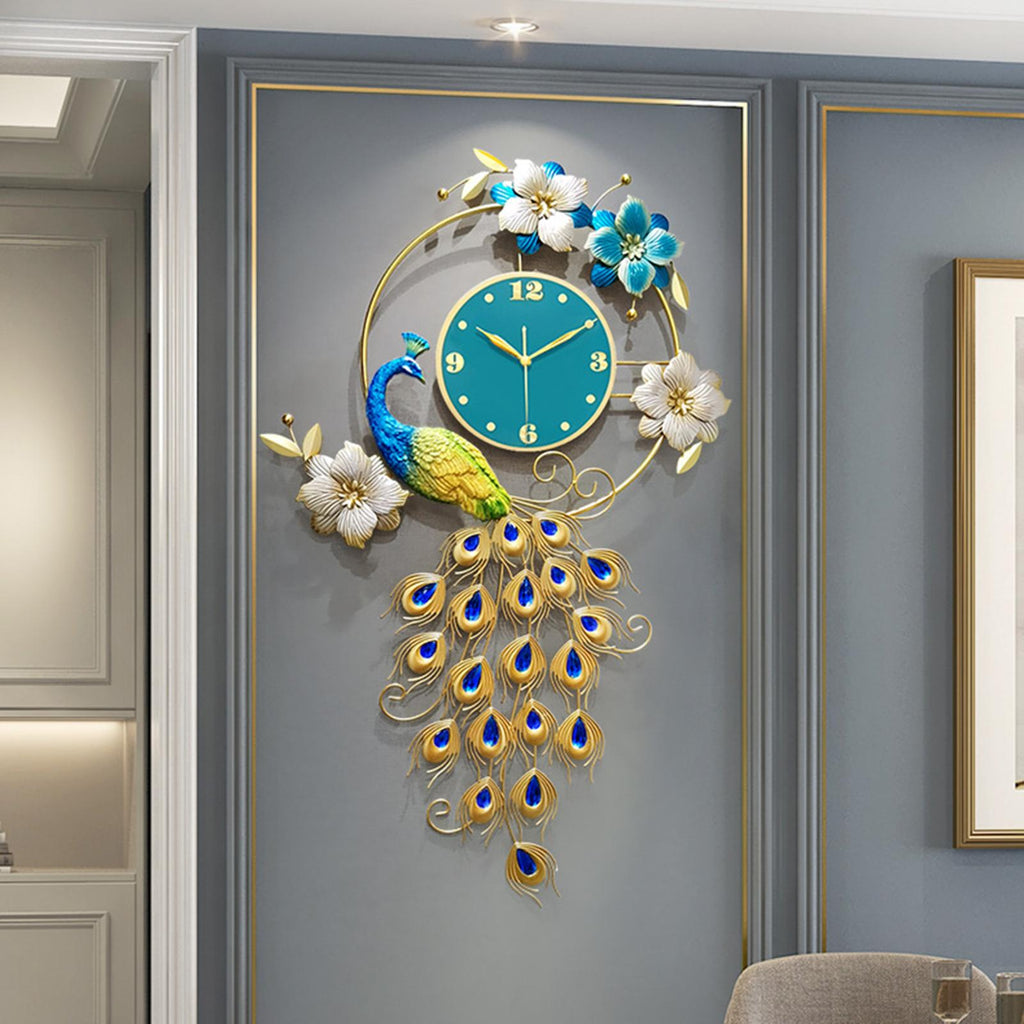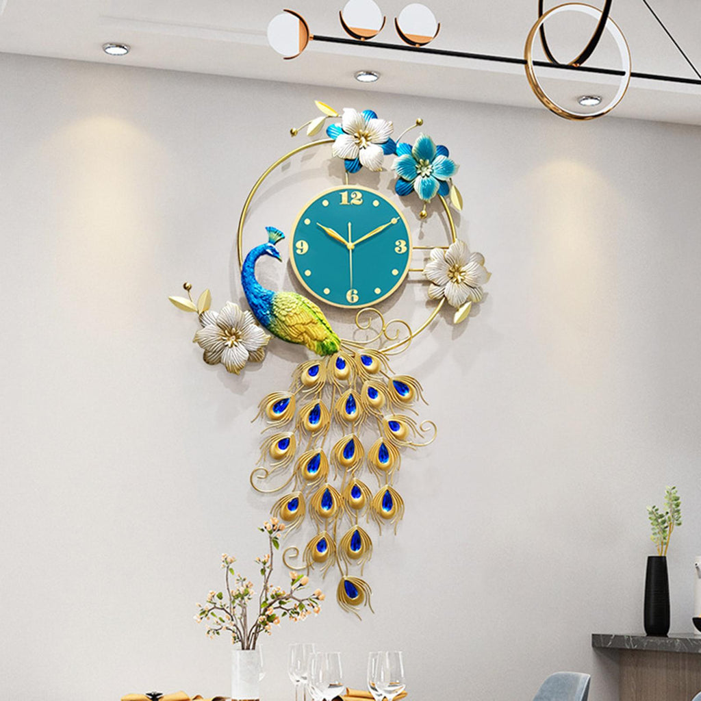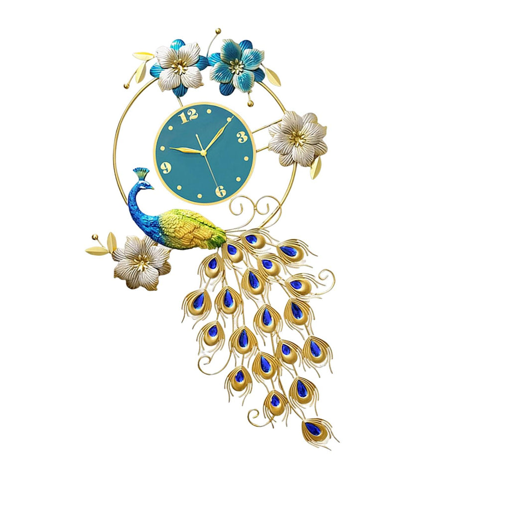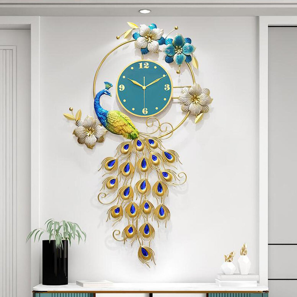 Decorative Wall Clock Material: Metal material frame, Exquisite and stylish,Decorative wall clock with peacock and flowers decorative to add luxury to your home.