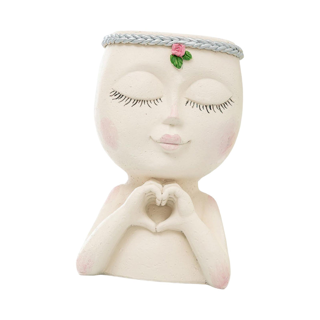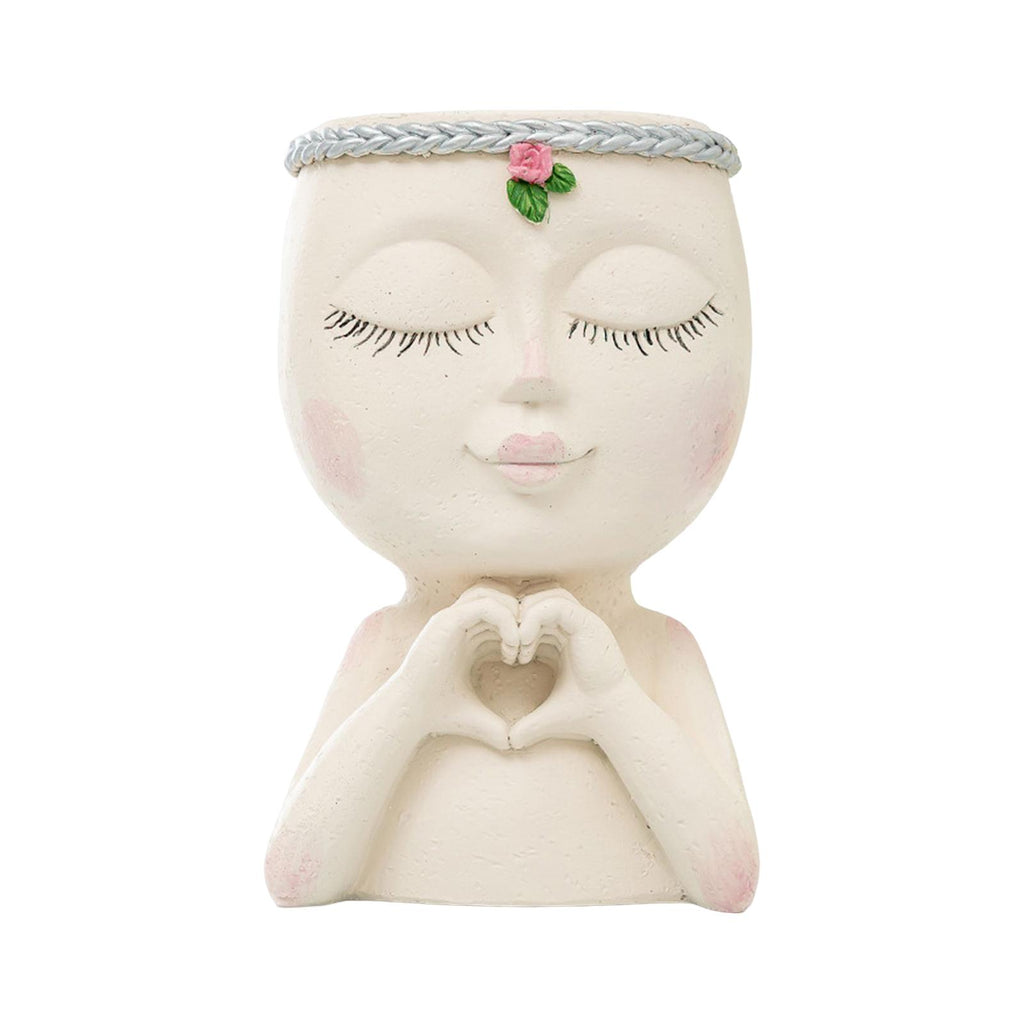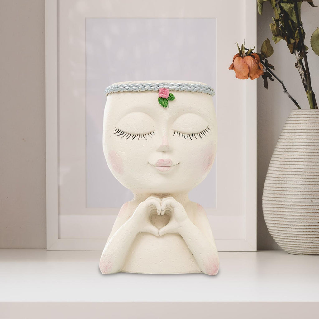 Maxbell Planter Pot Closed Eyes Outdoor Bowl Tabletop Decorative Face Shape Ornament White