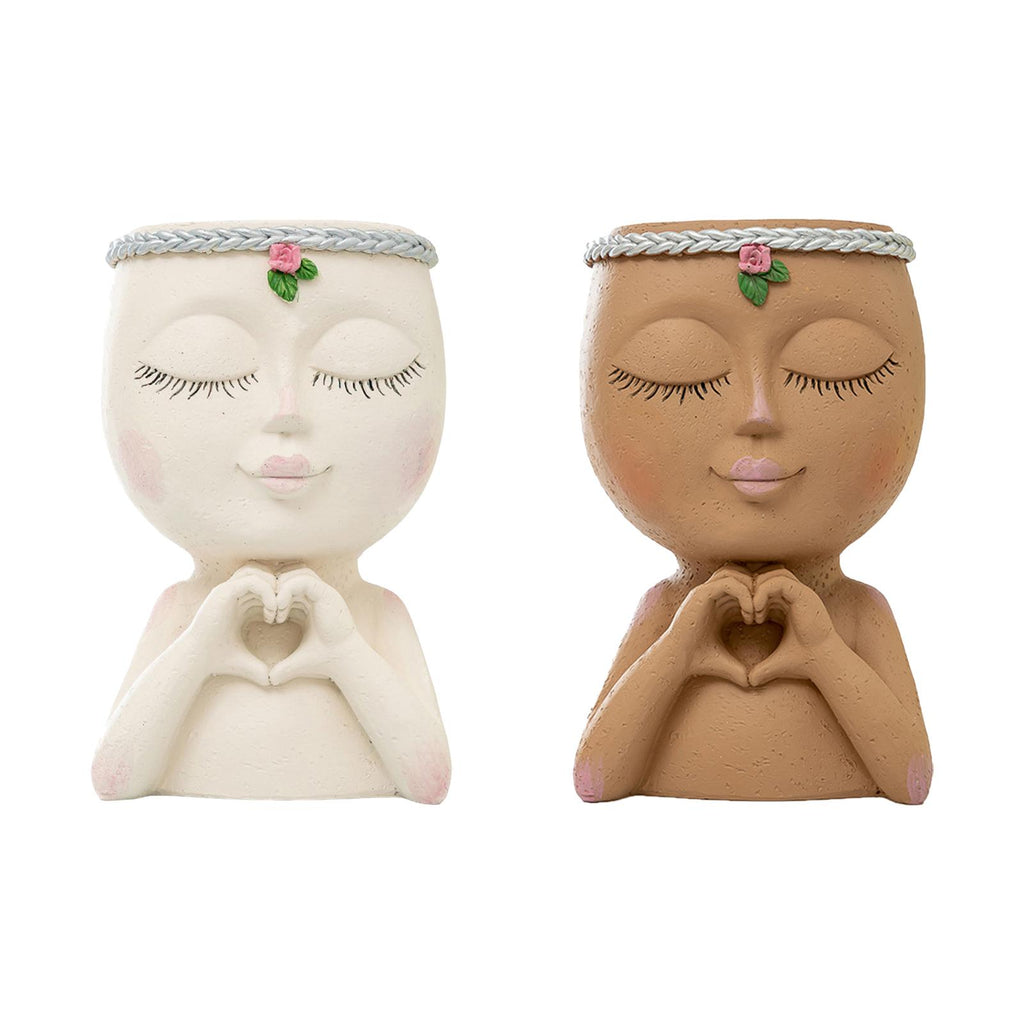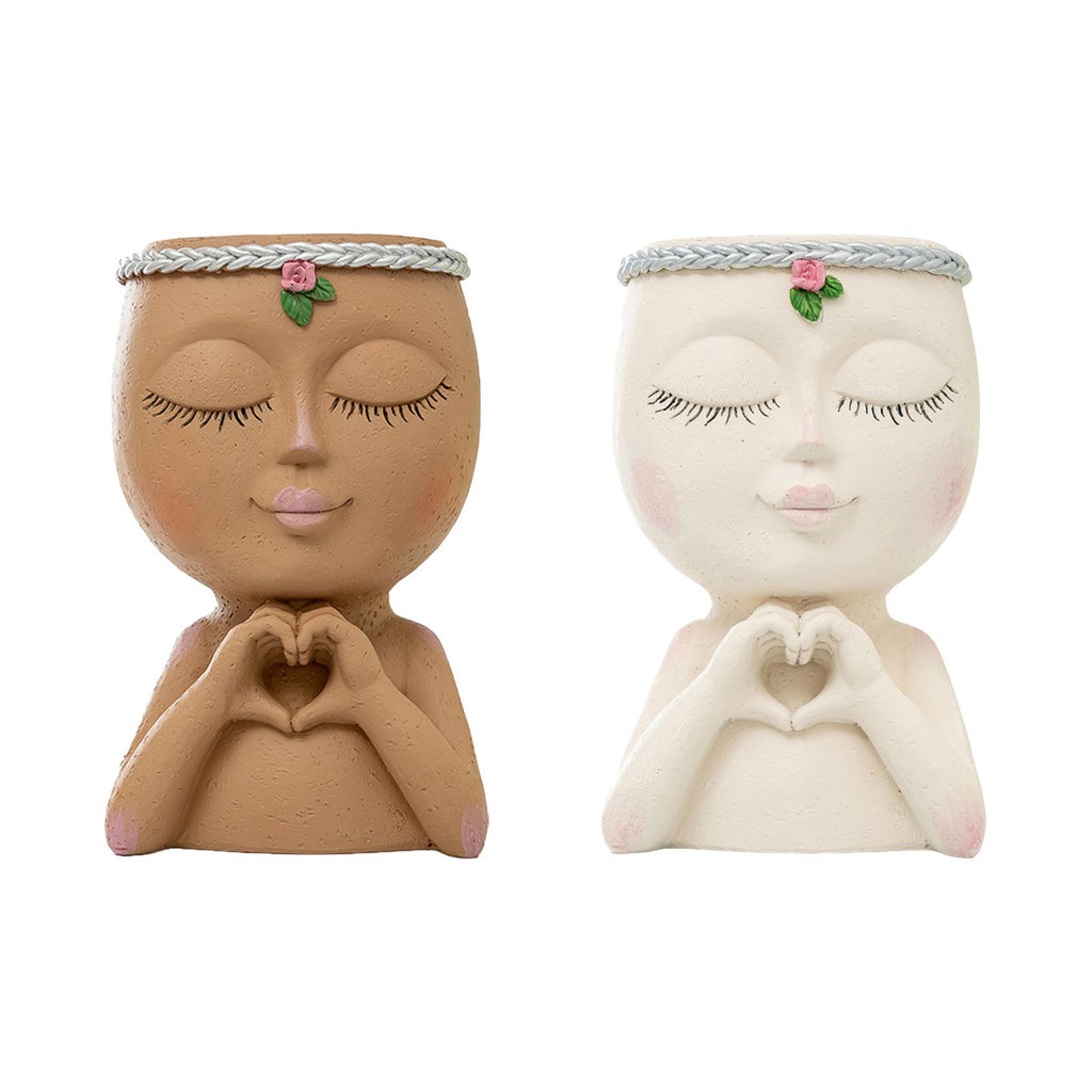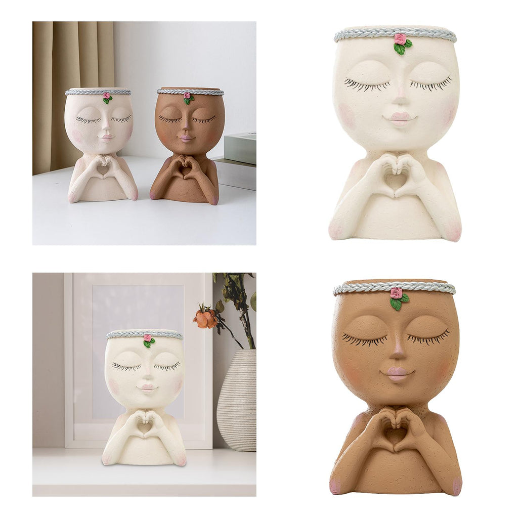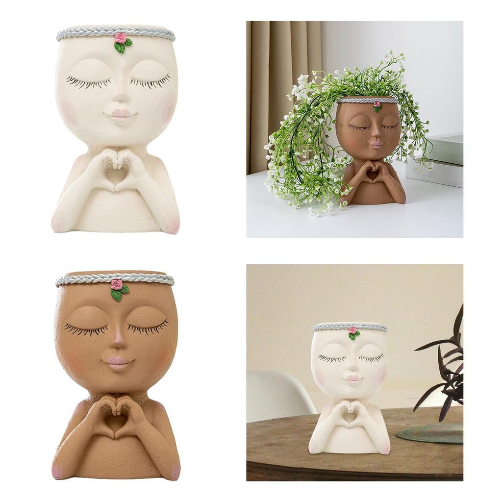 Maxbell Planter Pot Closed Eyes Outdoor Bowl Tabletop Decorative Face Shape Ornament White
