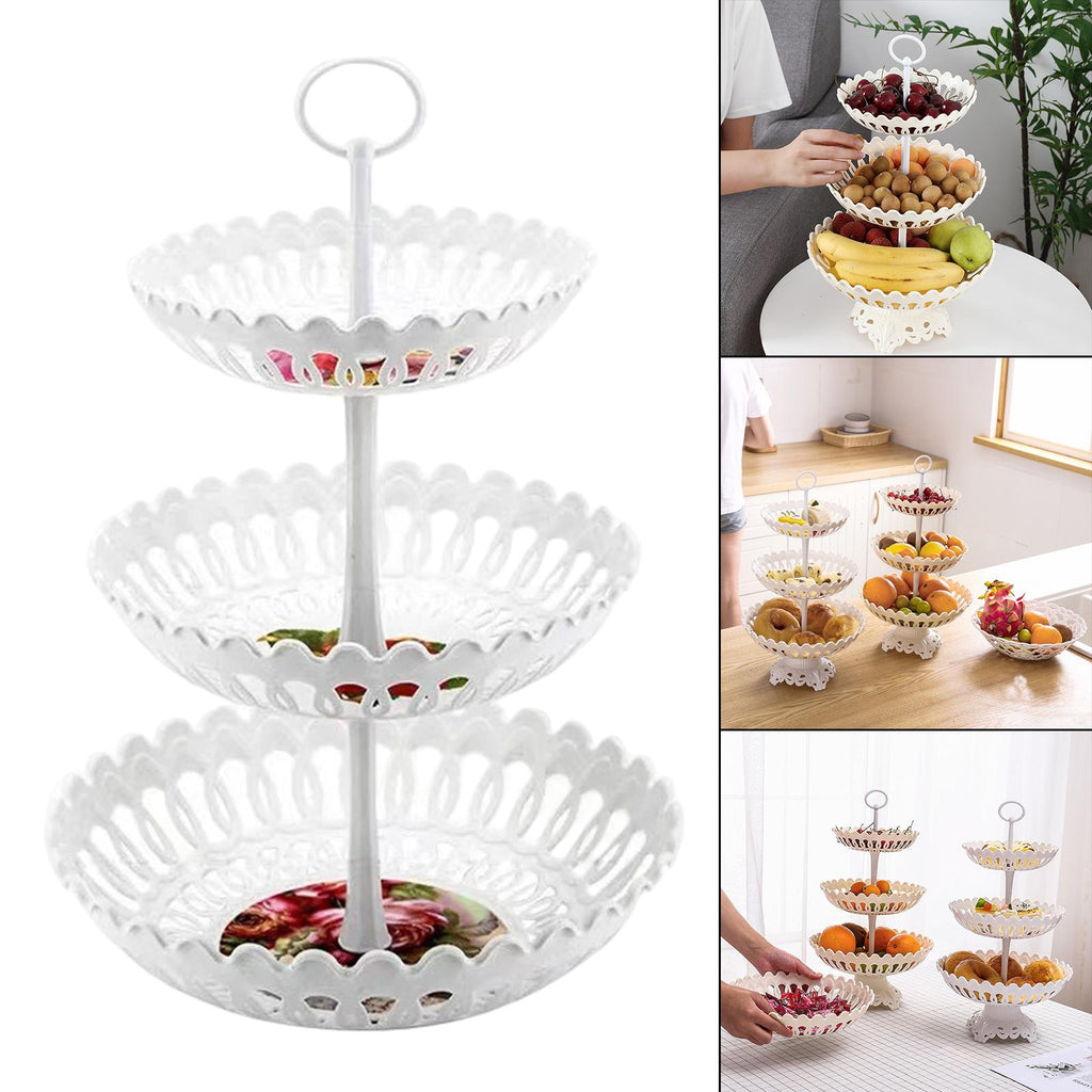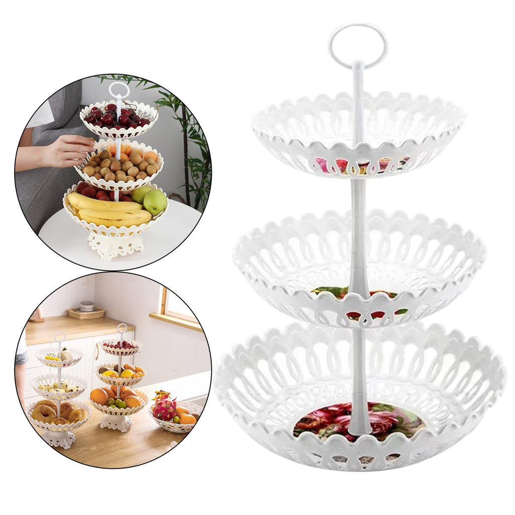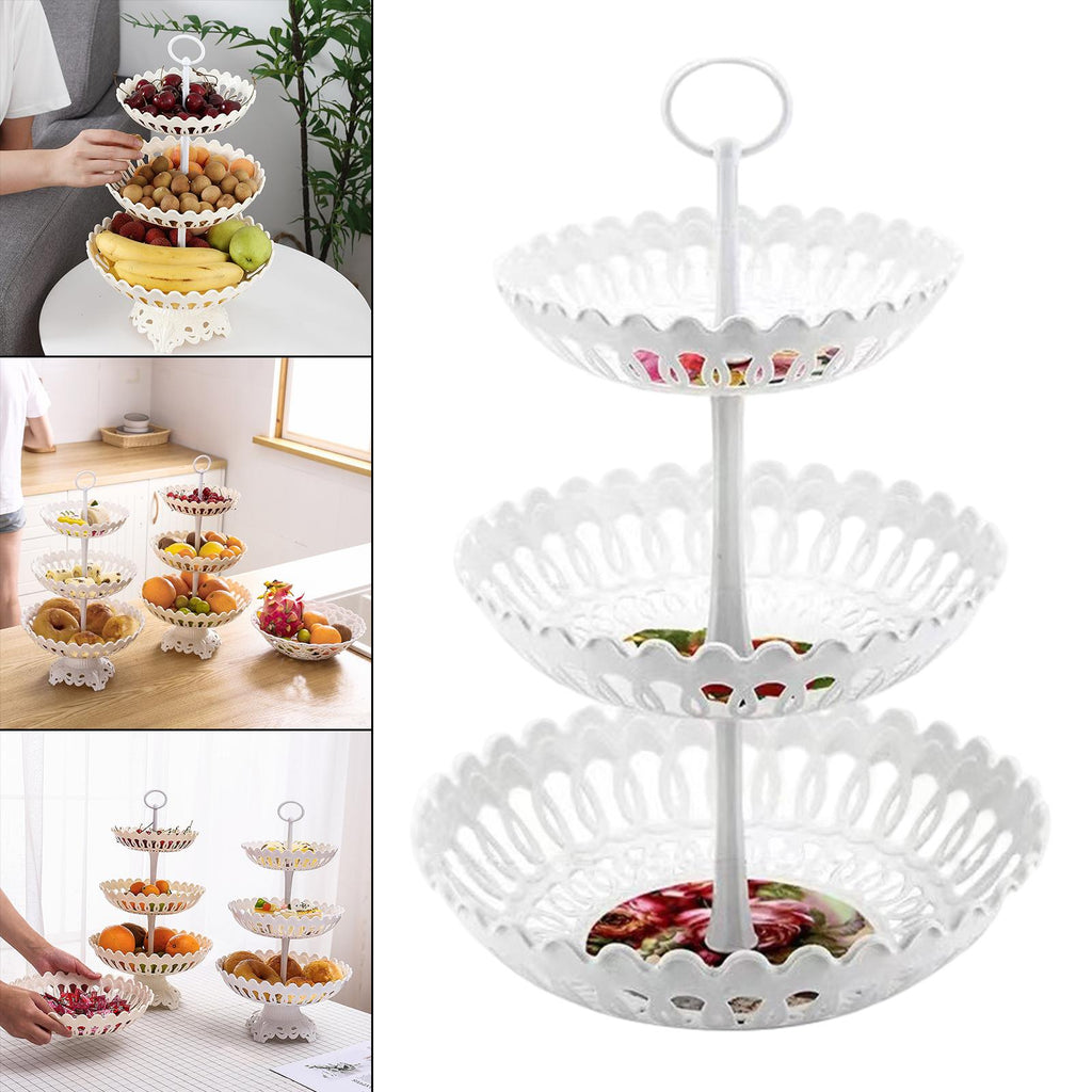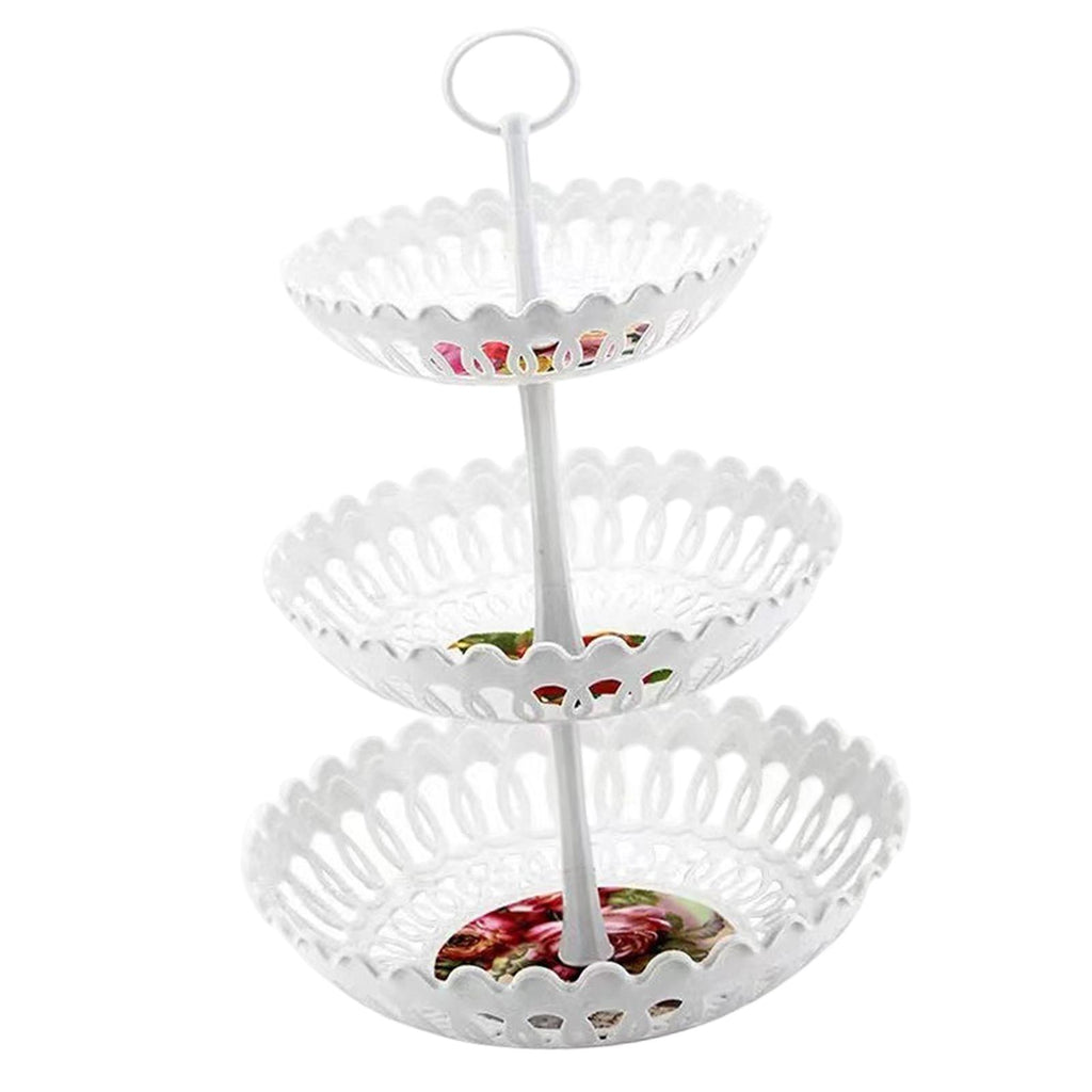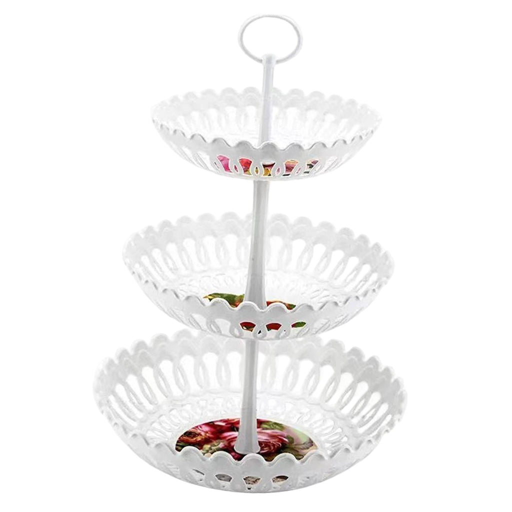 Maxbell Plastic Fruit Plate Cookie Tray Dried Fruit Basket for Wedding Home Decor Three layers