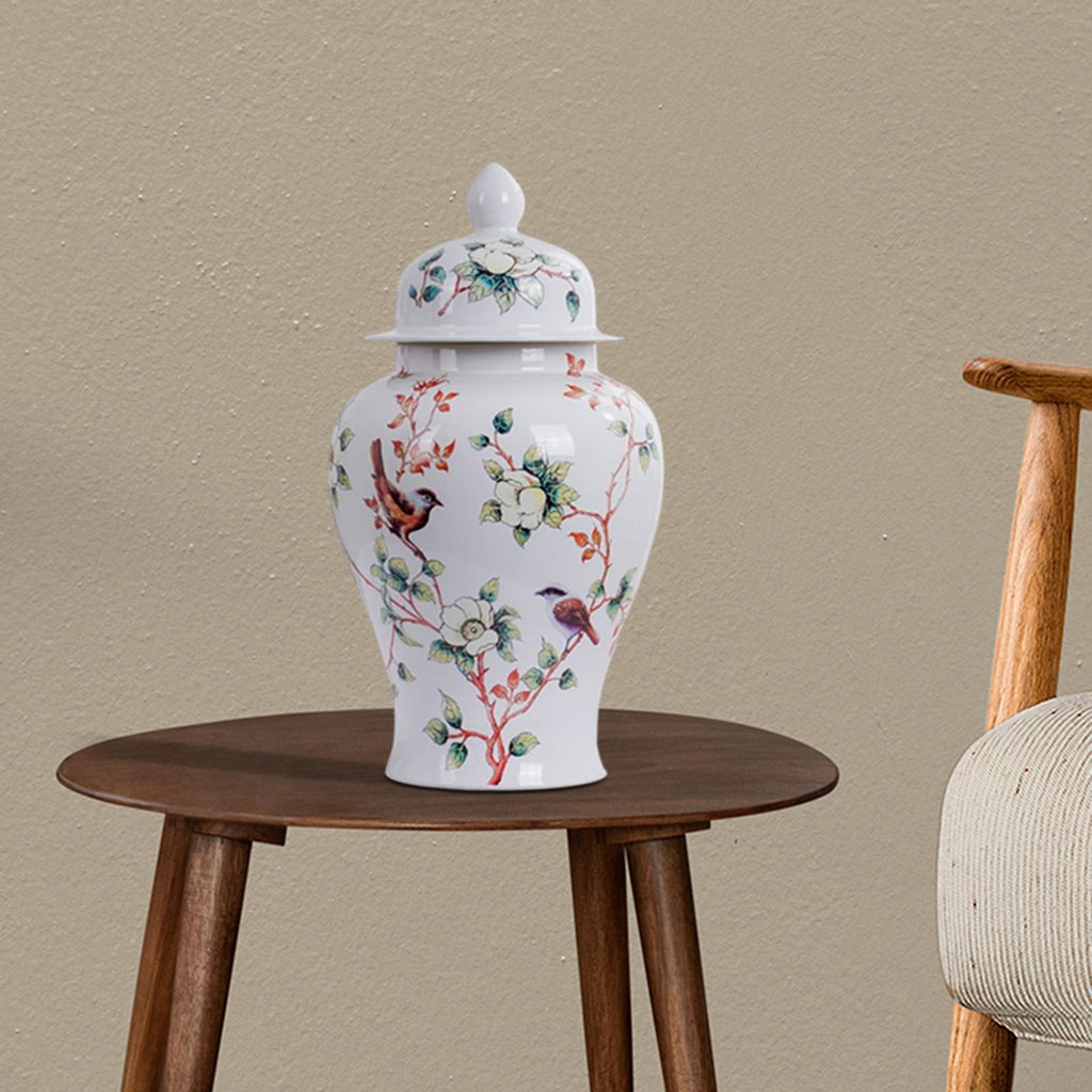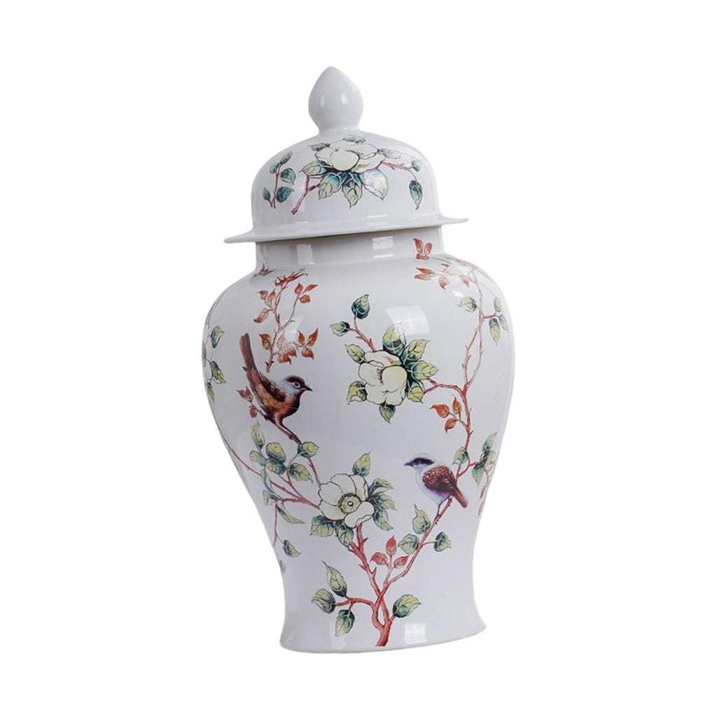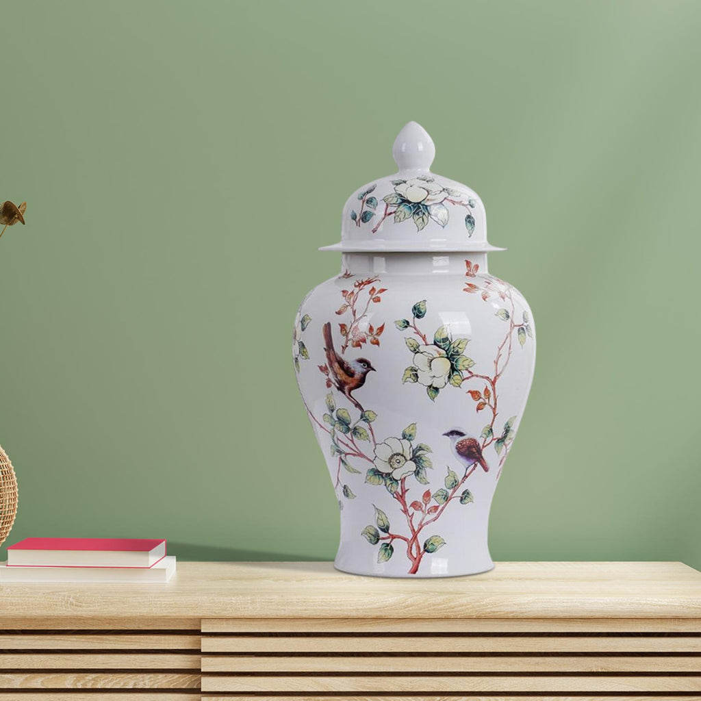 Maxbell Porcelain Temple Jar Vase Decorative with Lid for Office Entryway Shelf L