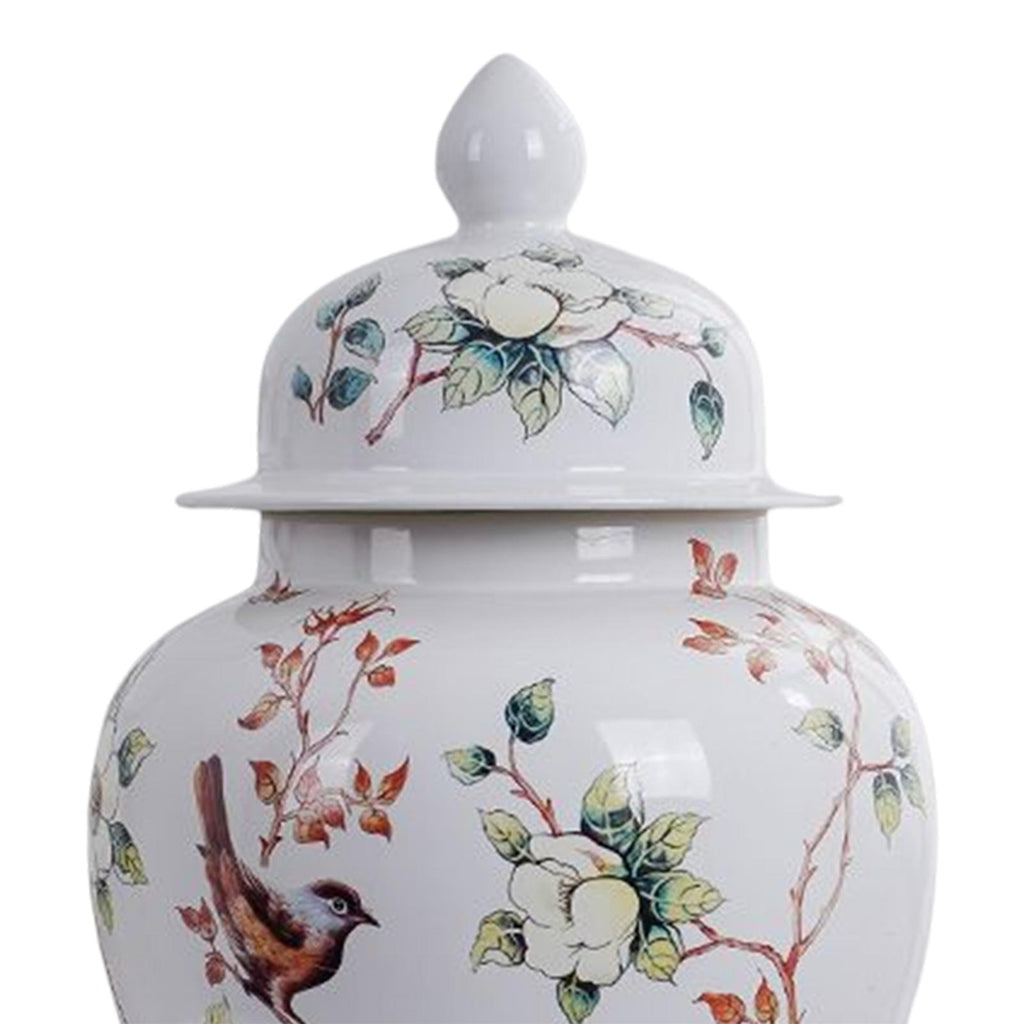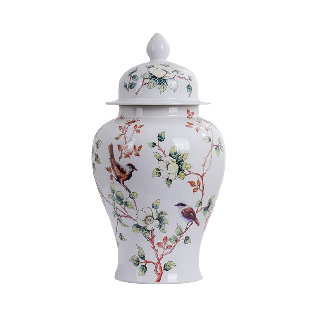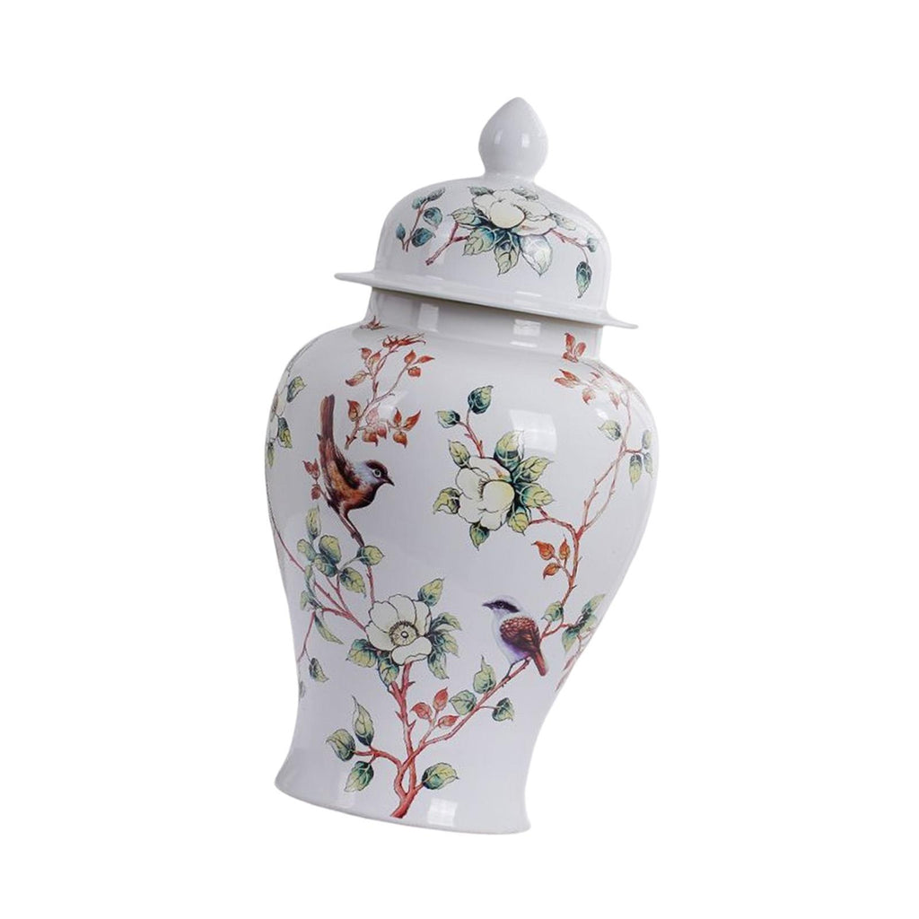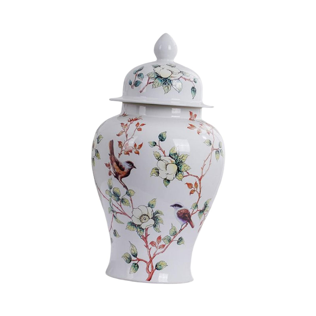 Maxbell Porcelain Temple Jar Vase Decorative with Lid for Office Entryway Shelf L