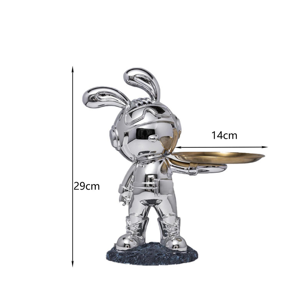 Maxbell Rabbit Desk Storage Tray Statue Creative Figurine Decor Apartment Office Argent