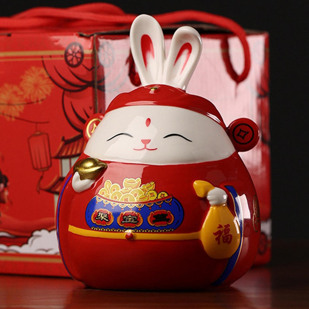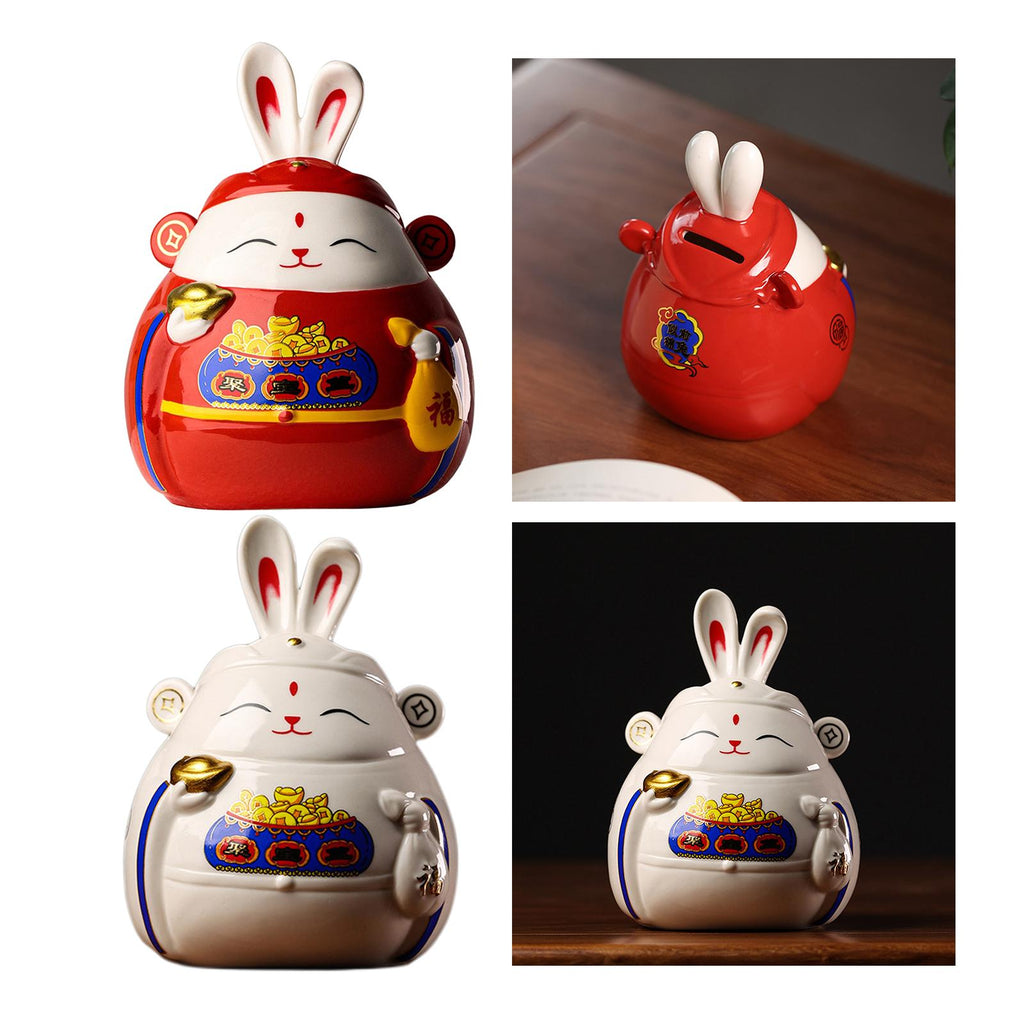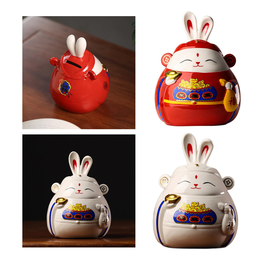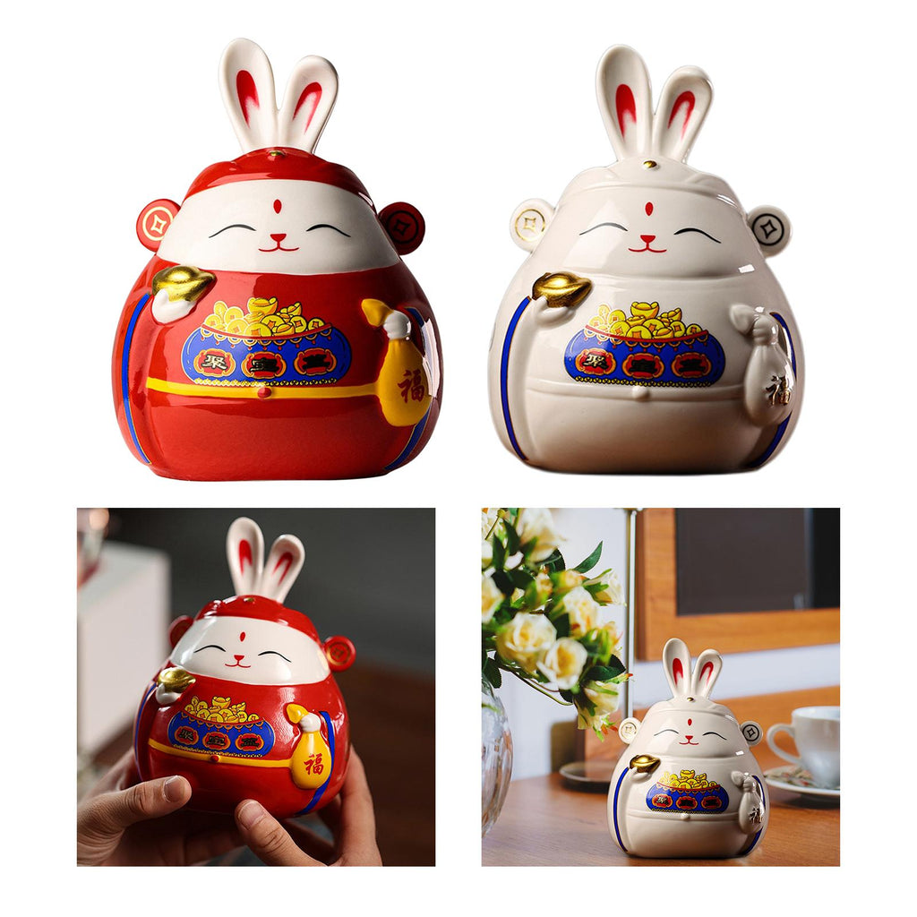 Maxbell Rabbit Piggy Bank Collection Sculpture Ornament for New Year Home Decoration red