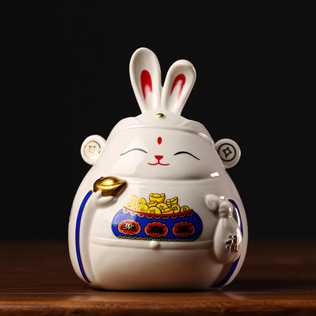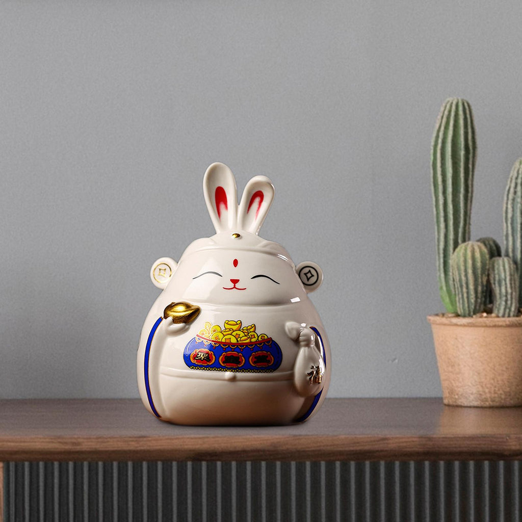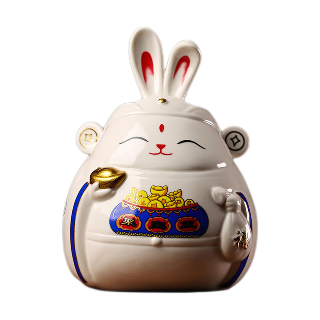 Maxbell Rabbit Piggy Bank Collection Sculpture Ornament for New Year Home Decoration white