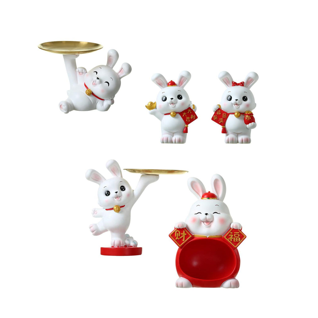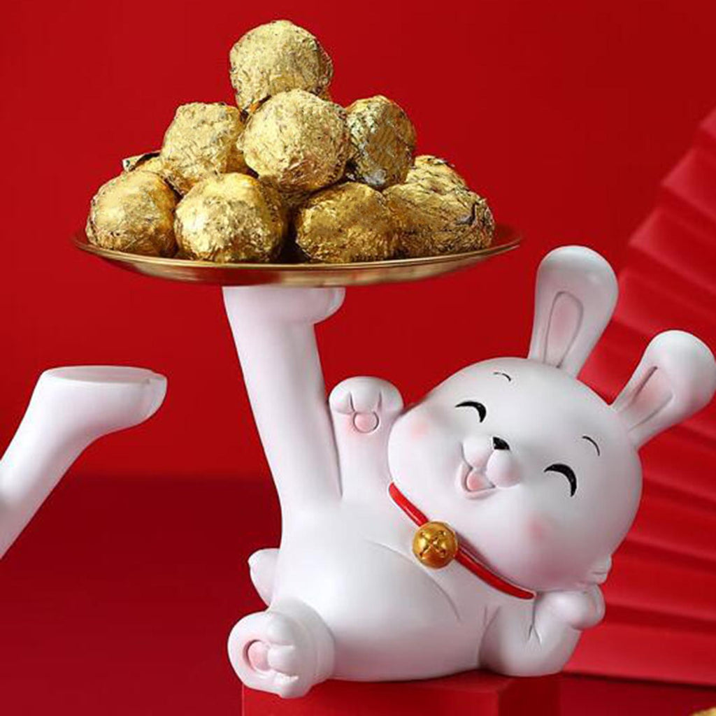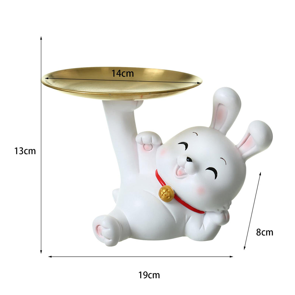 Maxbell Rabbit Statue Figurine Resin Decorative for Bookshelf Living Room Office Lying Down with Tray