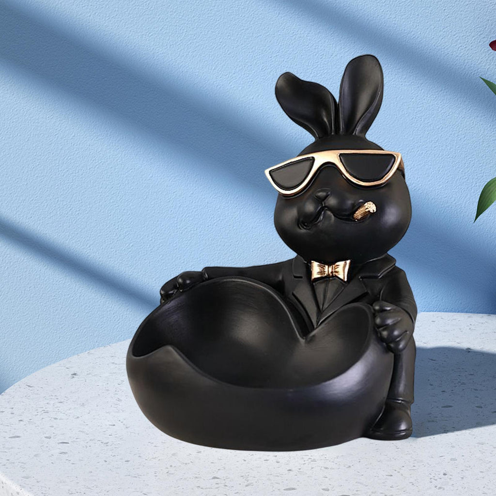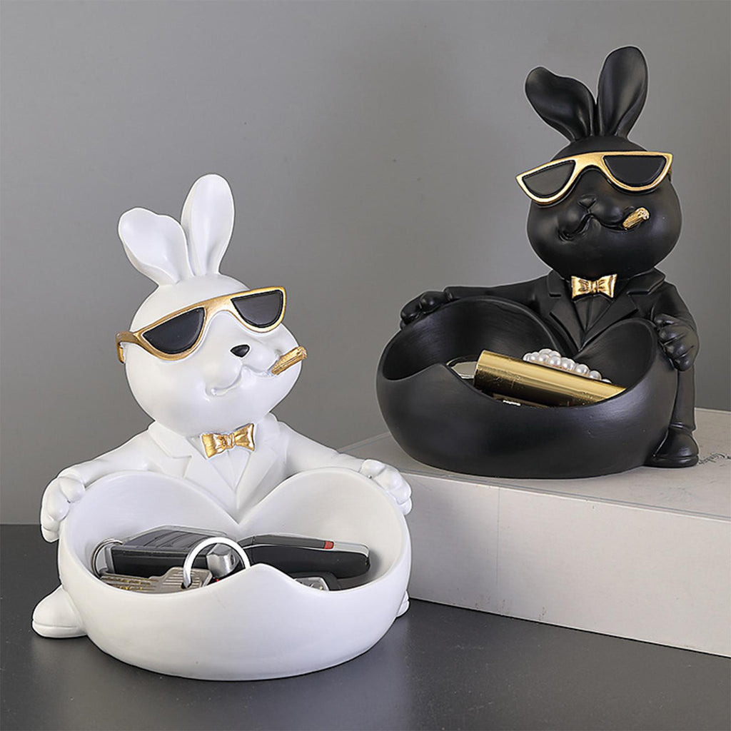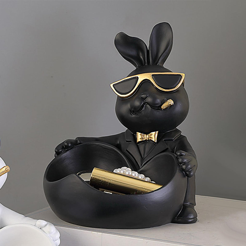 Rabbit Statue: Cool rabbit figurine with glasses storage box home art sculpture.