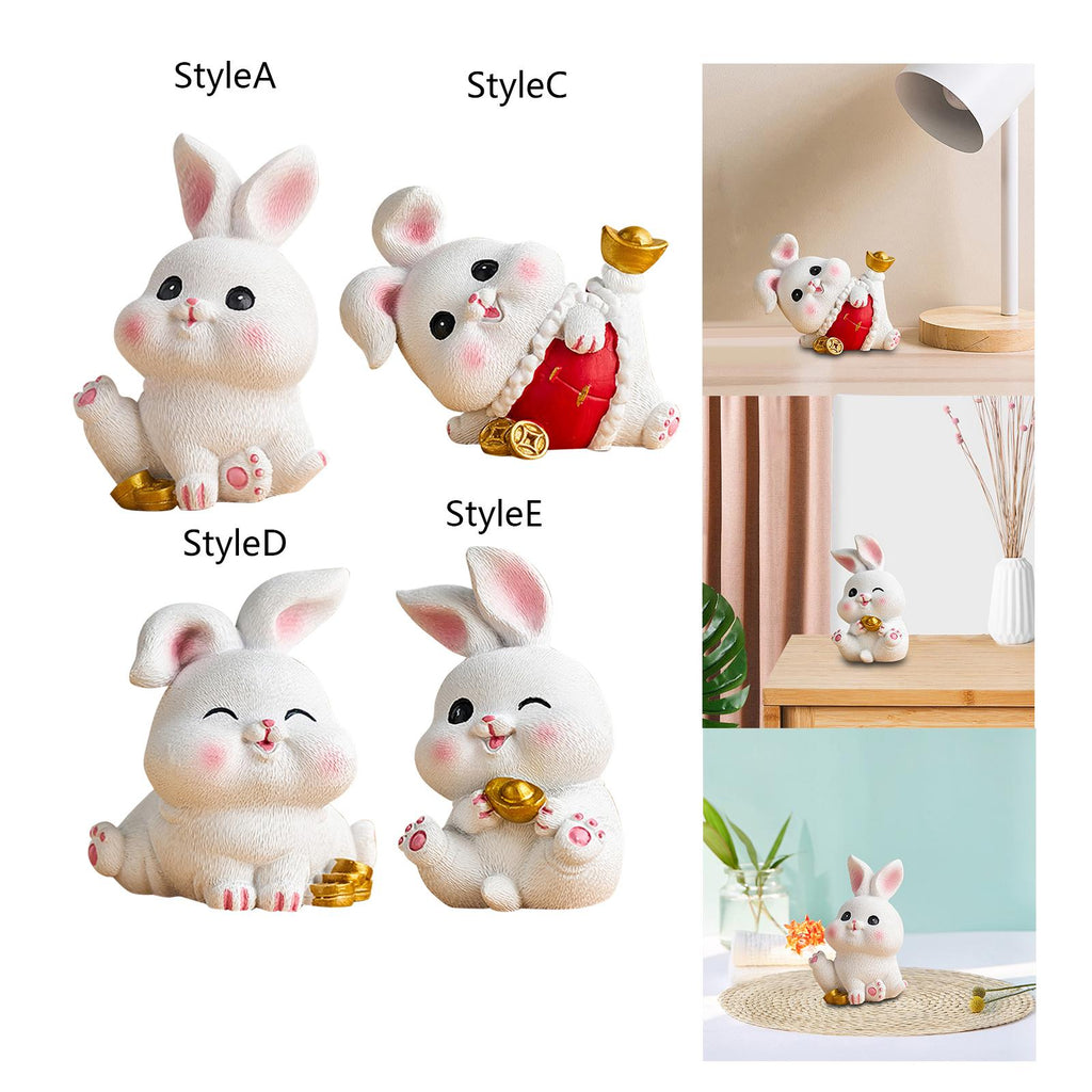 Maxbell Rabbit Statue Miniature Desktop Ornament Animal Sculpture for Bedroom Decor StyleA
