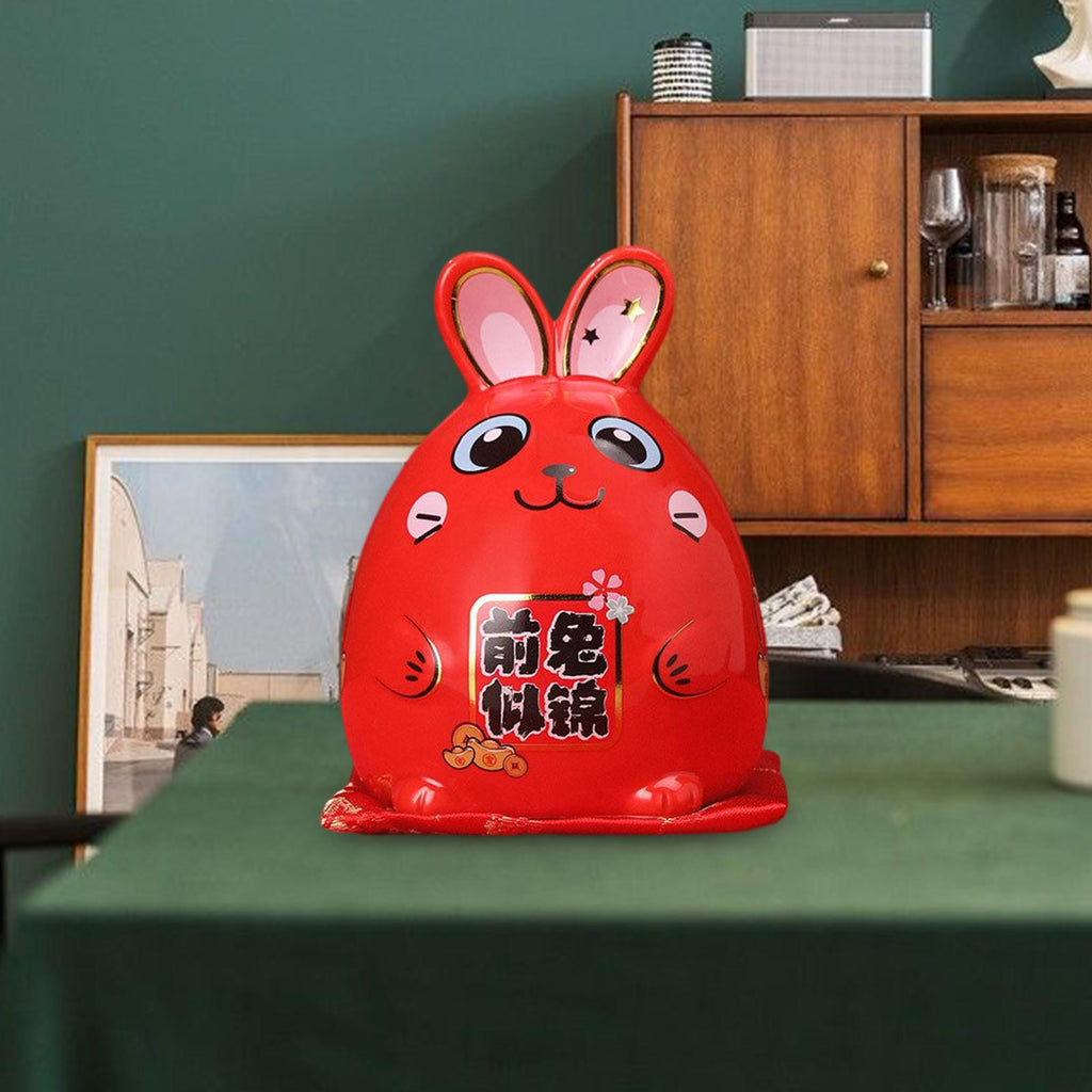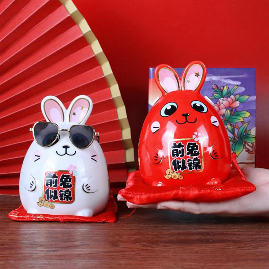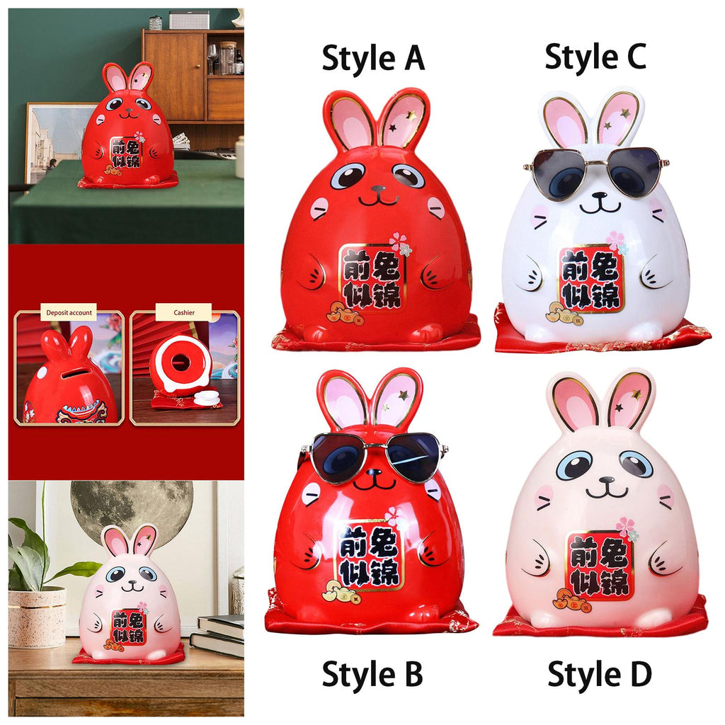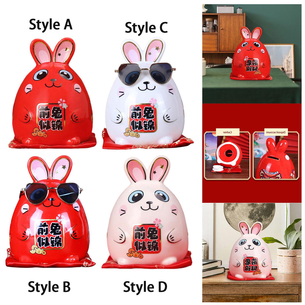 Money Storage Jar: Rabbit Figurine Statue Animal Model for Chinese New Year can be Piggy Bank