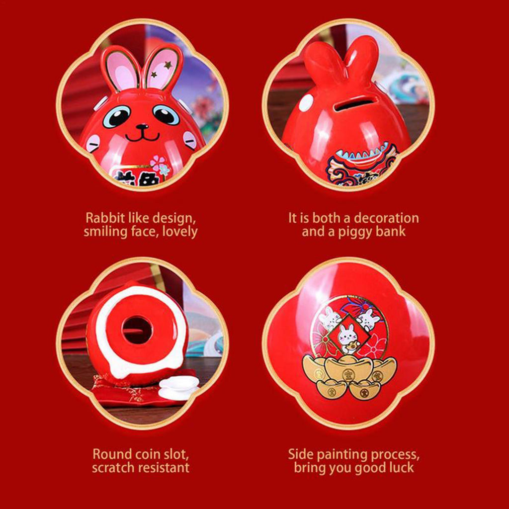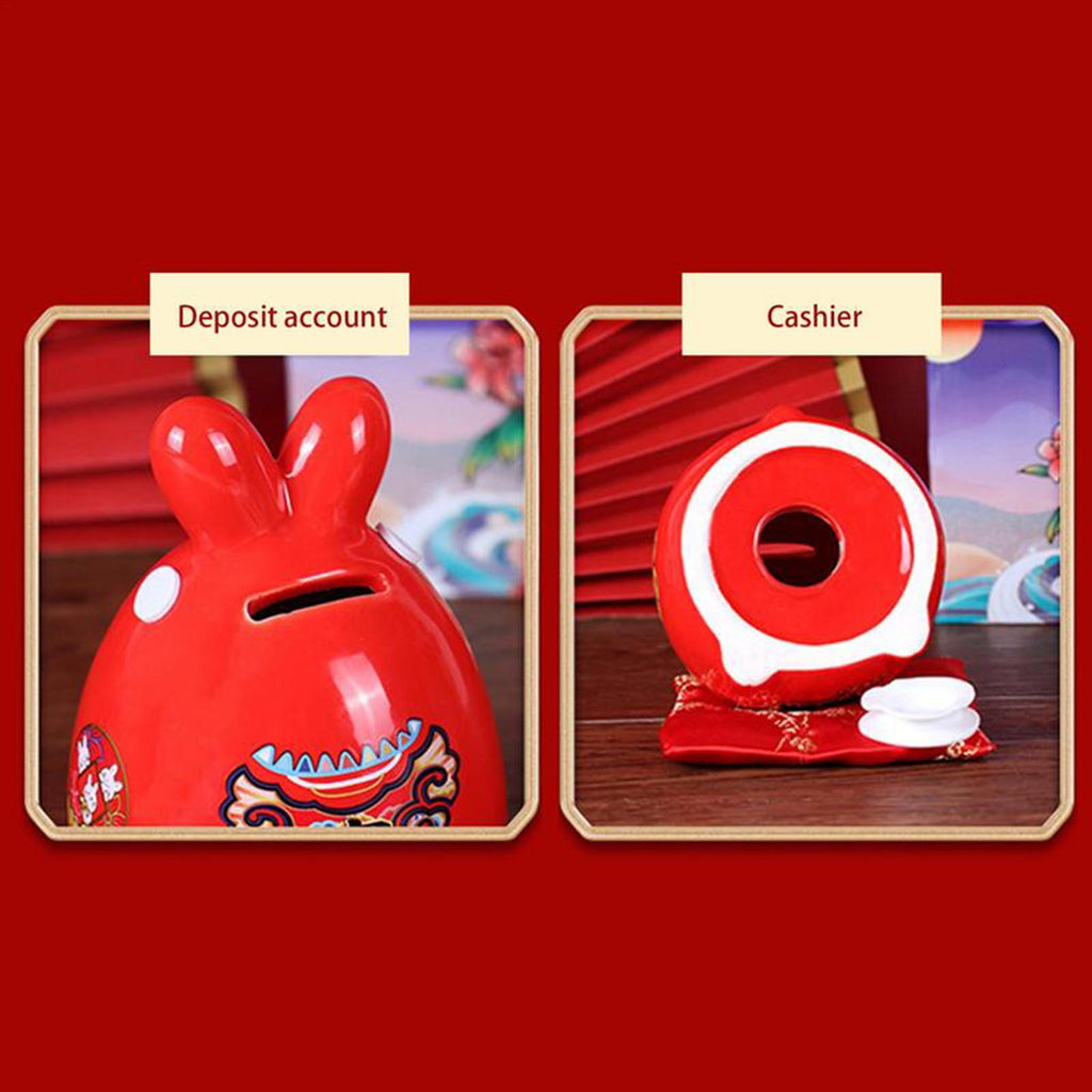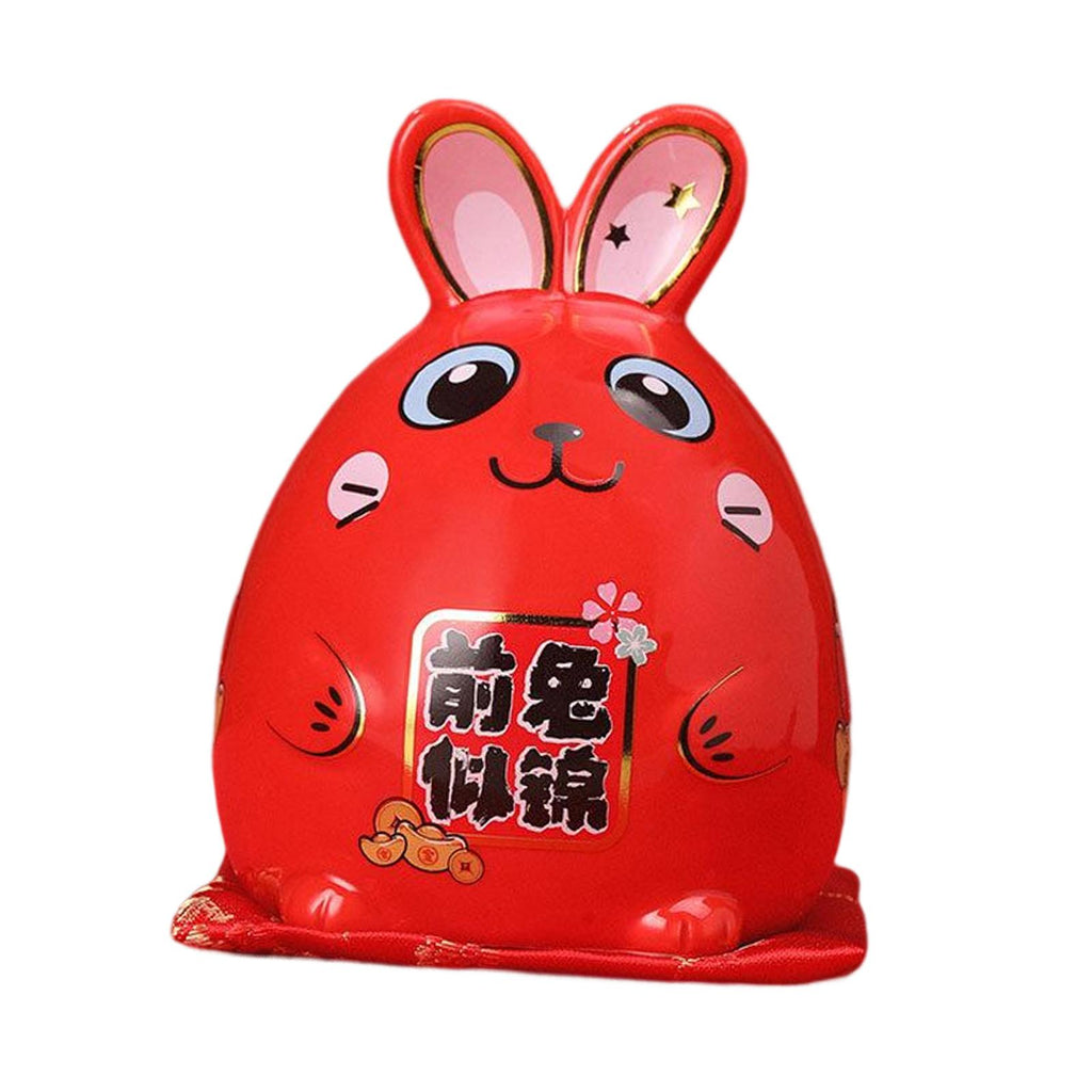 Maxbell Rabbit Year Lucky Figurine Ceramic Piggy Box Decoration Cartoon and Adorable Style A