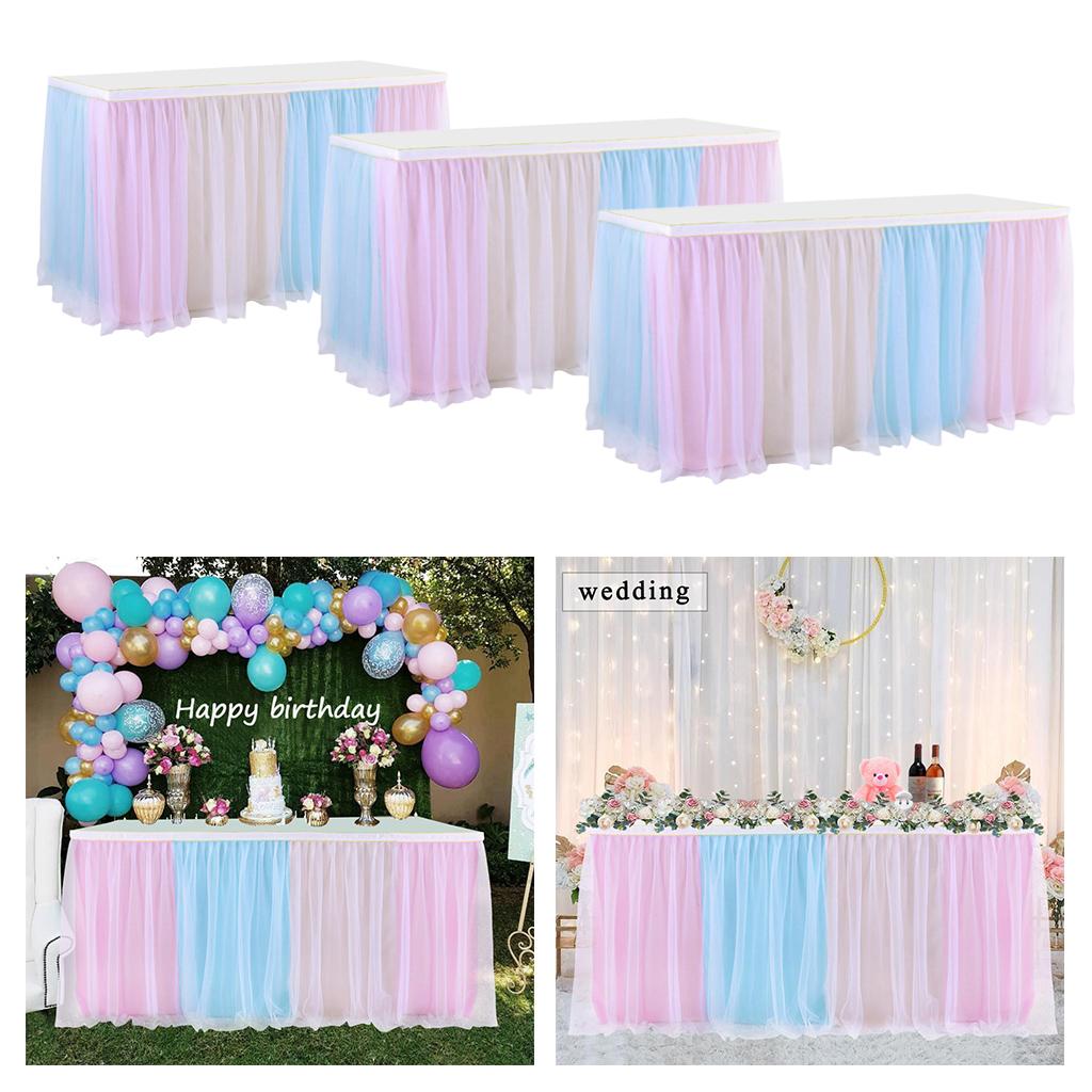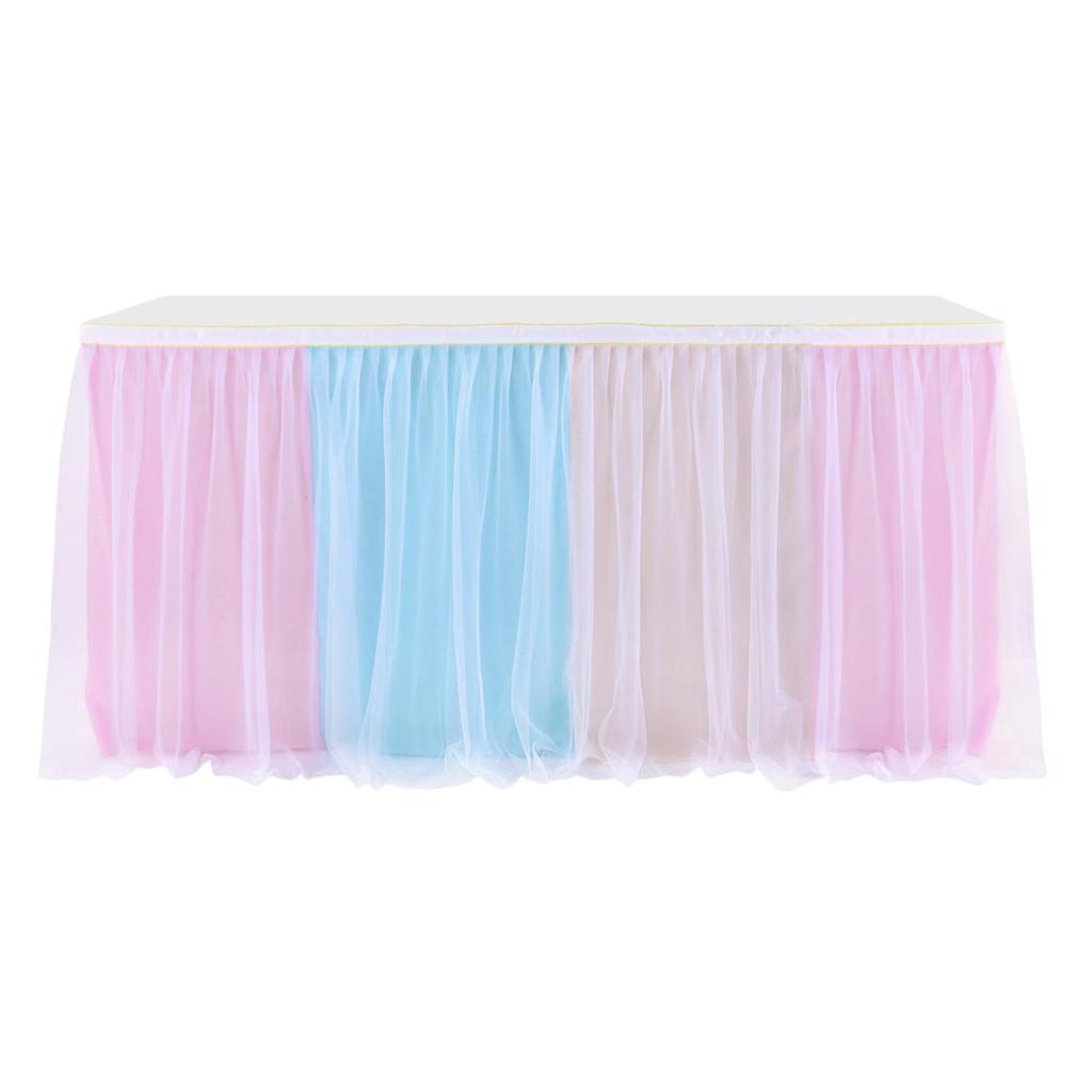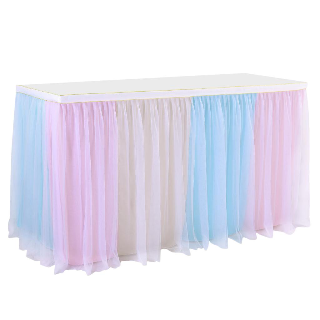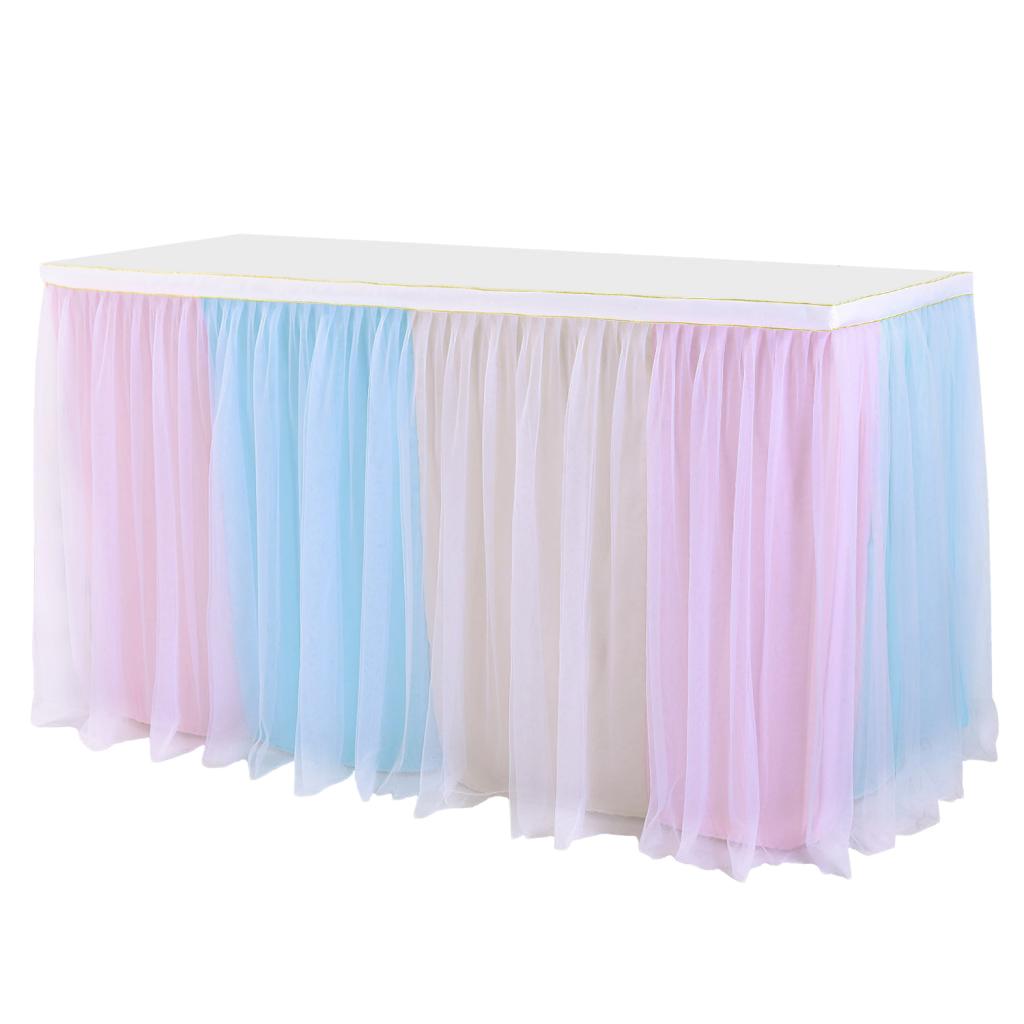 Maxbell Rainbow Tutu Ruffled Table Skirt Wedding Banquet Home Party Decor 1.83x0.77m