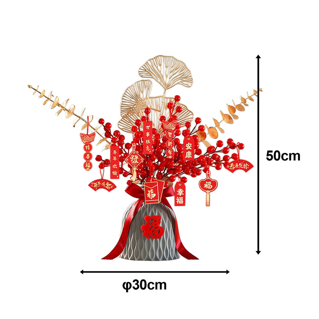 Maxbell Red Chinese New Year Decoration Spring Festival Bonsai Table Centerpiece Gray