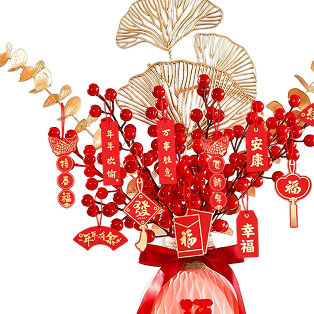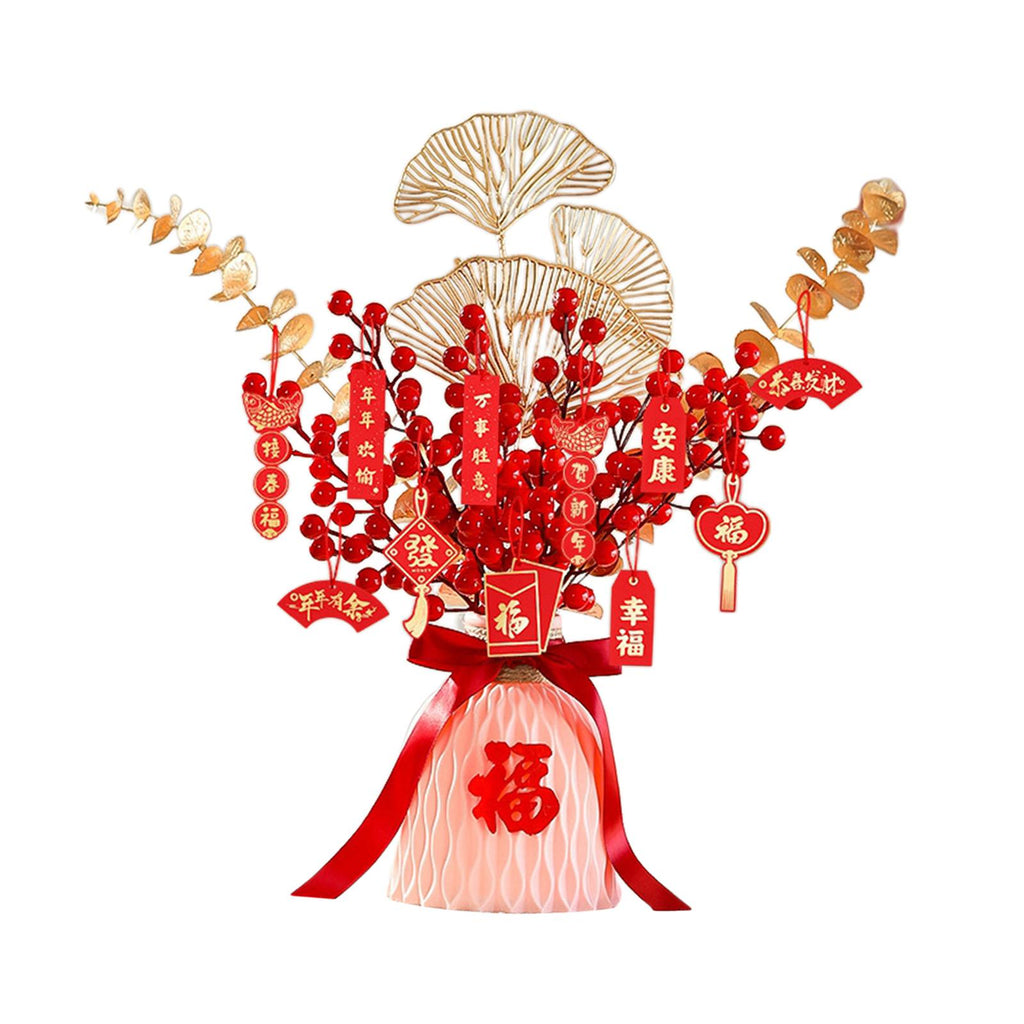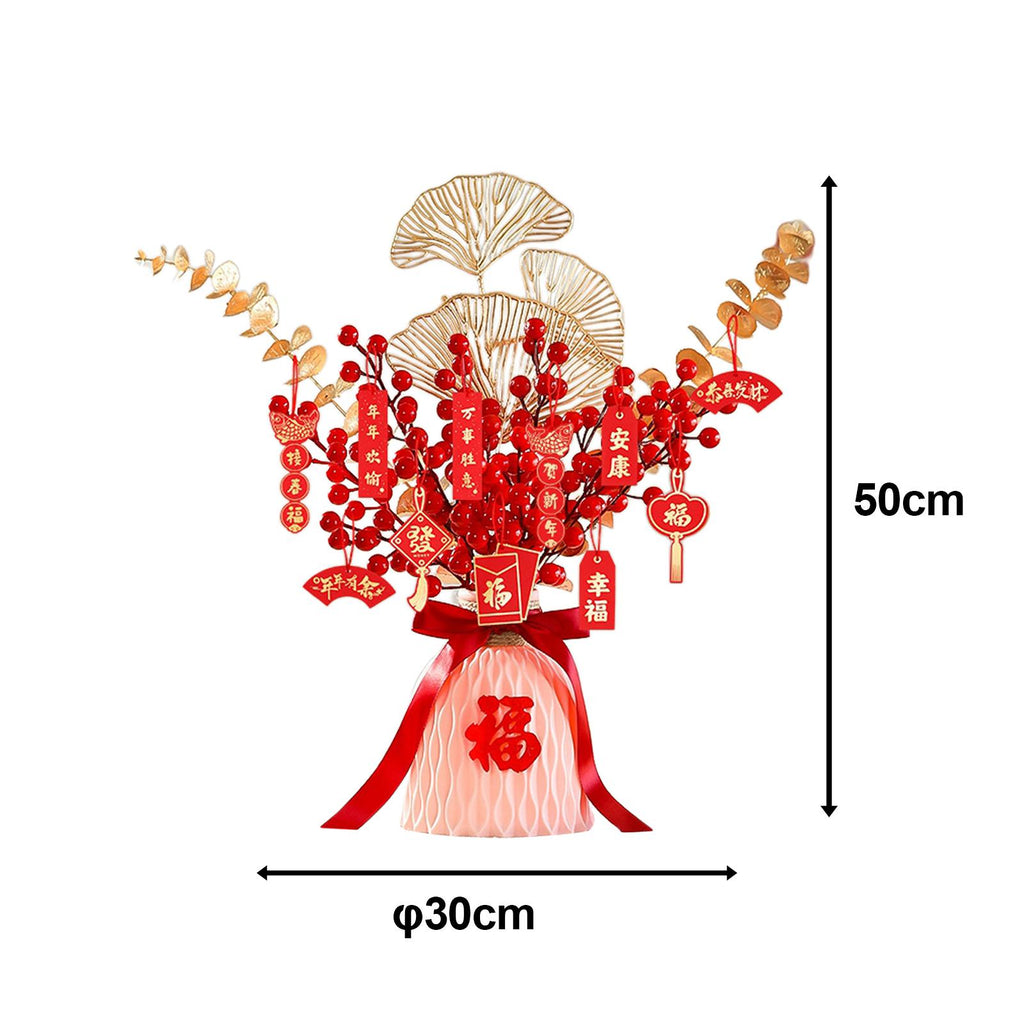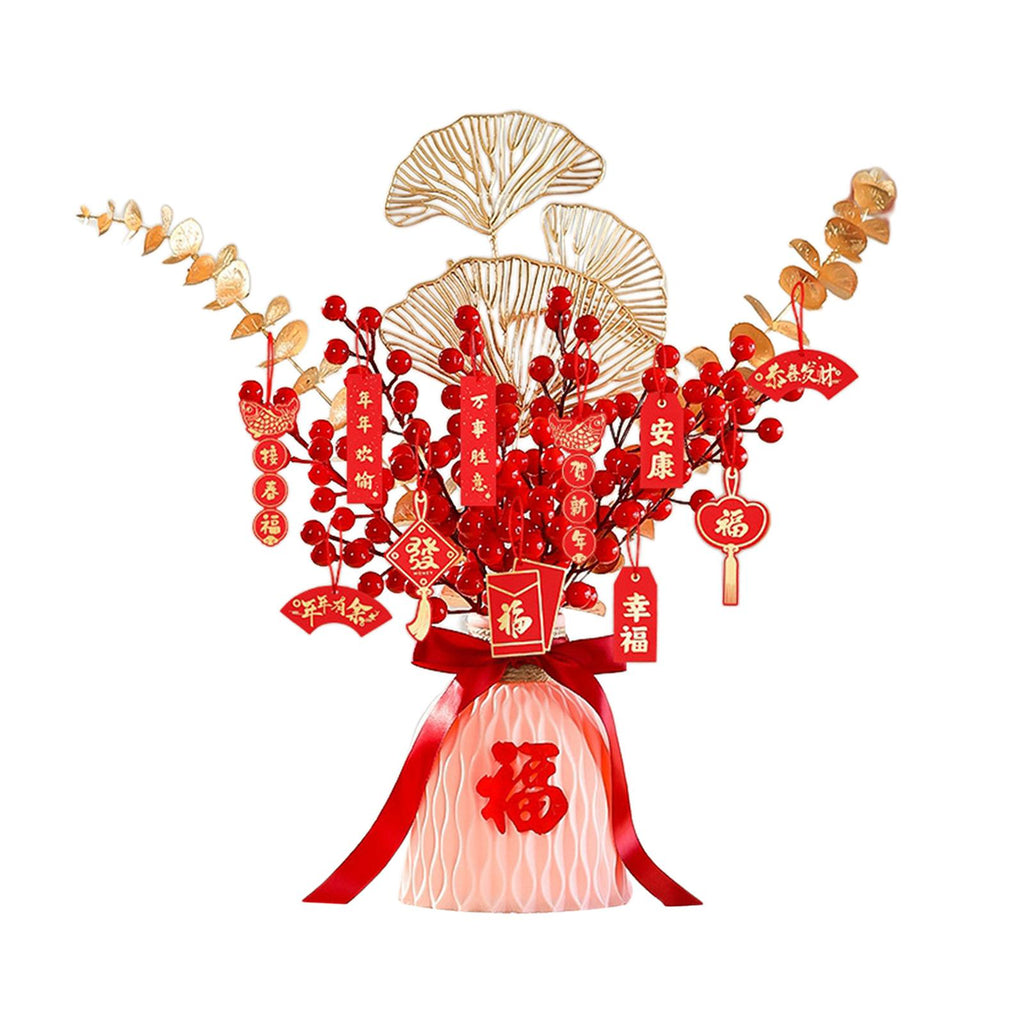 Maxbell Red Chinese New Year Decoration Spring Festival Bonsai Table Centerpiece Pink