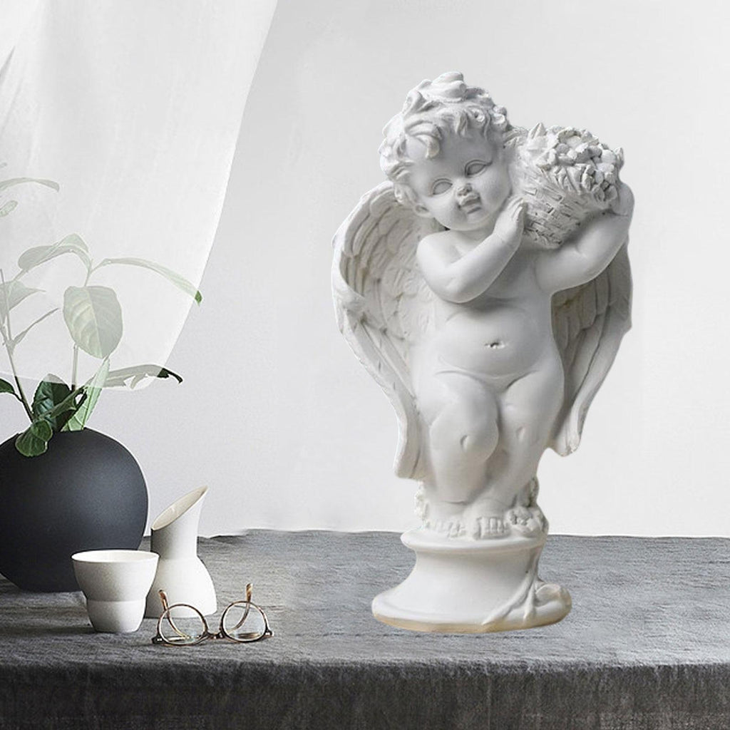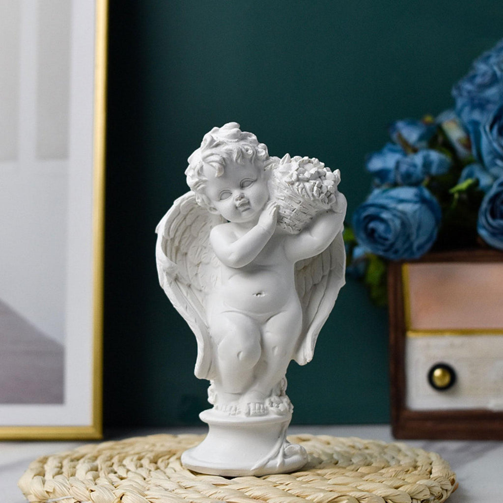 Resin Angel Figurine Cherub Statue Creative for Living Room Shelf Decor Flower Basket