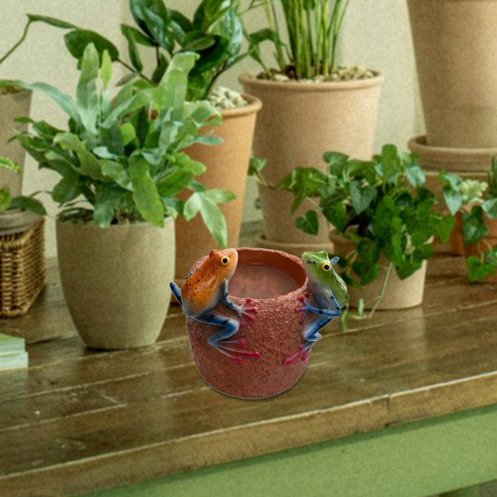 Resin Flower Pot Decorative Frog Planter for Patio Garden Decoration Balcony Yellow