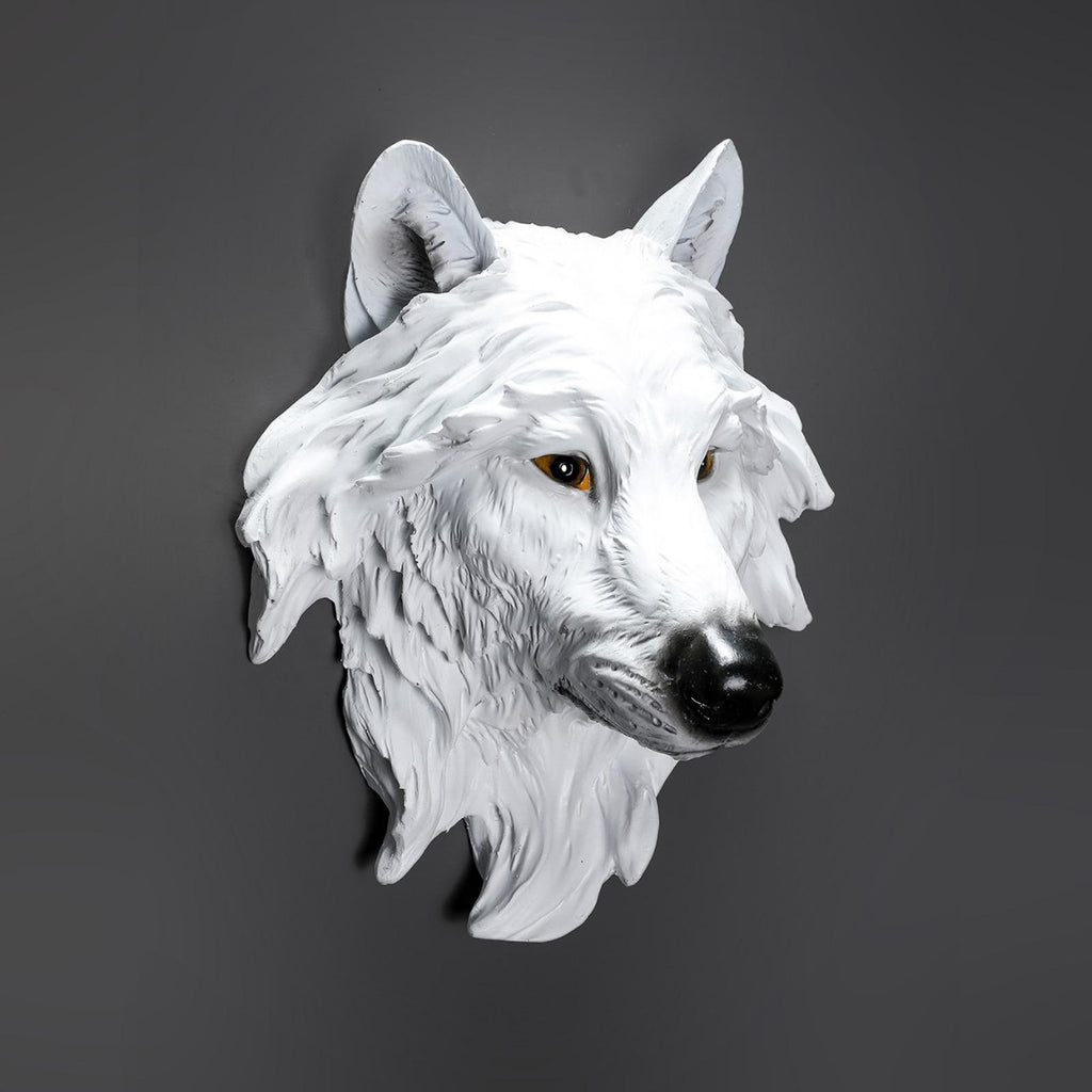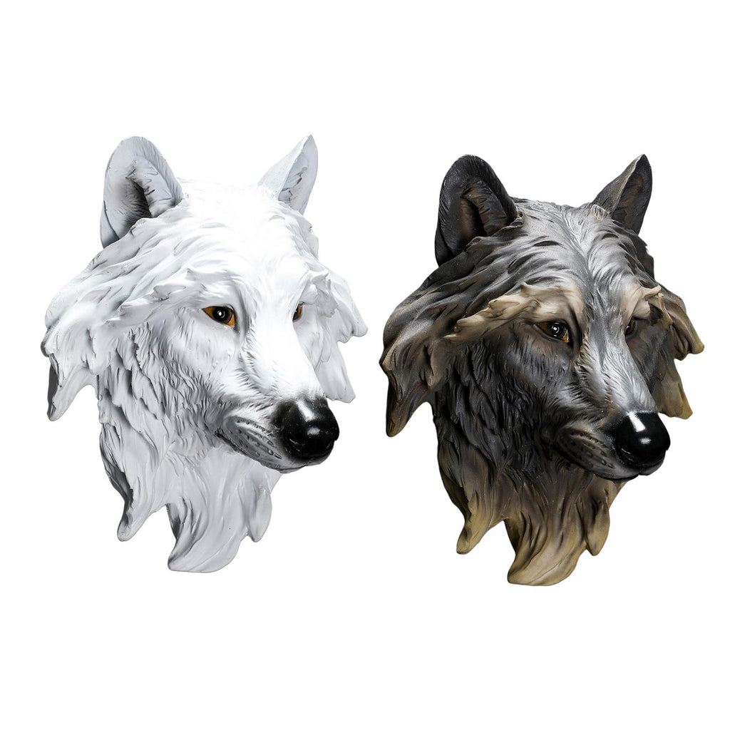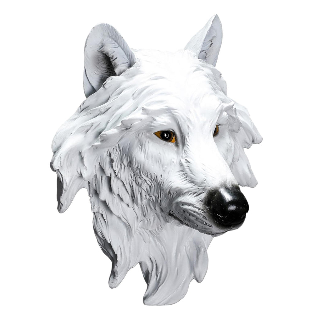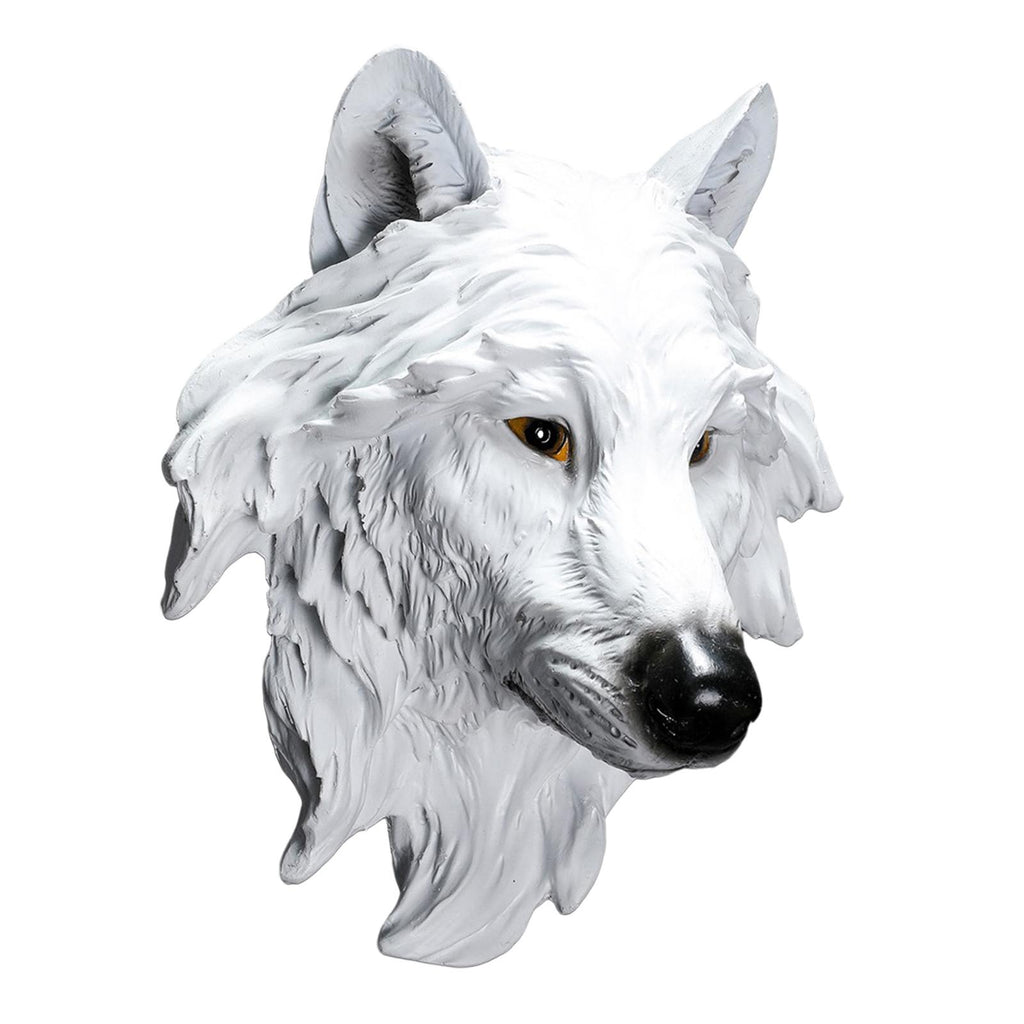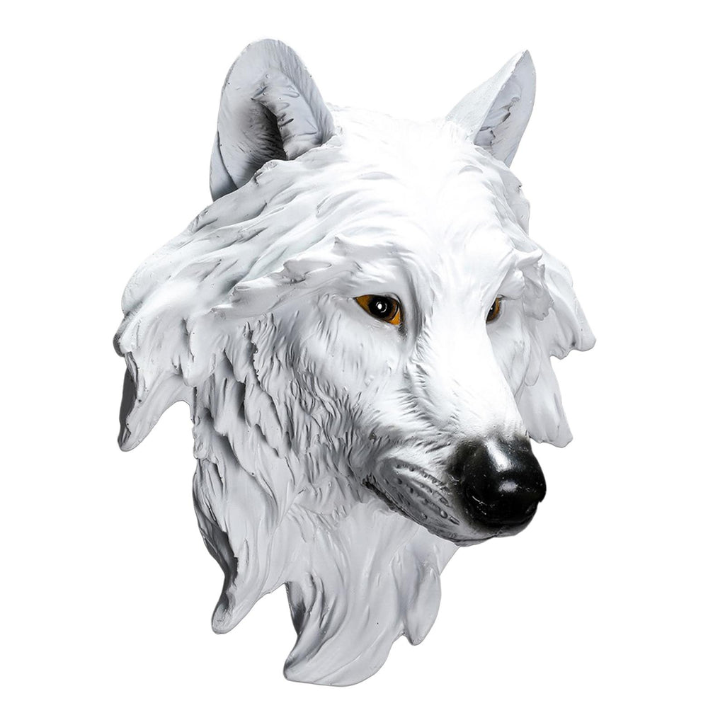 Maxbell Resin Wolf Head Wall Decorations Durable Fine Workmanship Room Walls Decor White