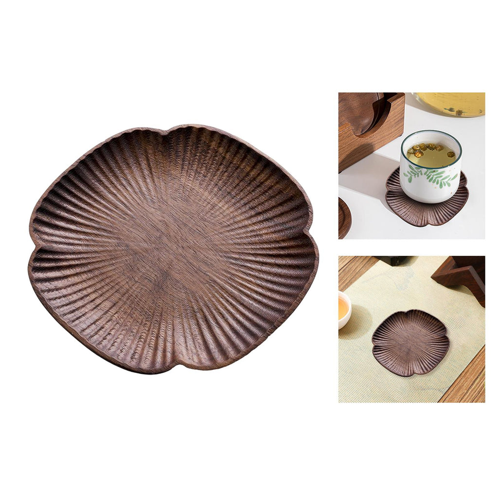 Maxbell Reusable Wooden Coaster Cup Mat Flower Home Decor for Restaurant Countertop Black walnut