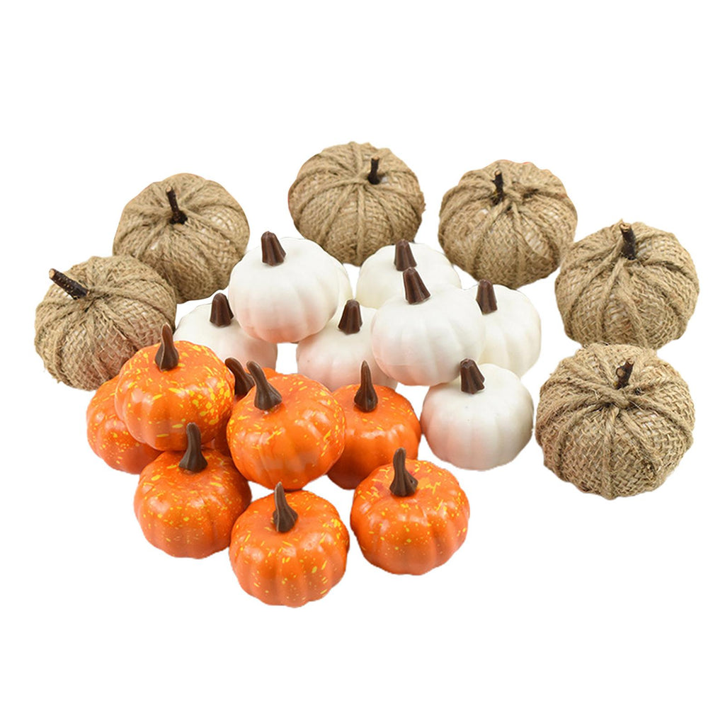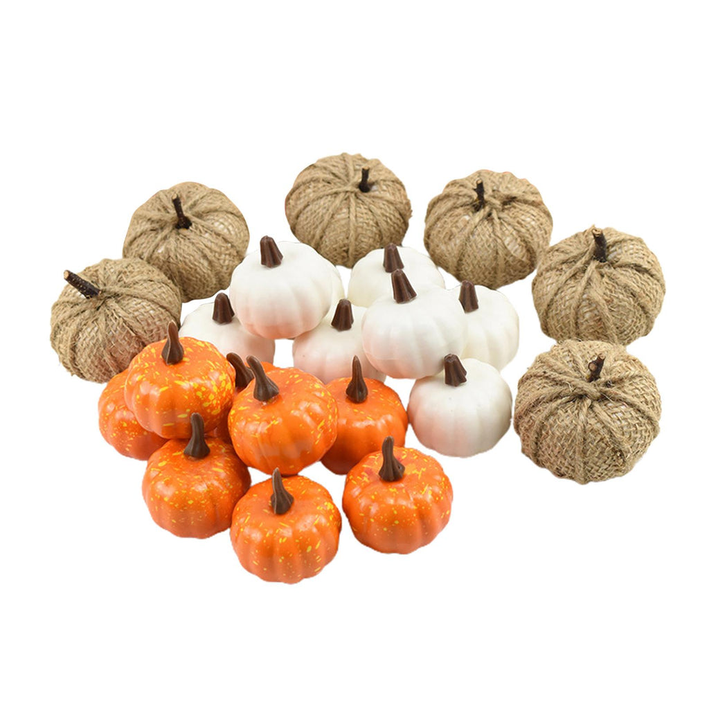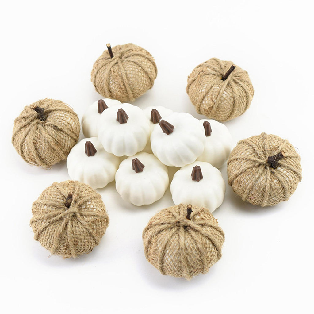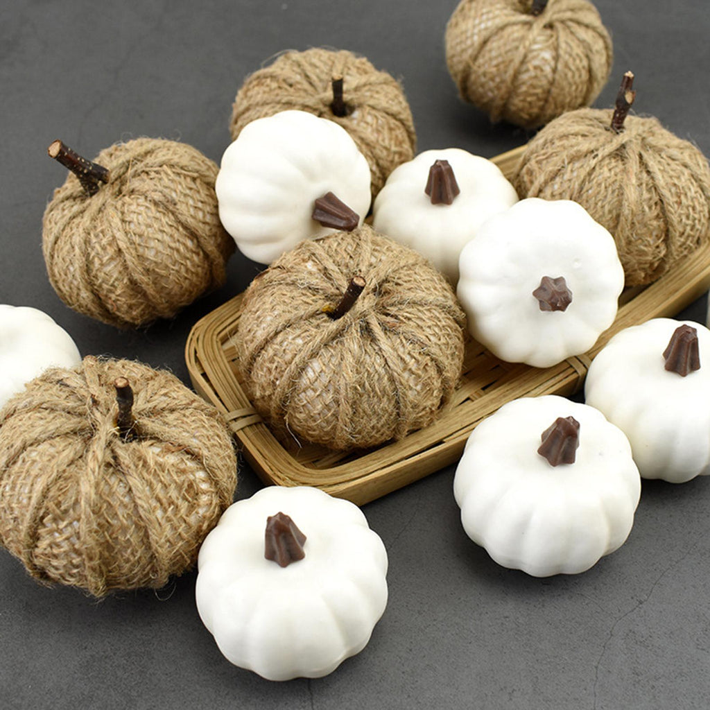 - Package Include: 8pcs white pumpkins, 6pcs burlap pumpkins, 8 Yellow pumpkins.