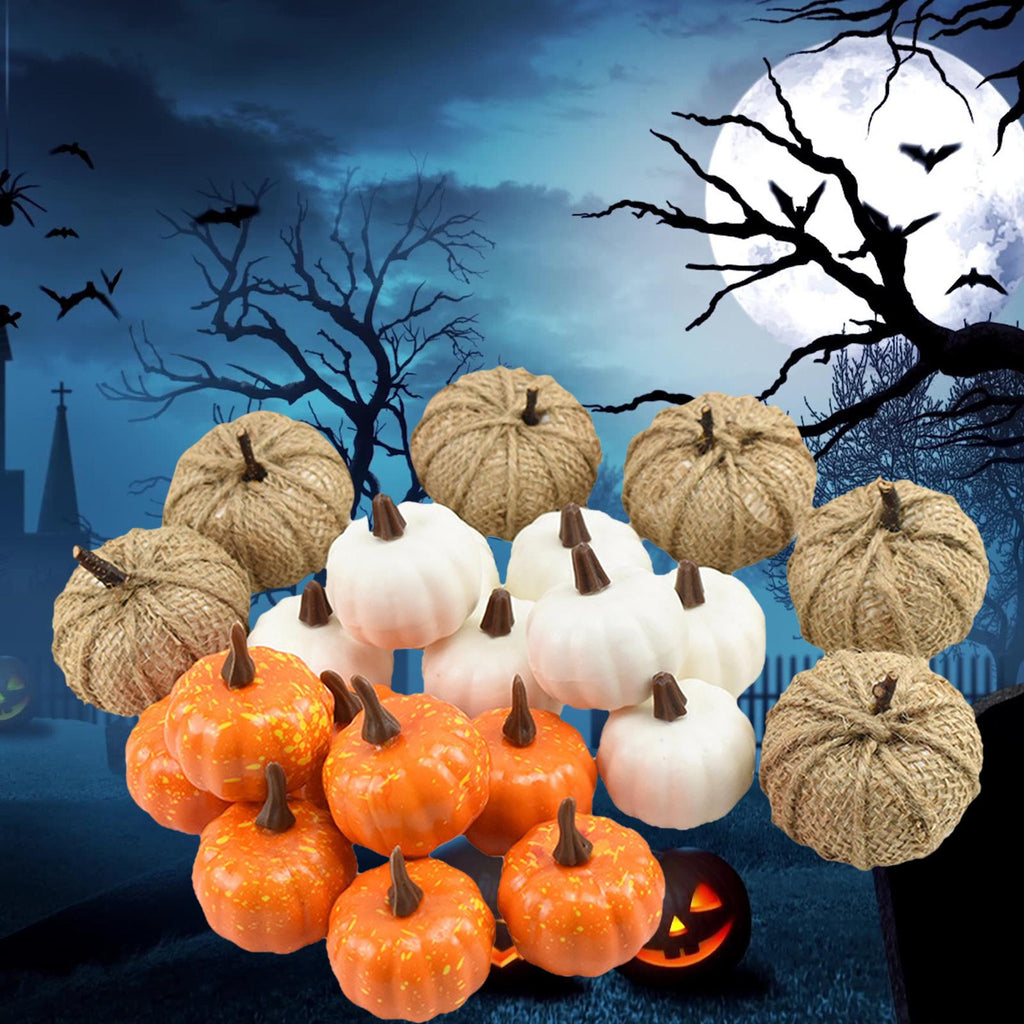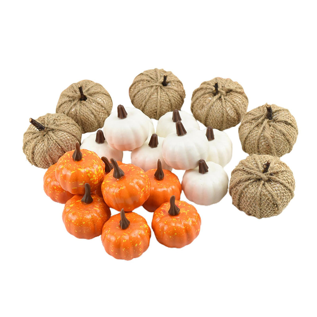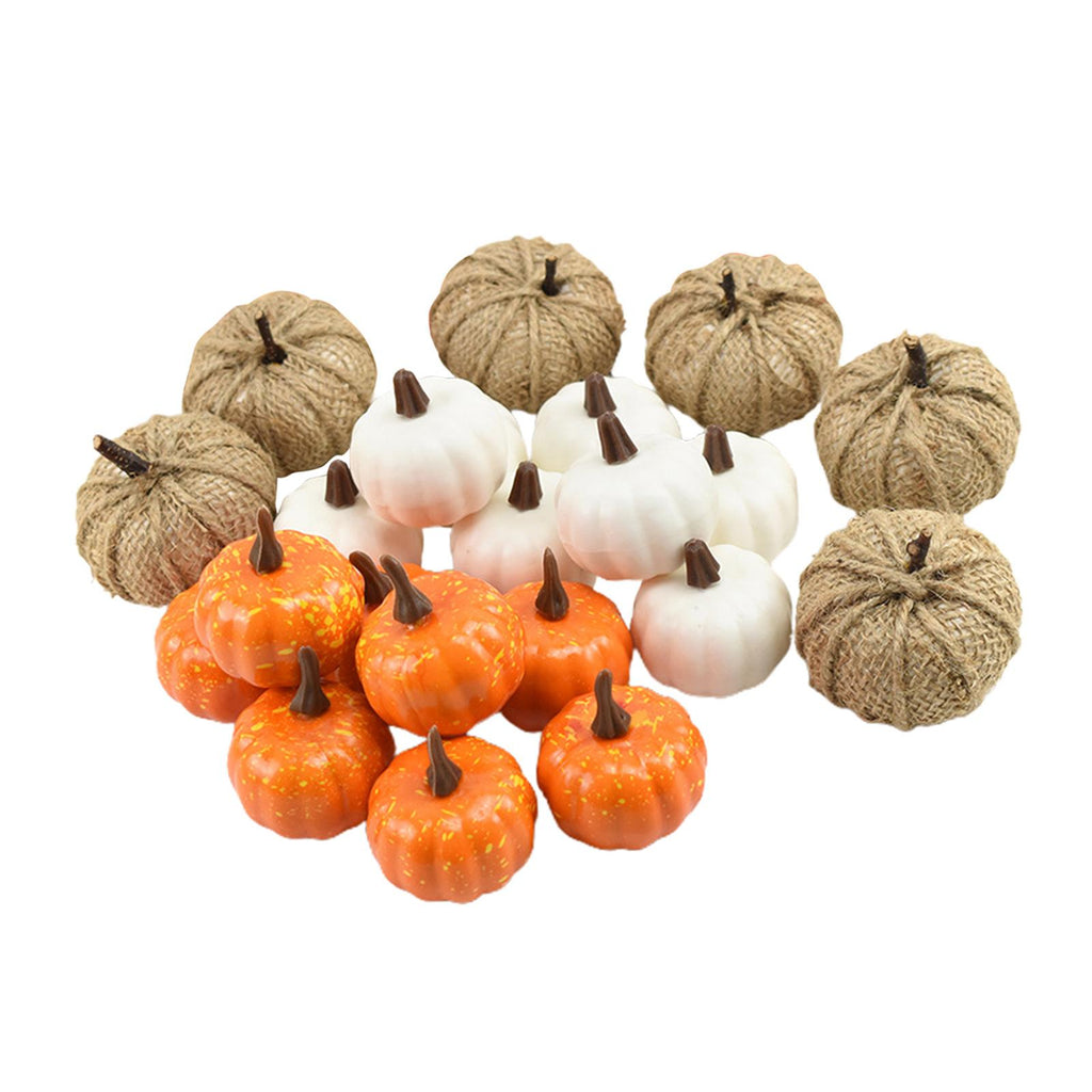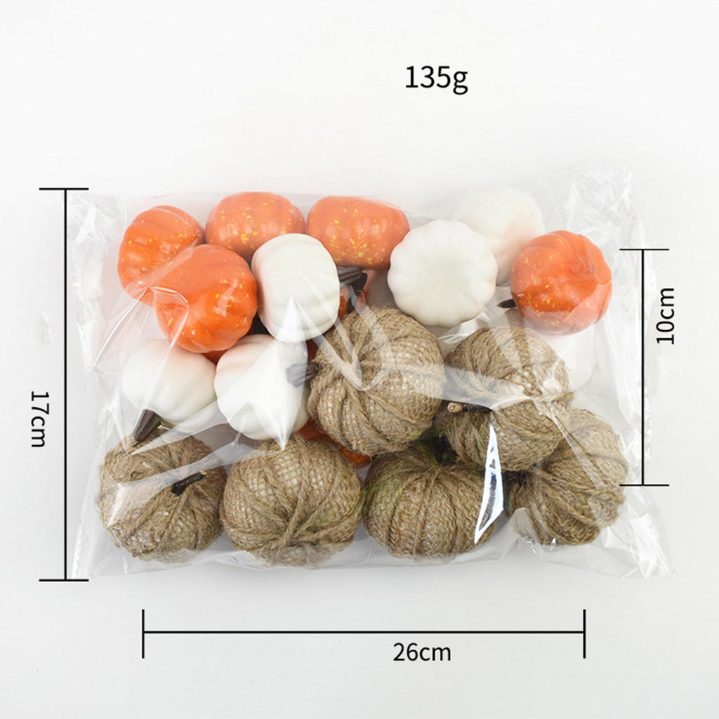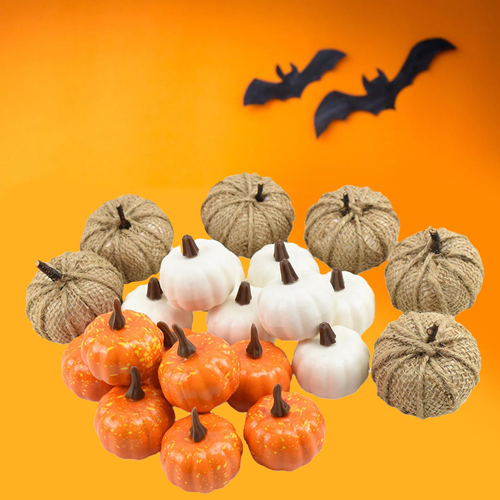 - Package Include: 8pcs white pumpkins, 6pcs burlap pumpkins, 8 Yellow pumpkins.