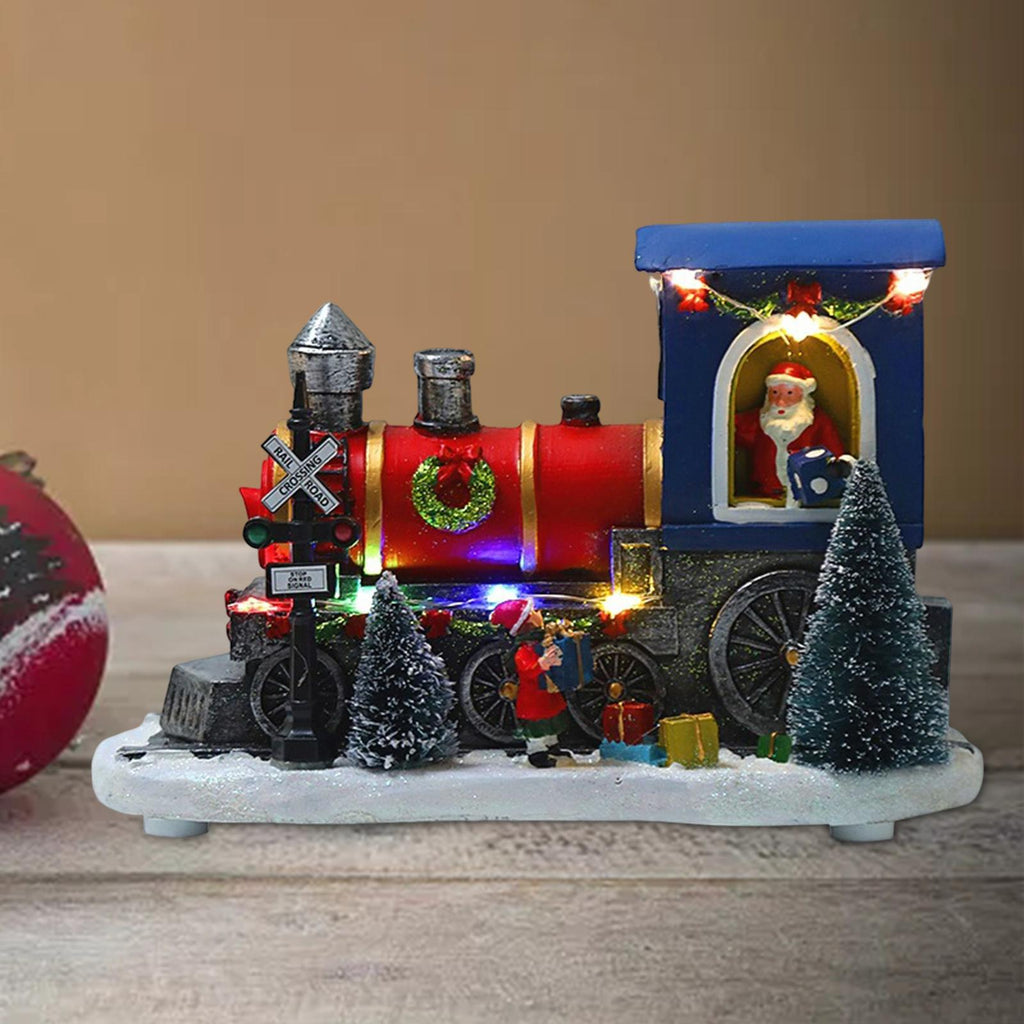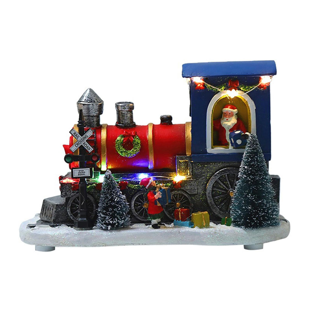Maxbell Santa Claus Driving Train Figurine LED Light Christmas Decoration for Gift