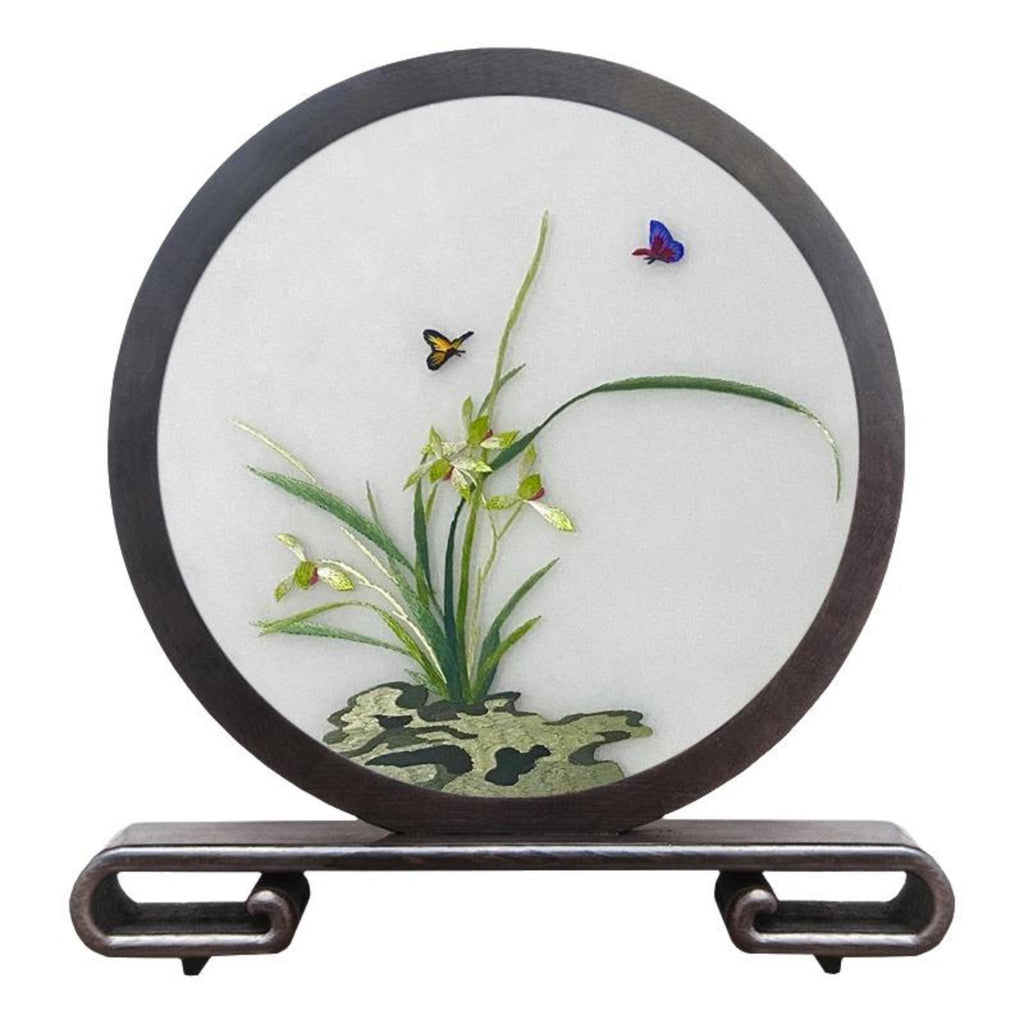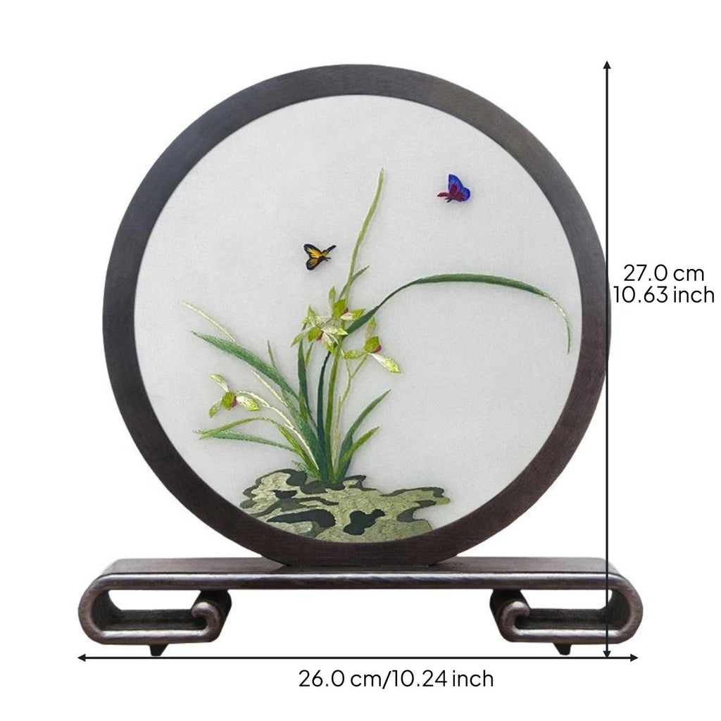 Silk Embroidery Table Screen, Double-Sided Hand-Embroidered Decoration, Chinese Decorative Gift Orchid D