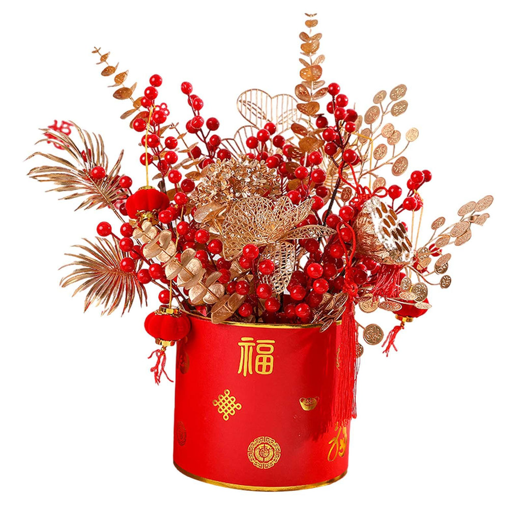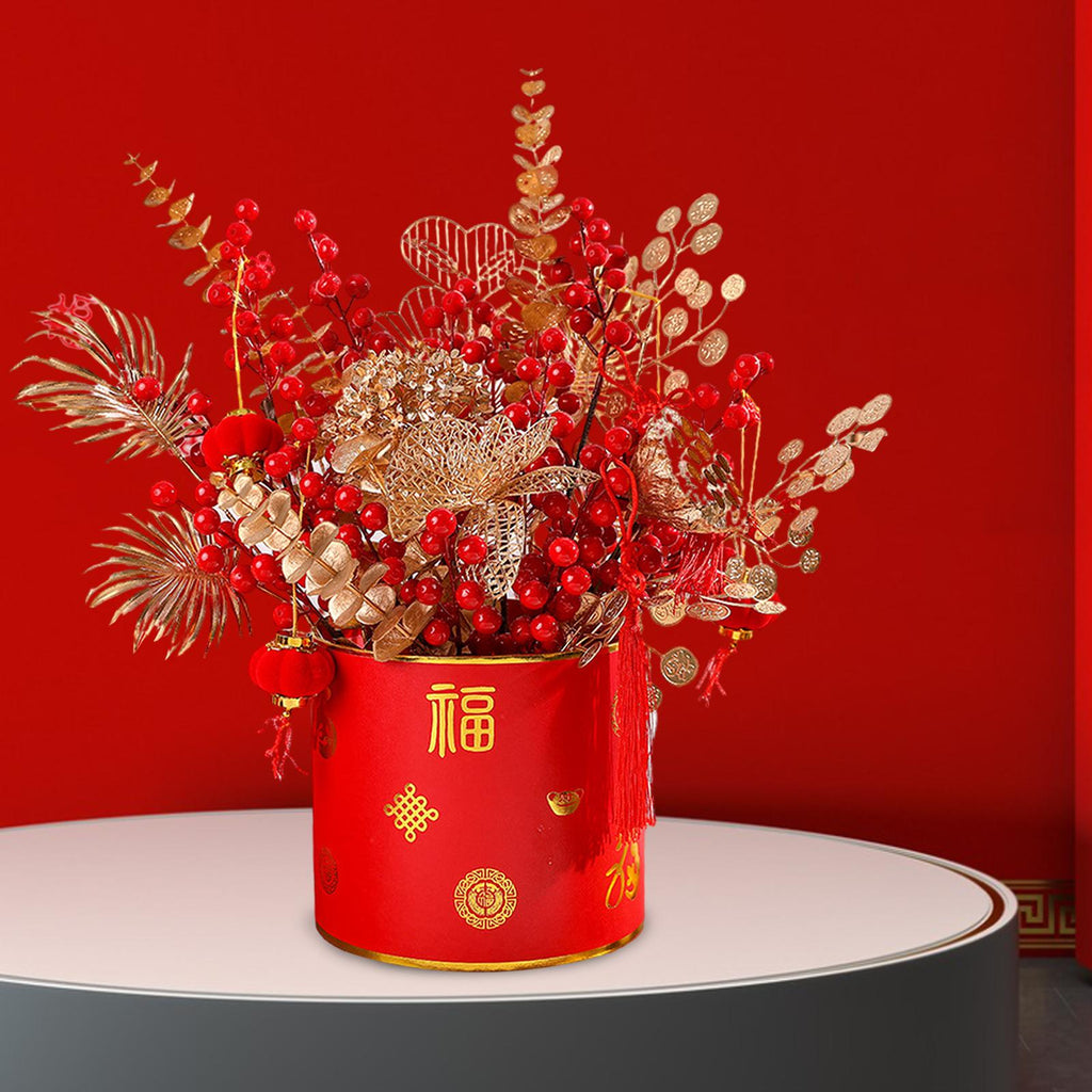 Maxbell Simulation Red Berries Flowerpot Feng Shui Decoration Lightweight Decorative Style B
