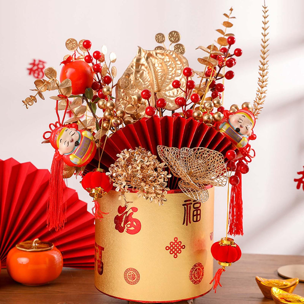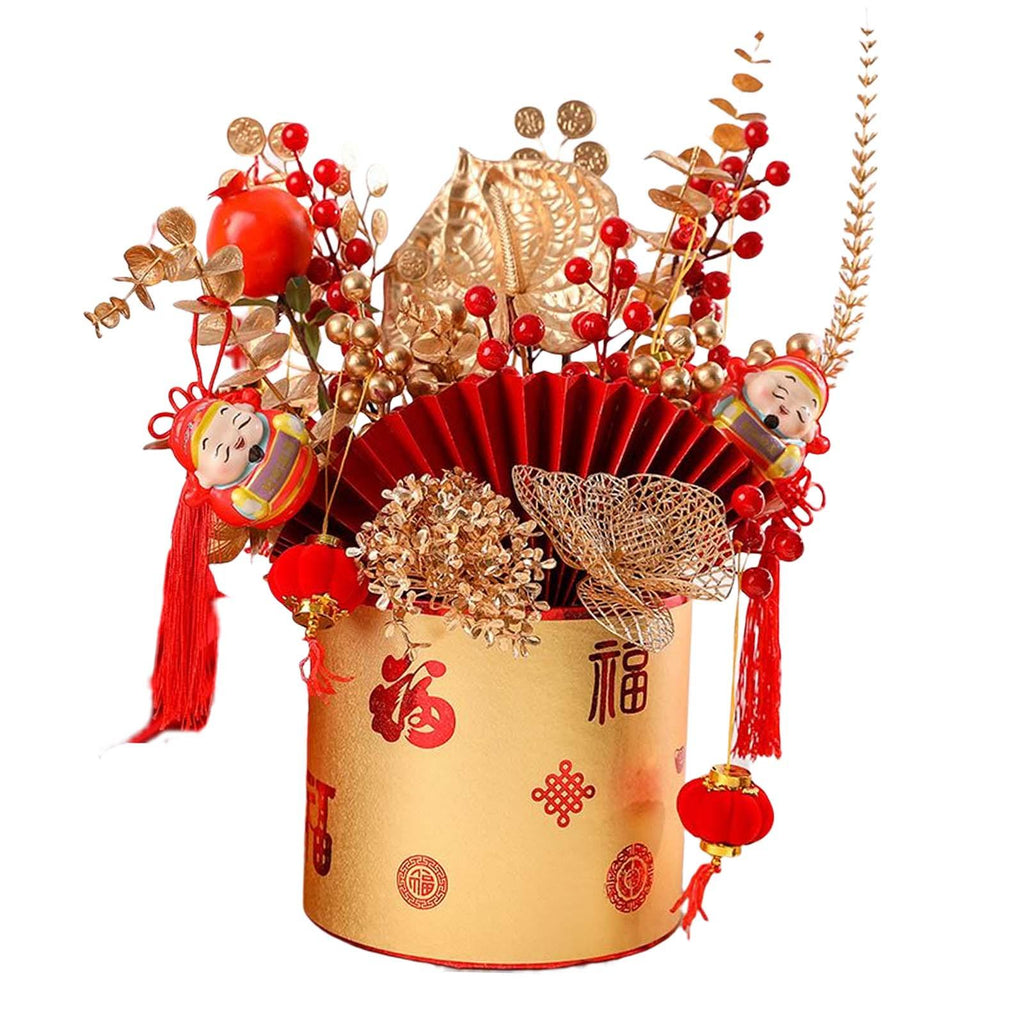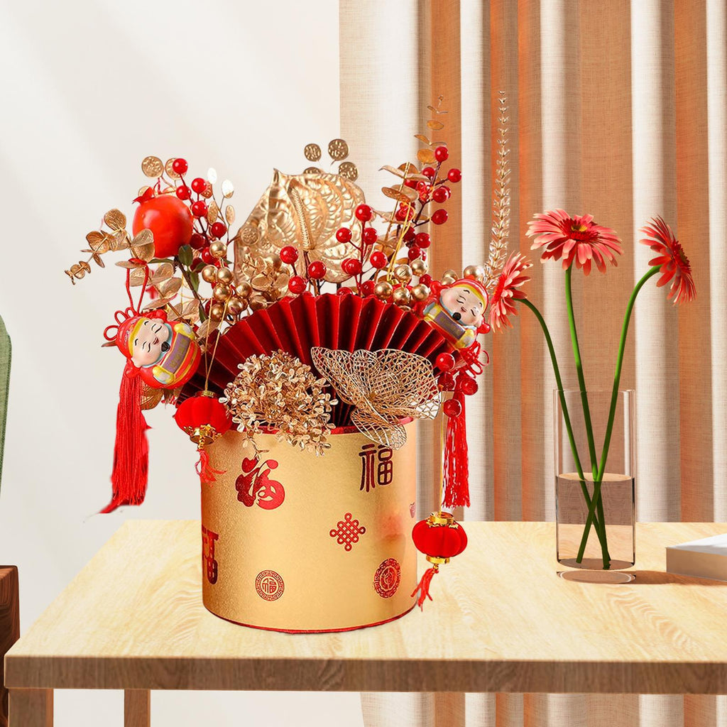 Design: artifical red berries, Chinese traditional pattern, vibrantly colored, decorative table ornament