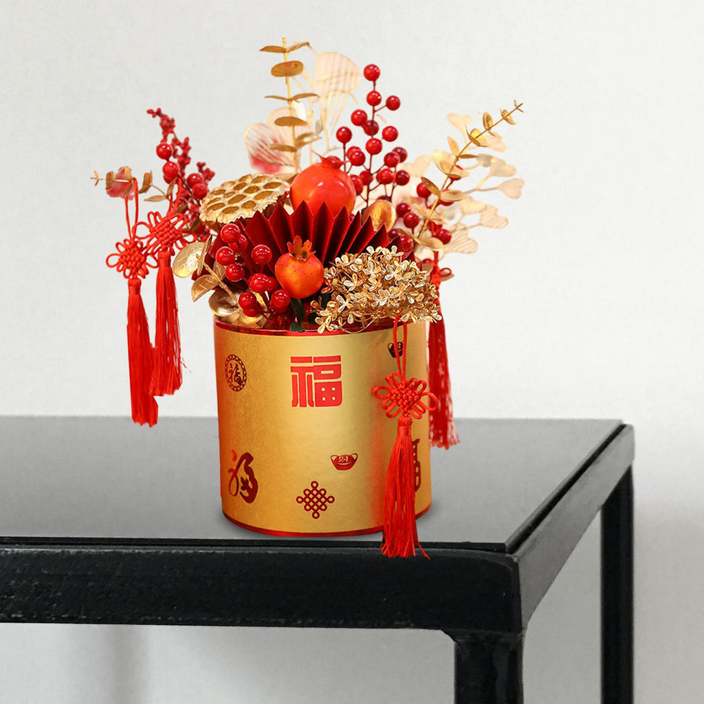 Maxbell Simulation Red Berries Flowerpot Feng Shui Decoration Lightweight Decorative Style D